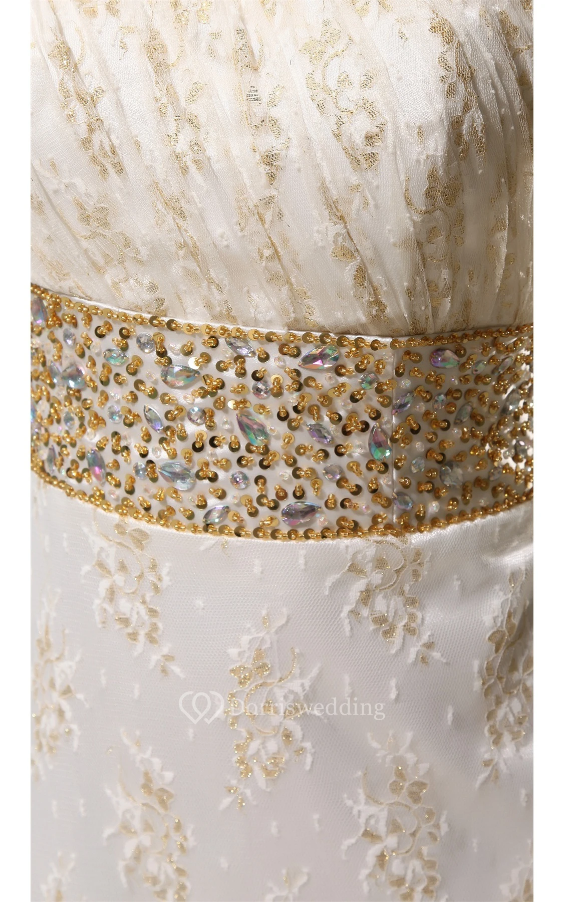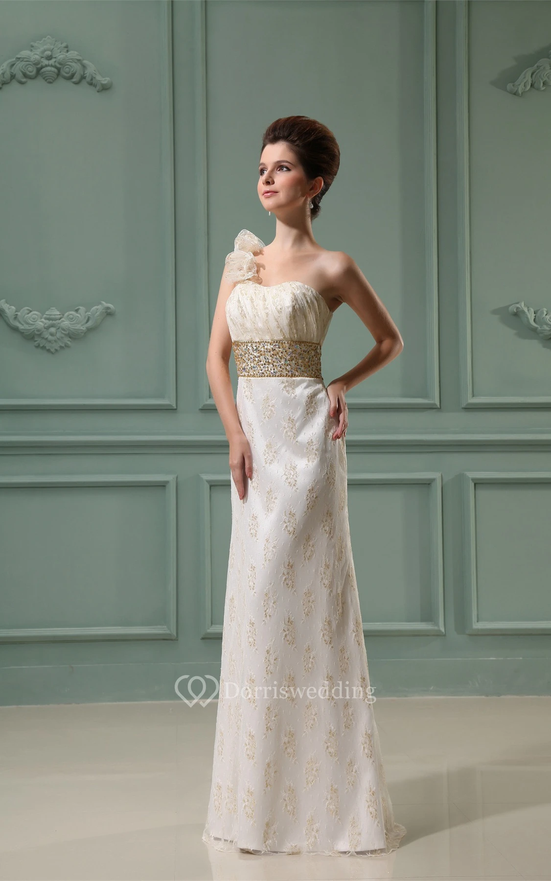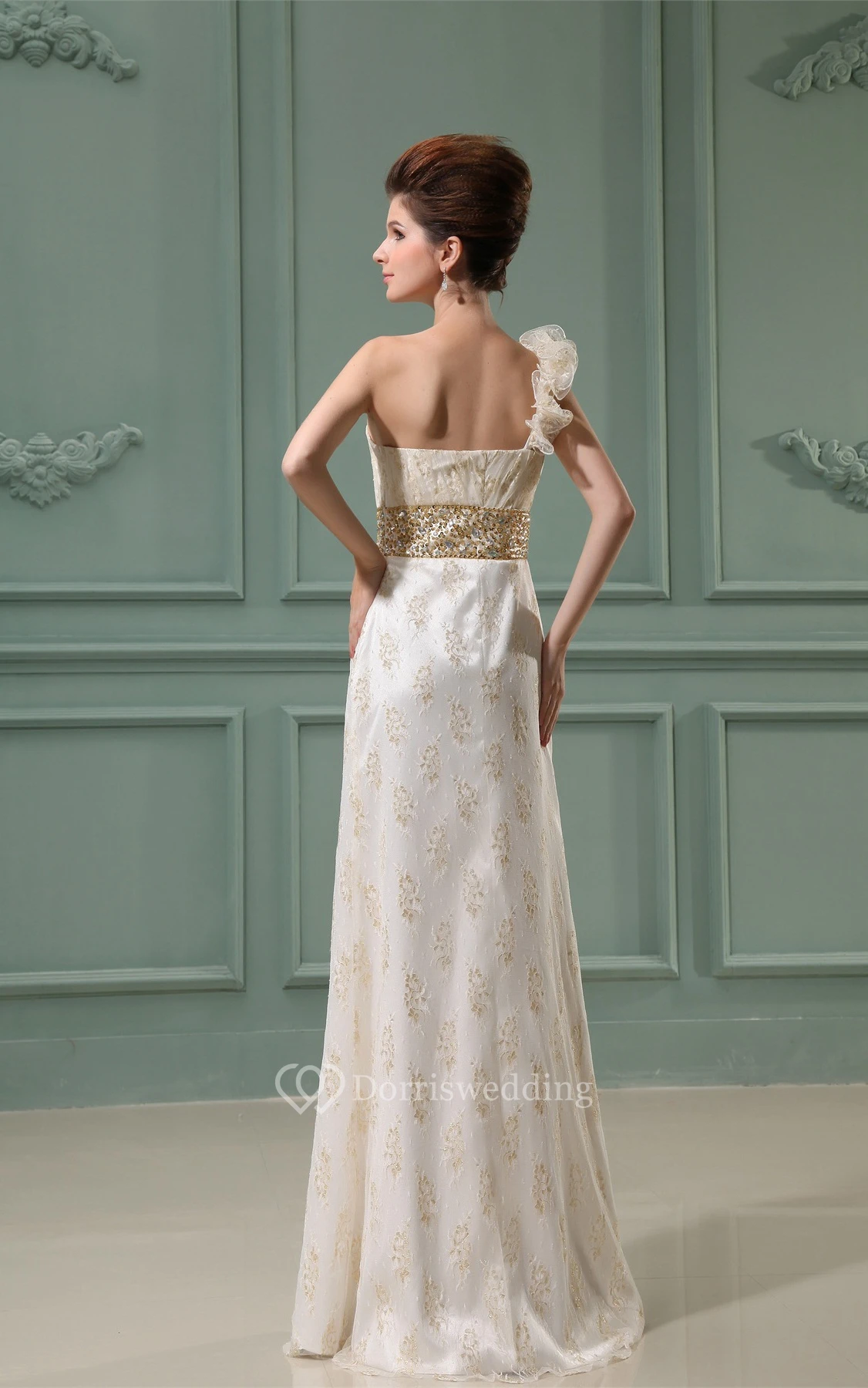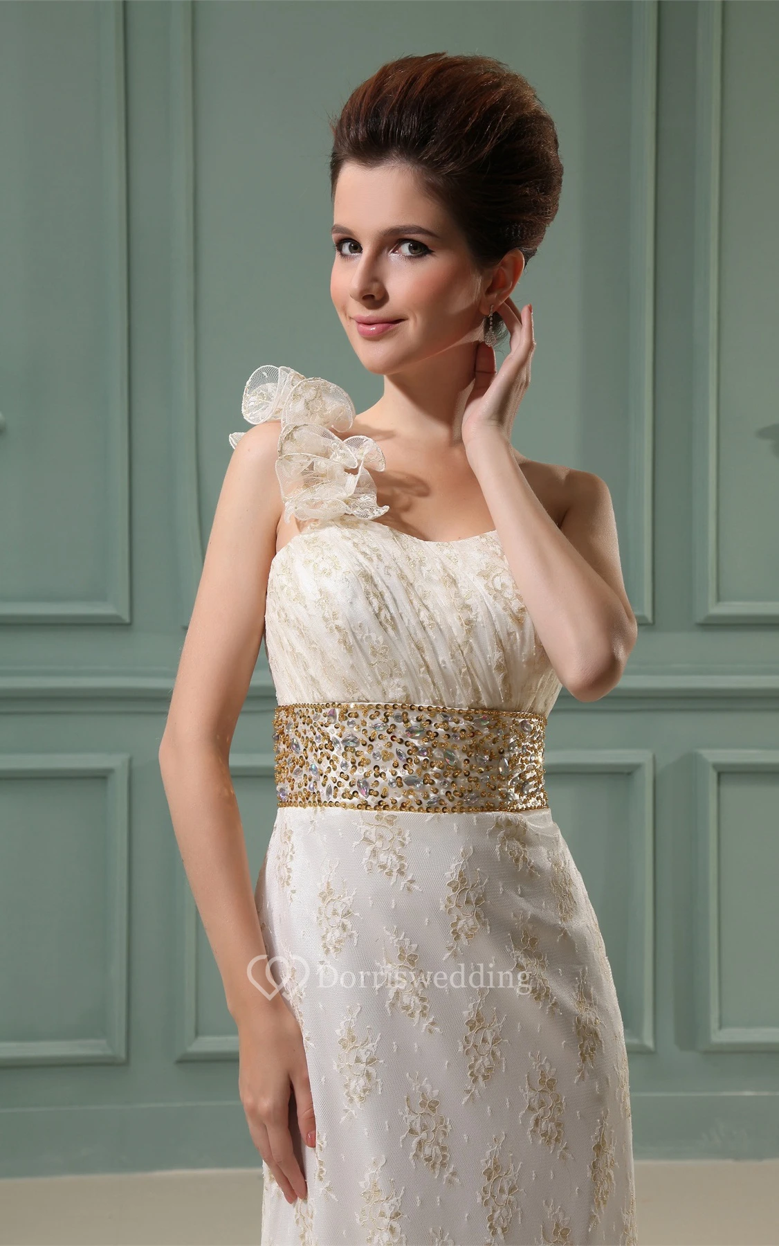 One-Strap Ruched Sheath Sleeveless Jeweled Waist and Dress With Appliques