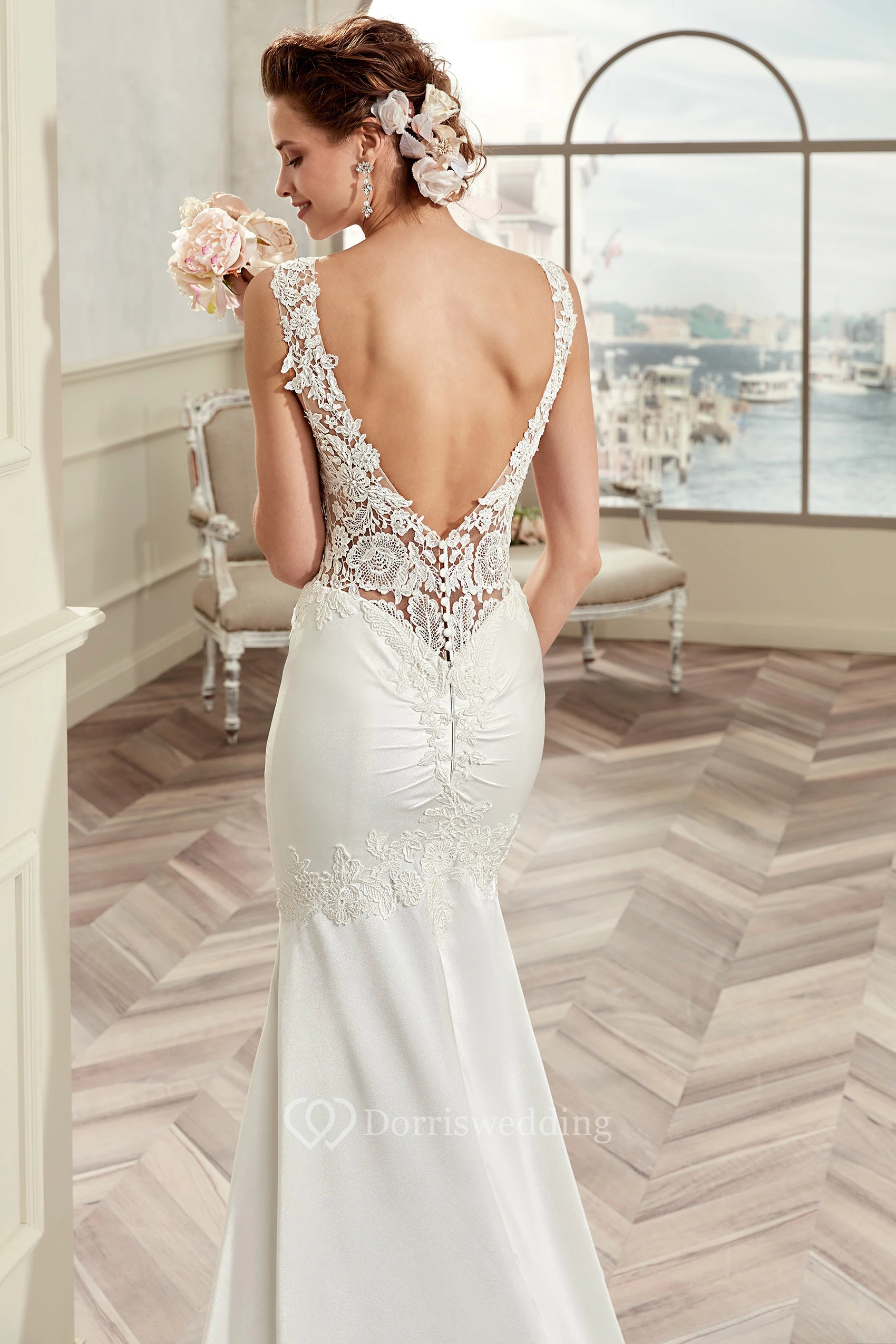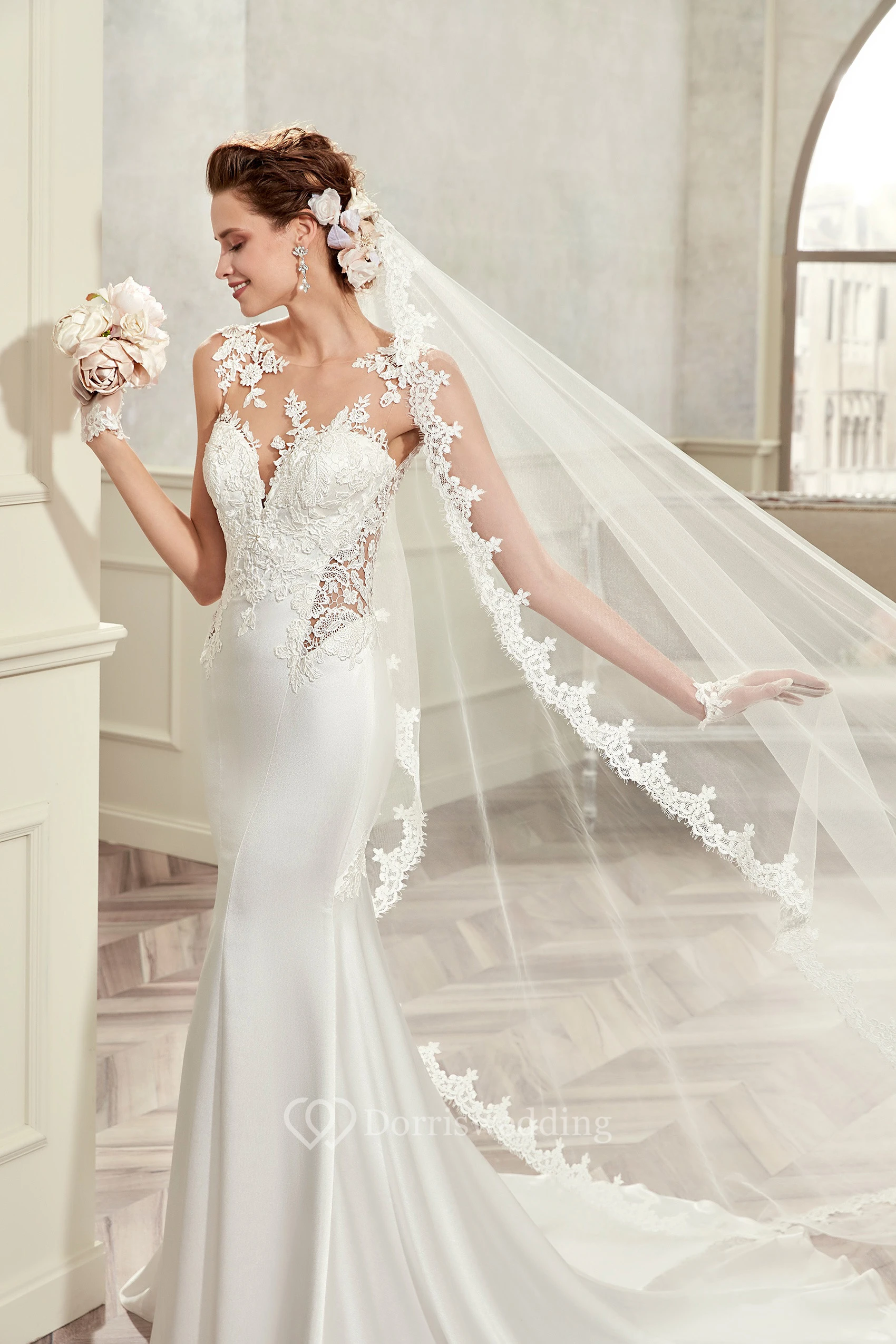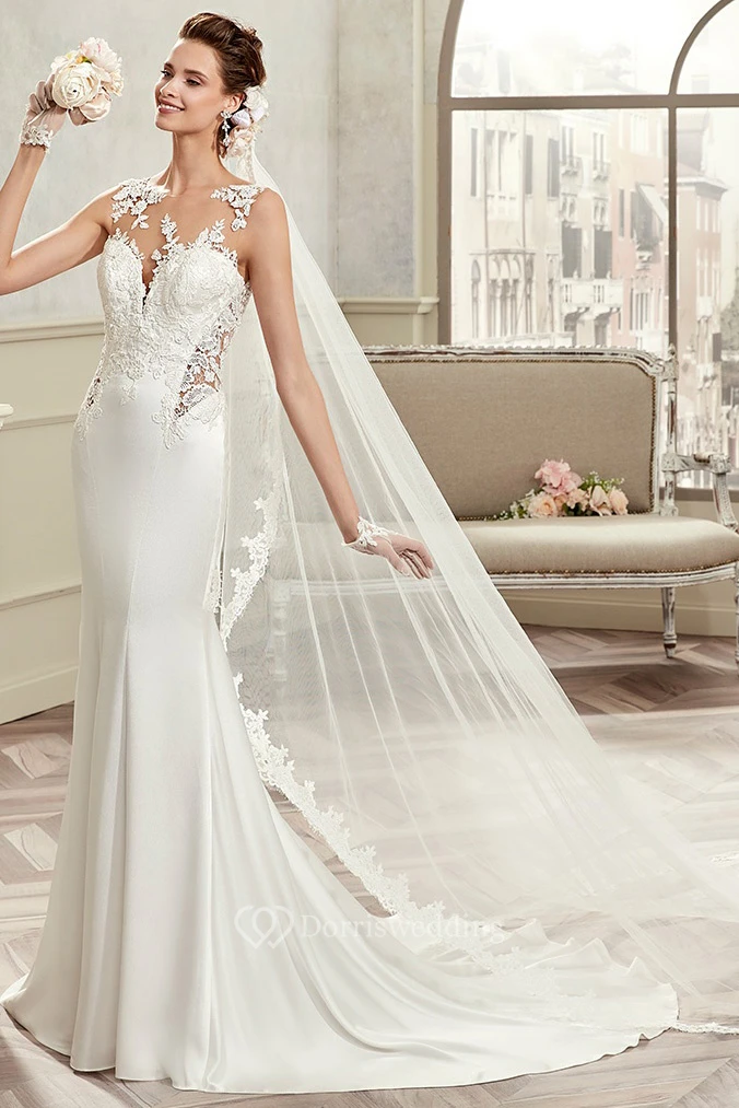 Open-Back Sheath Bridal Gown With Lace Appliques And Illusion Waist