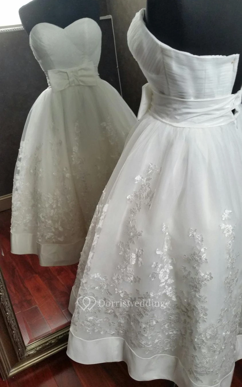 Organza and Lace Sweetheart A-Line Tea Length First Communion Dress With Bow