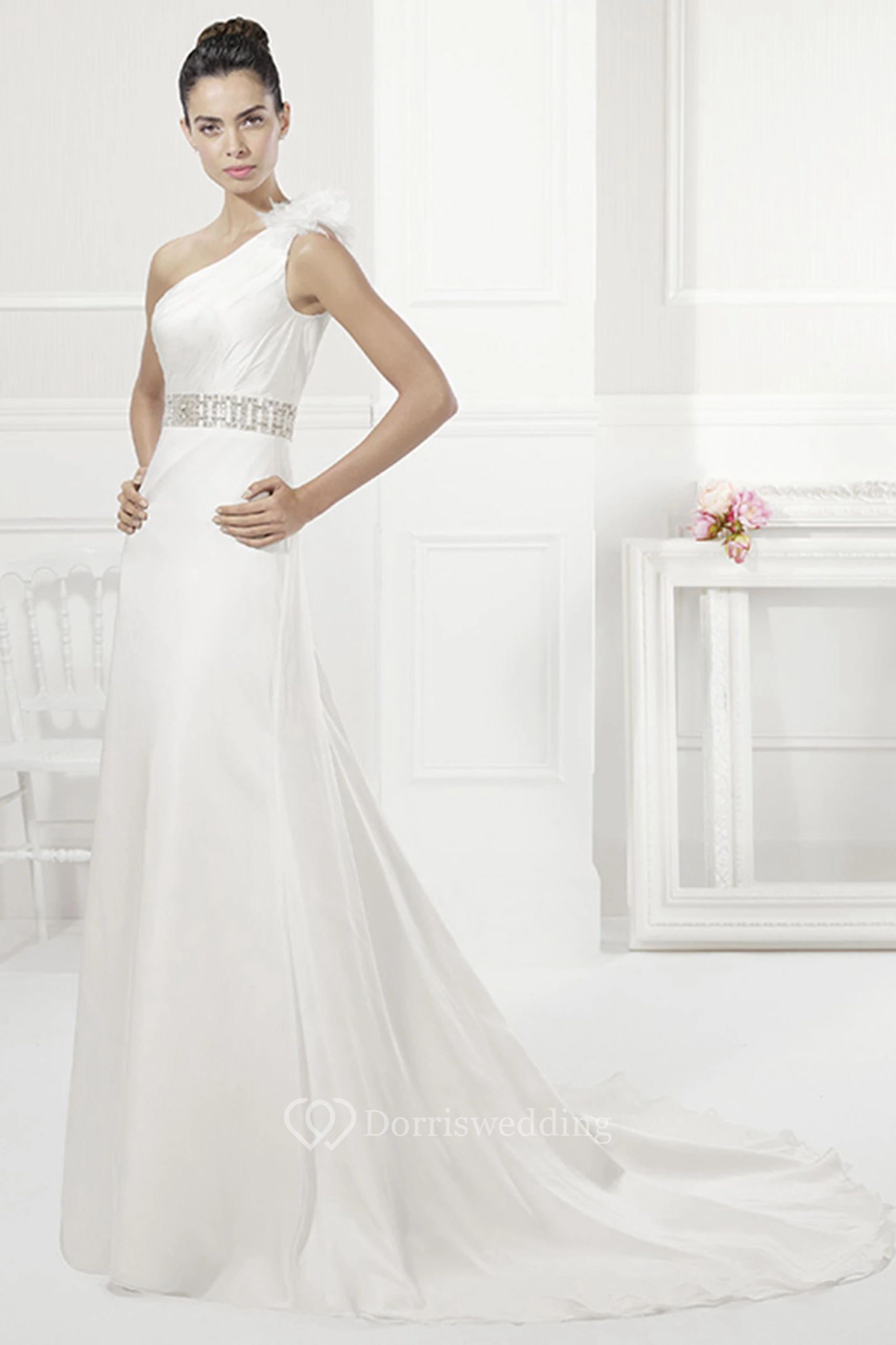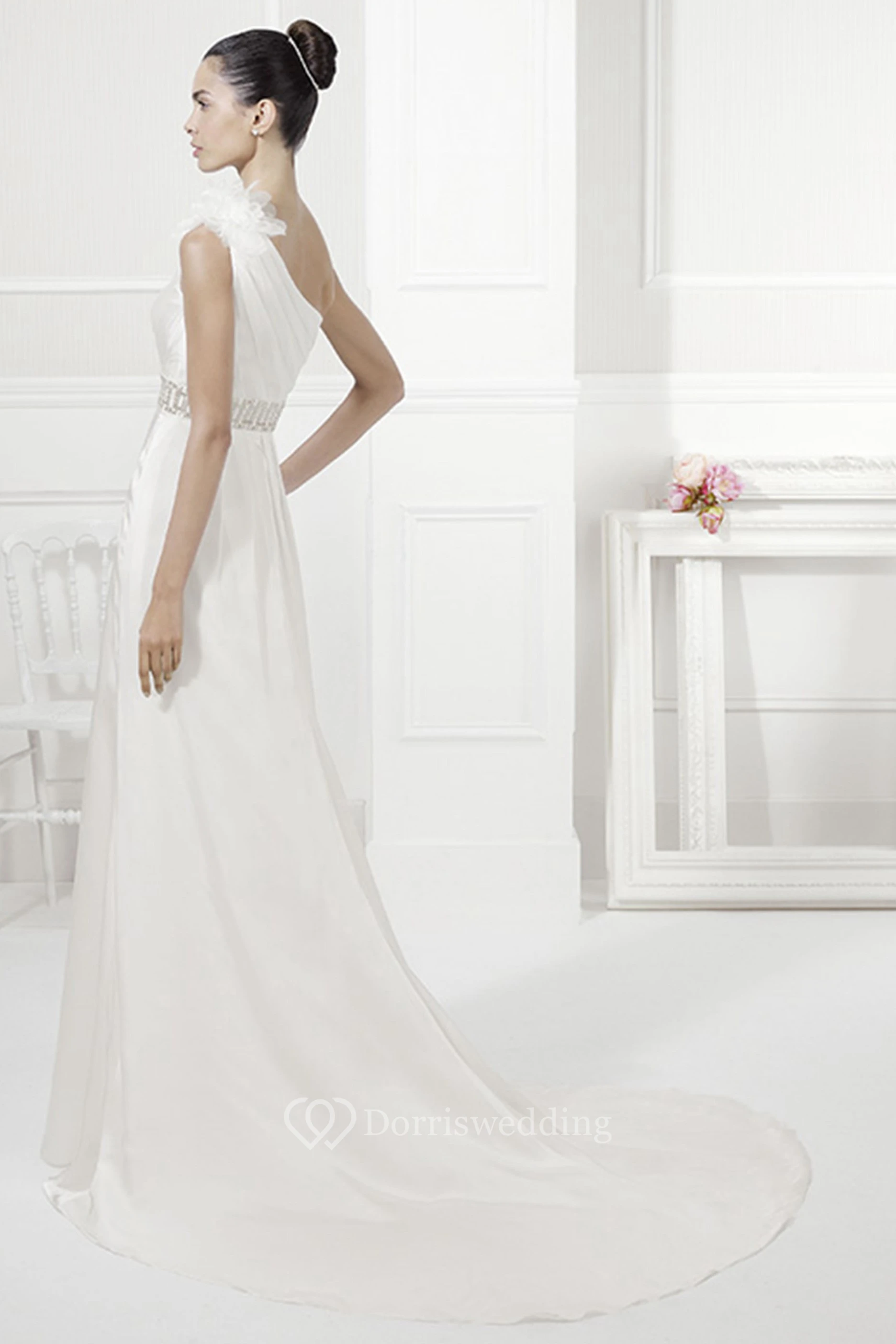 Organza Flower Single Strap Sheath Bridal Gown With Beaded Sash