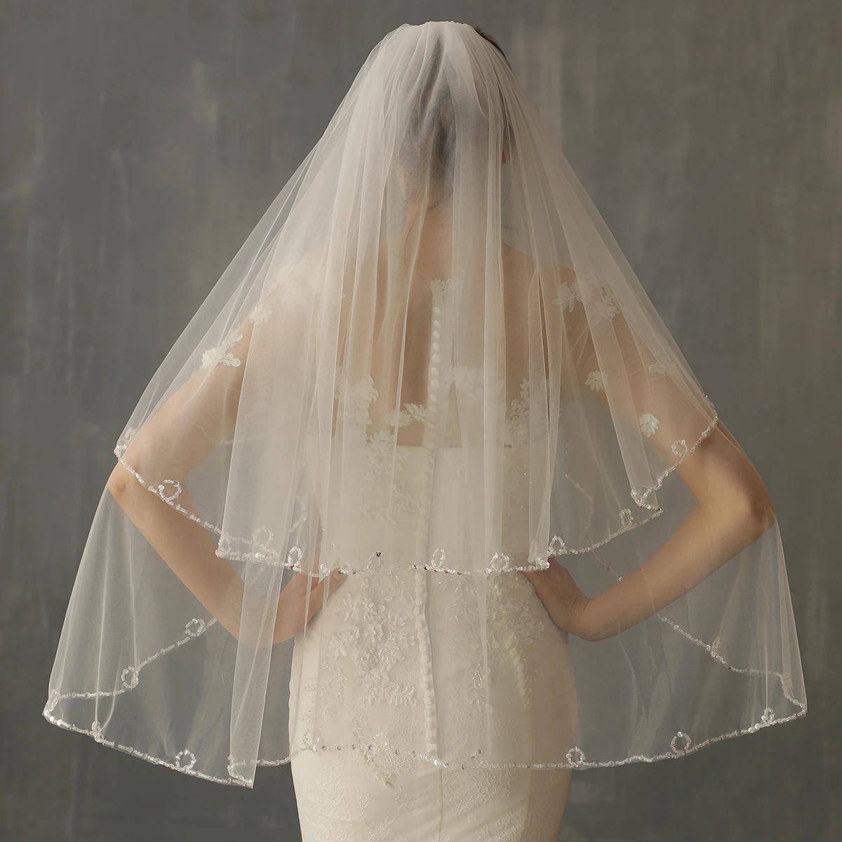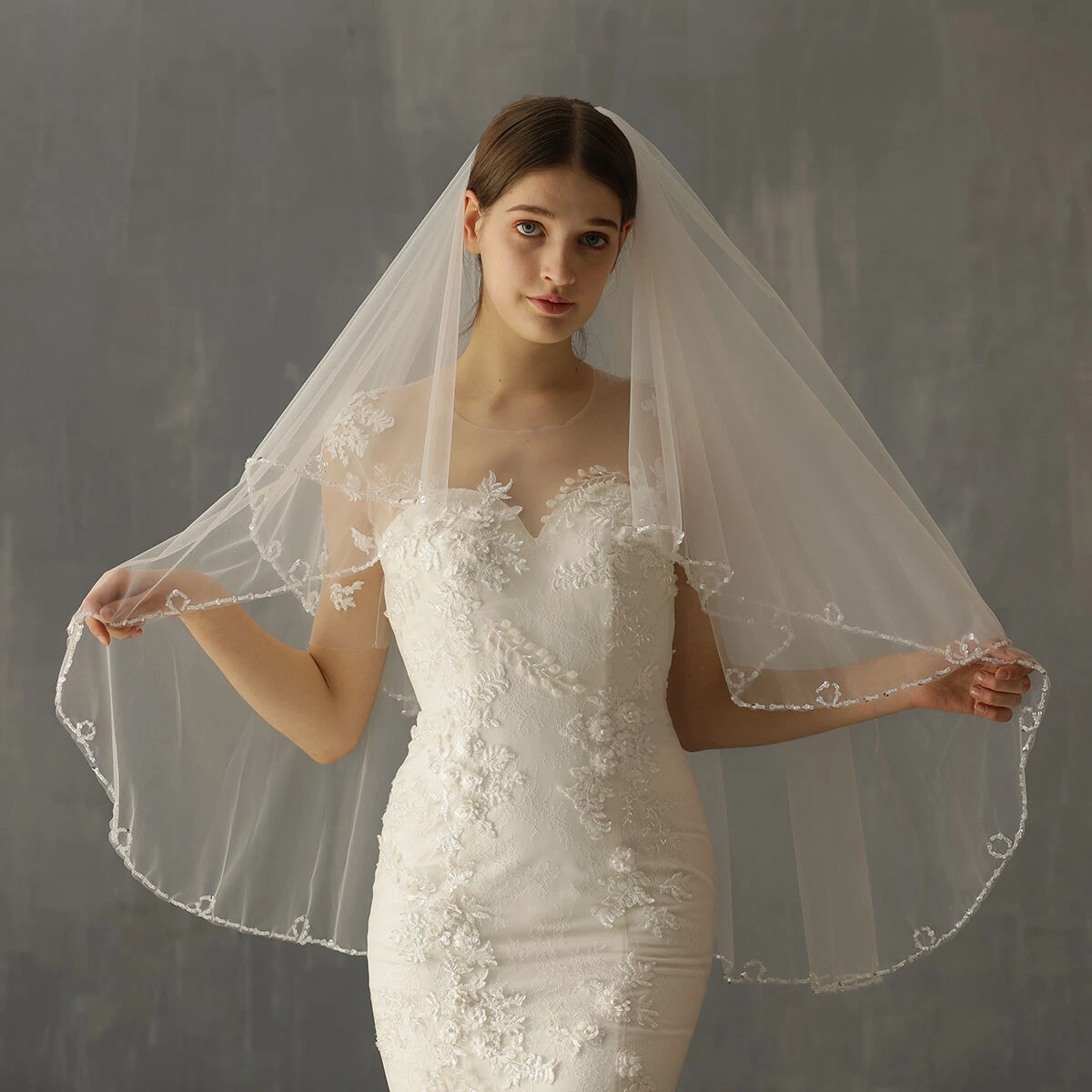 Very pretty veil was very surprised with the quality of it. It looks so similar to one that I was gonna purchased at davids bridal for way more.