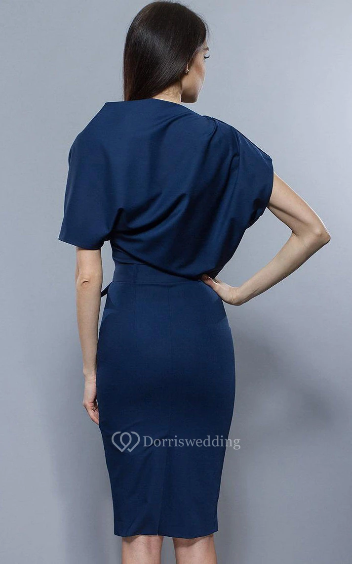 Oversize Top Sheath Jersey Knee Length Dress With Belt Deep Blue