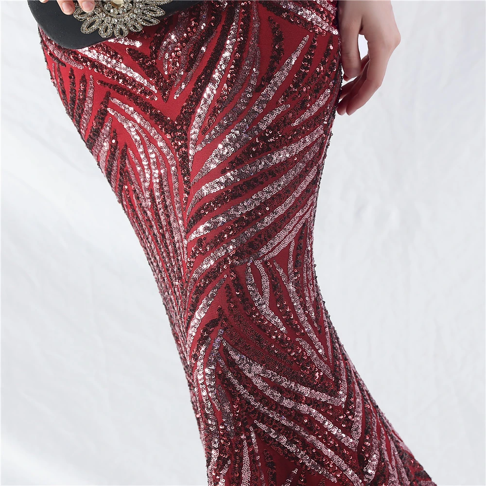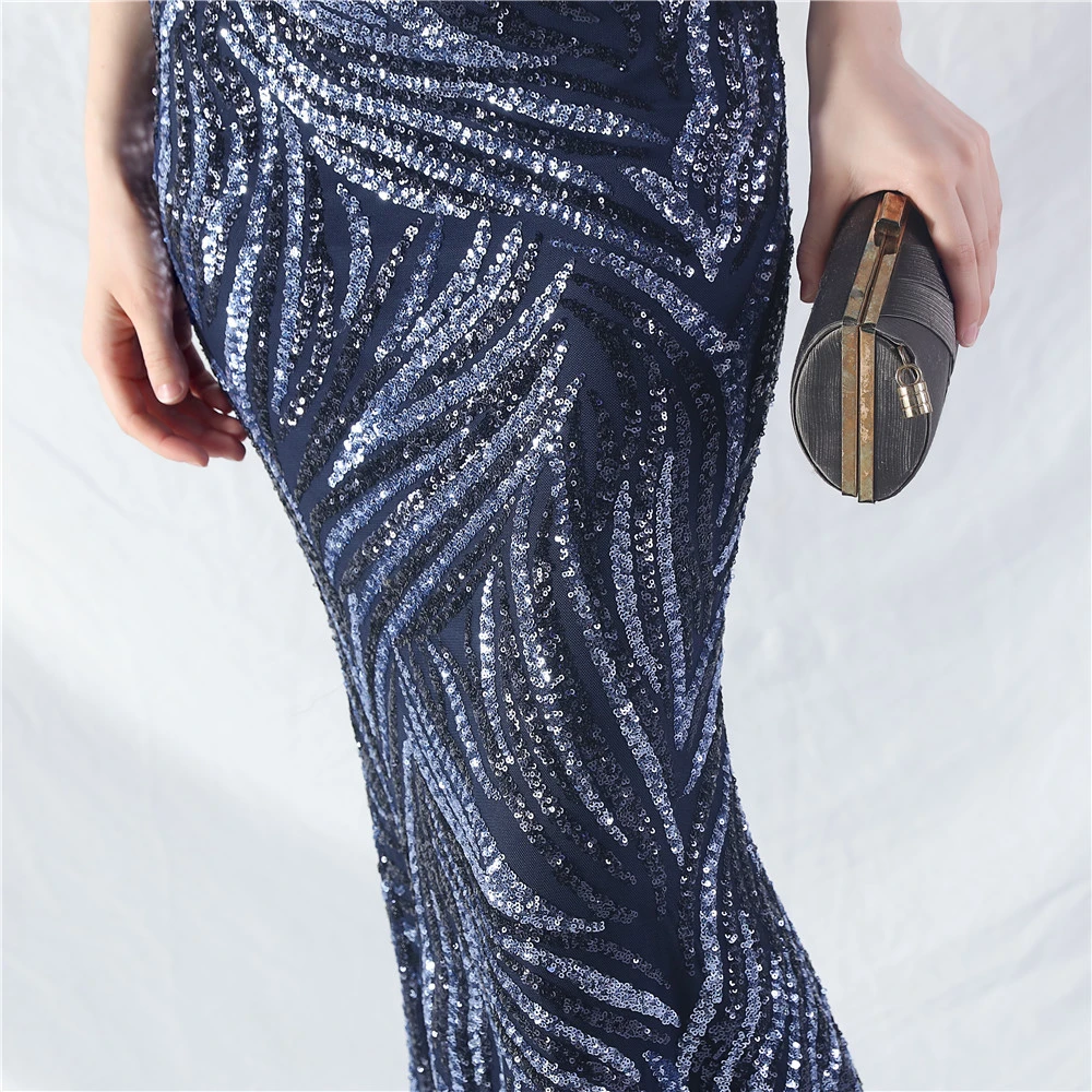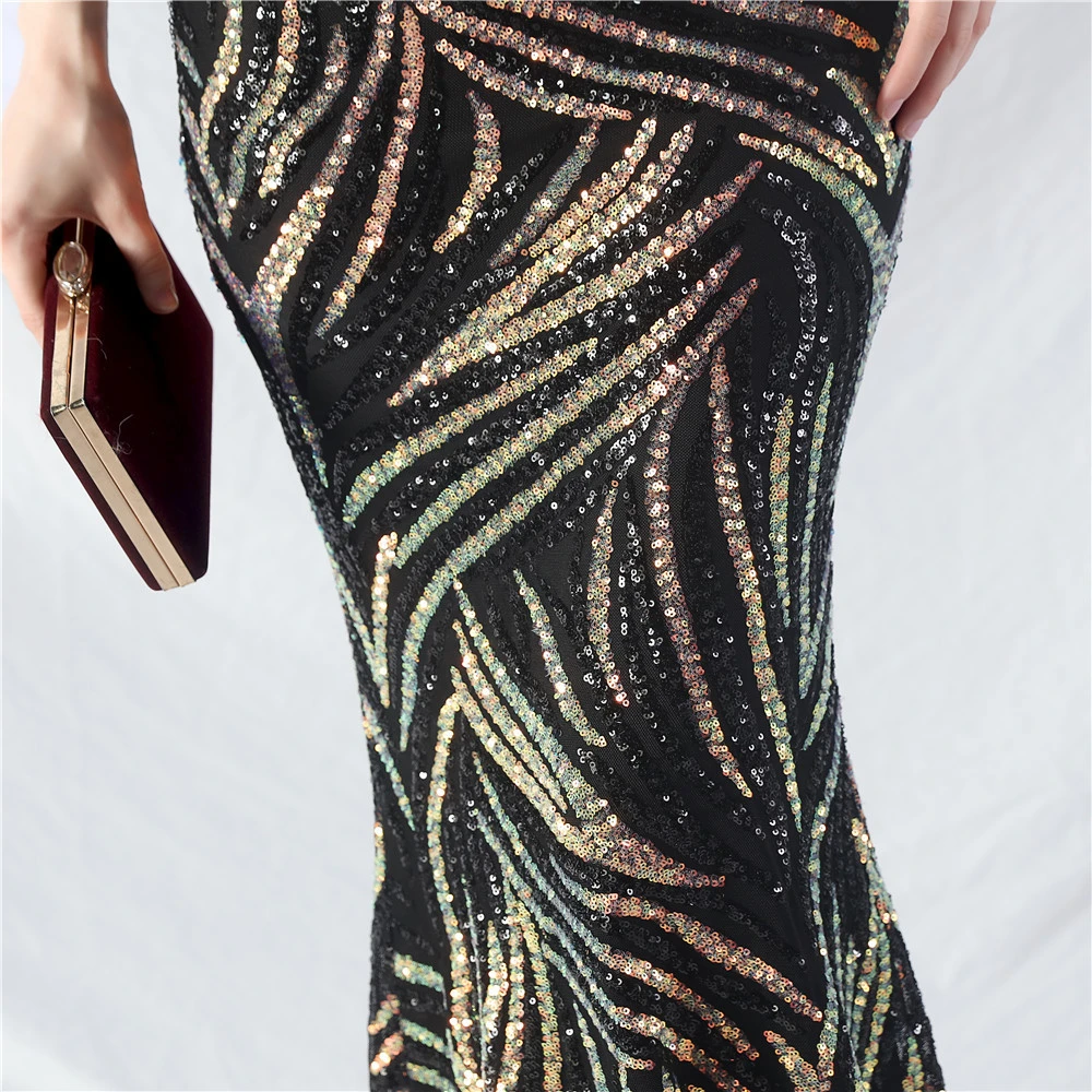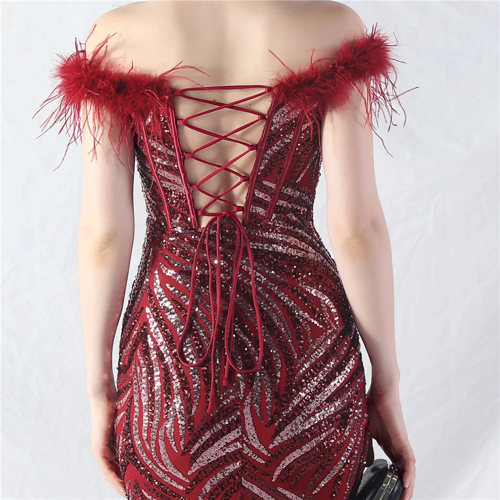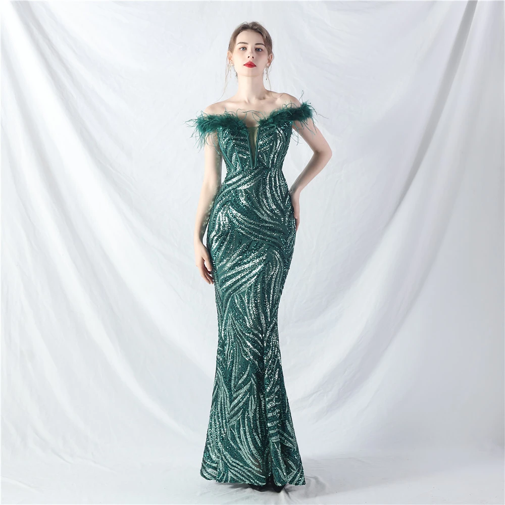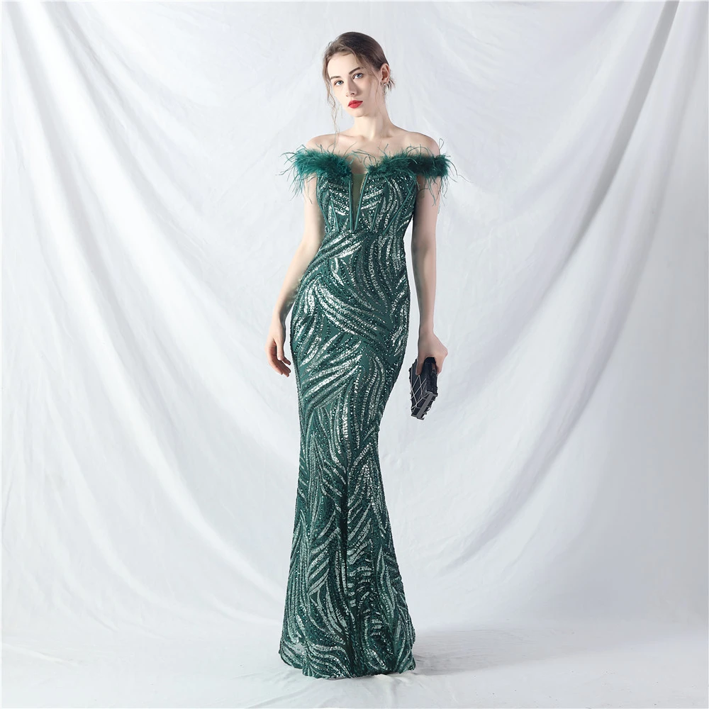 Palace Fishbone Waisted Vest Crafted Ostrich Feather High-End Sequin Evening Dress