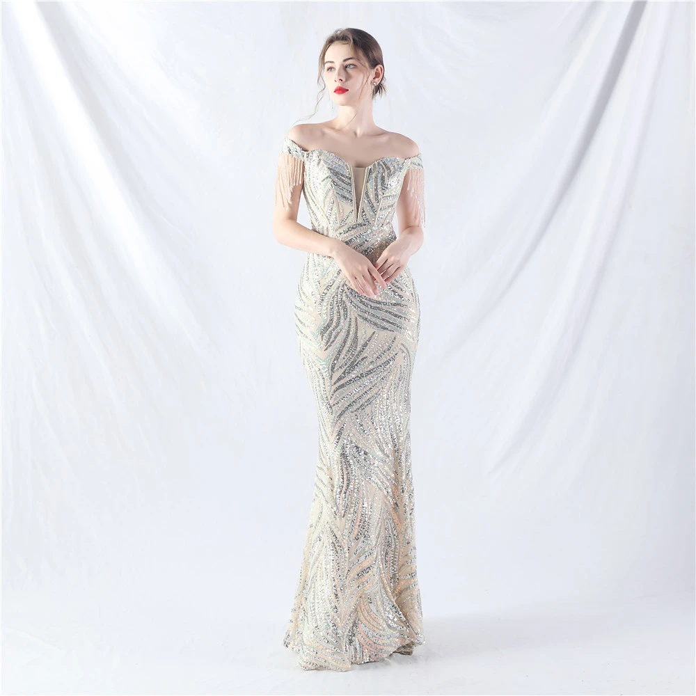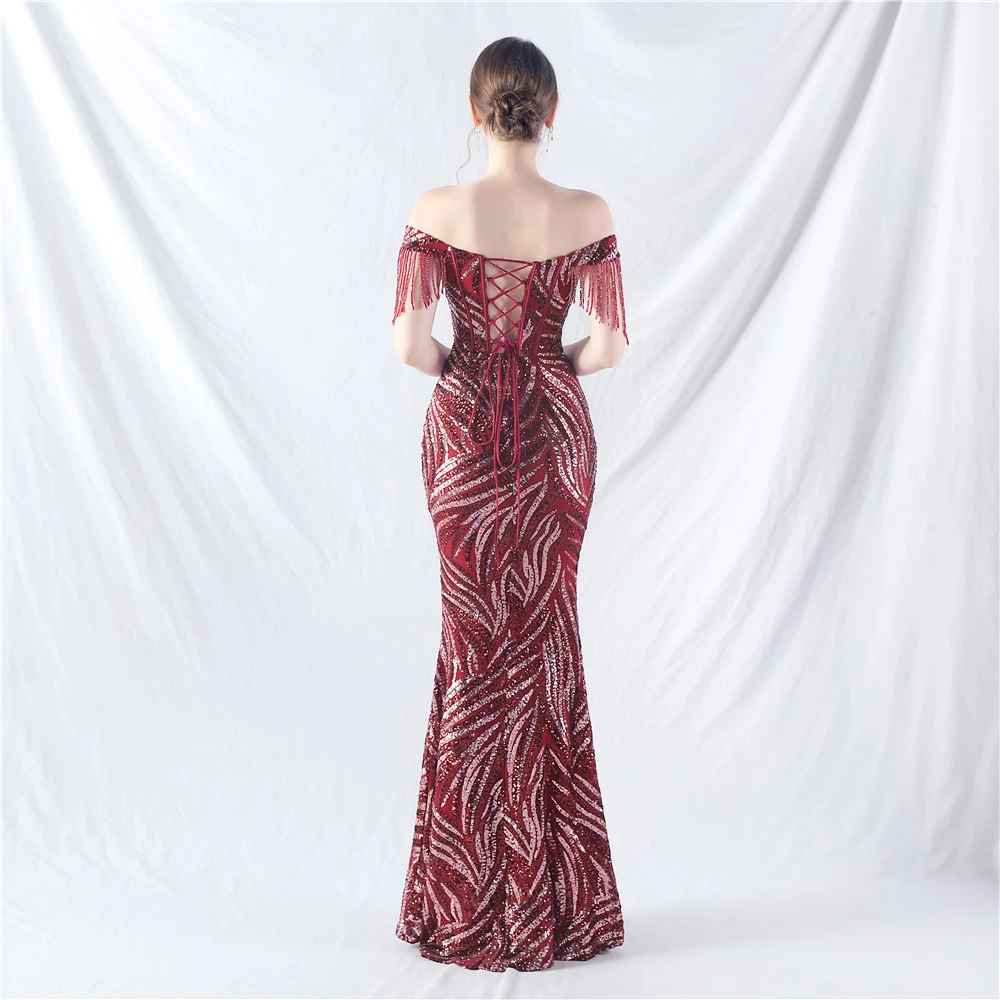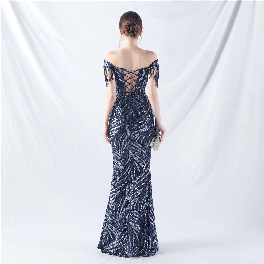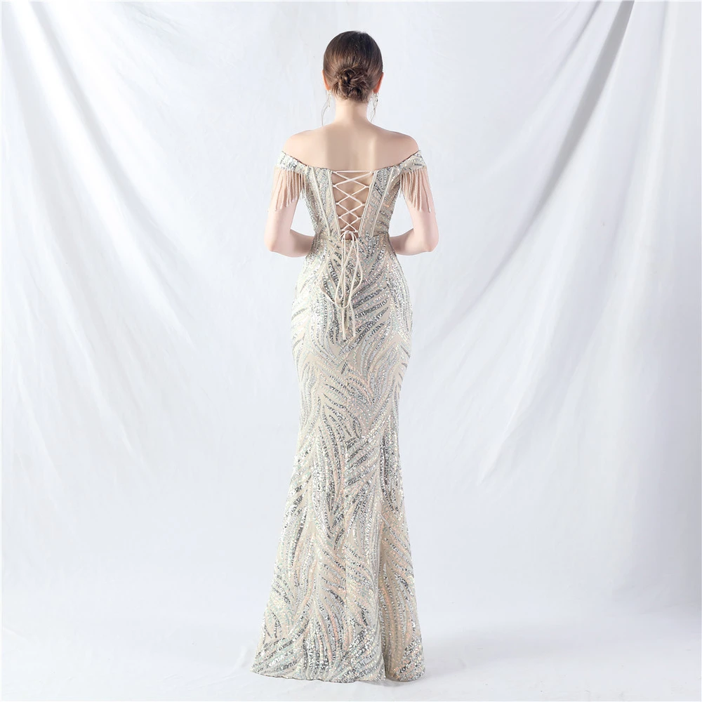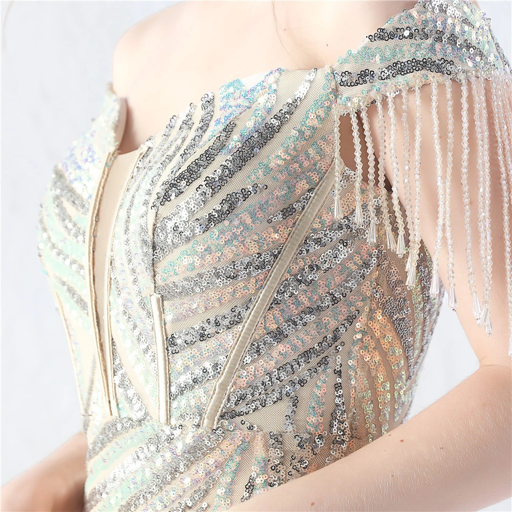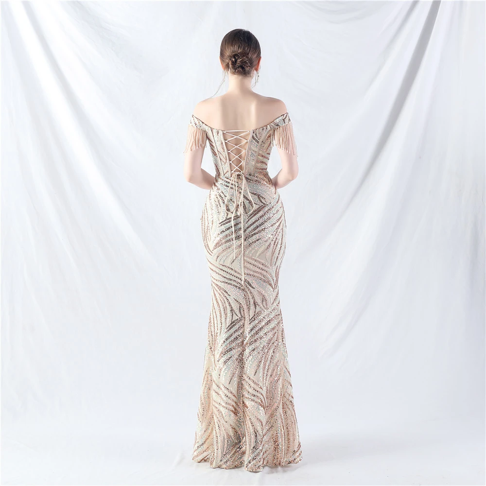 Palace Herringbone Waist Strap Heavy-Crafted Beaded High-End Evening Dress