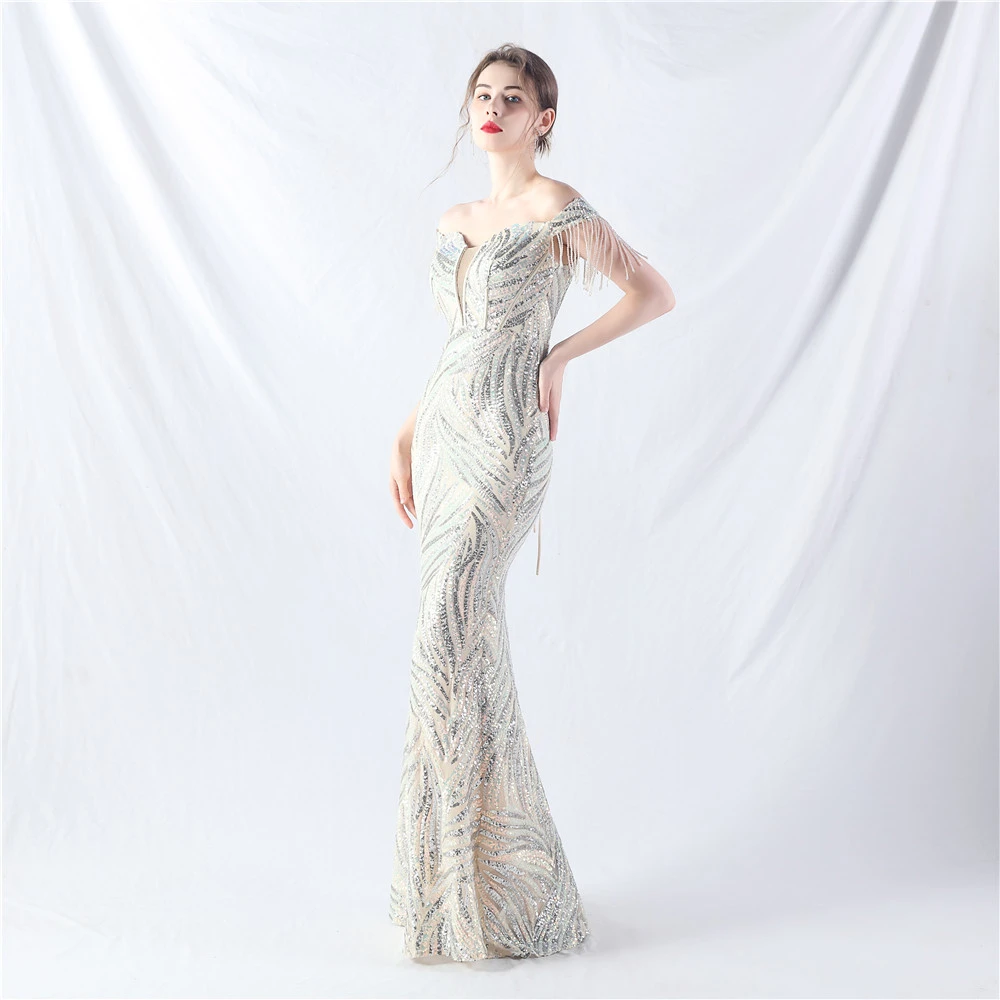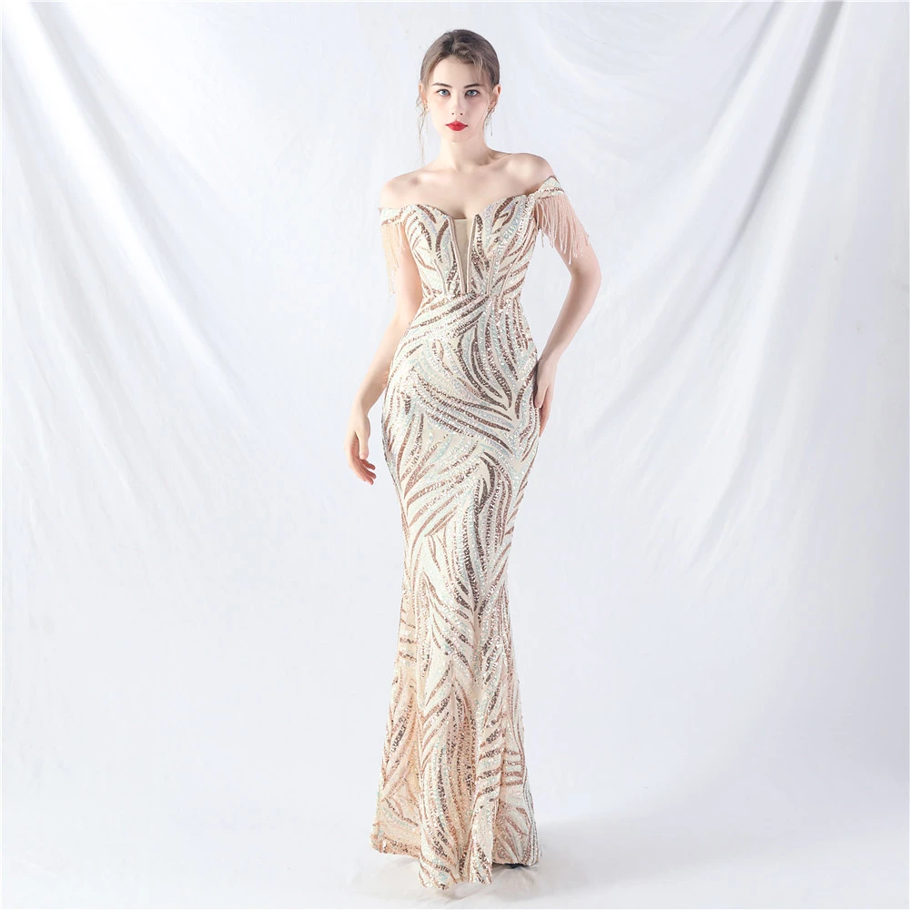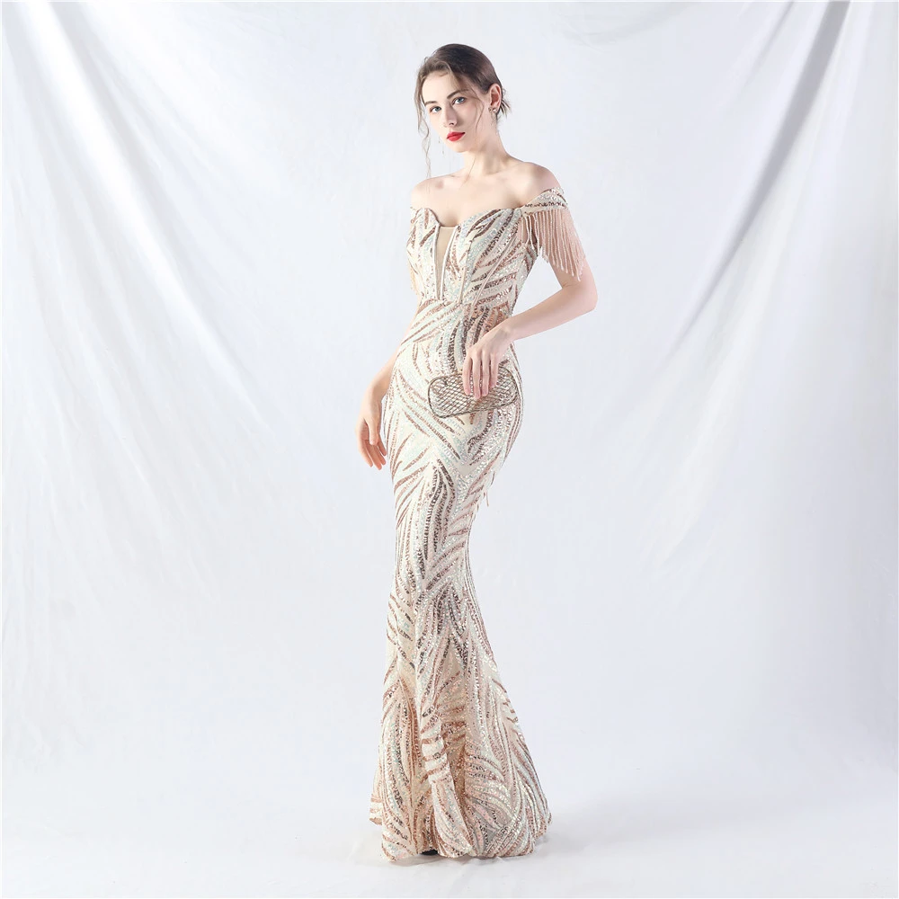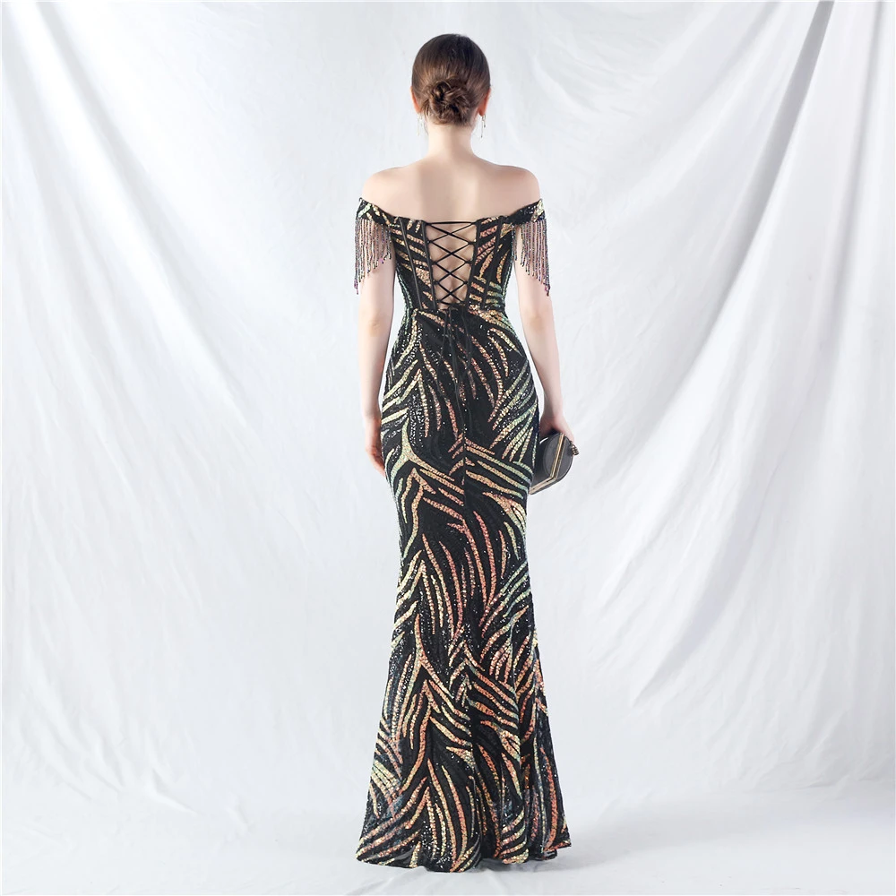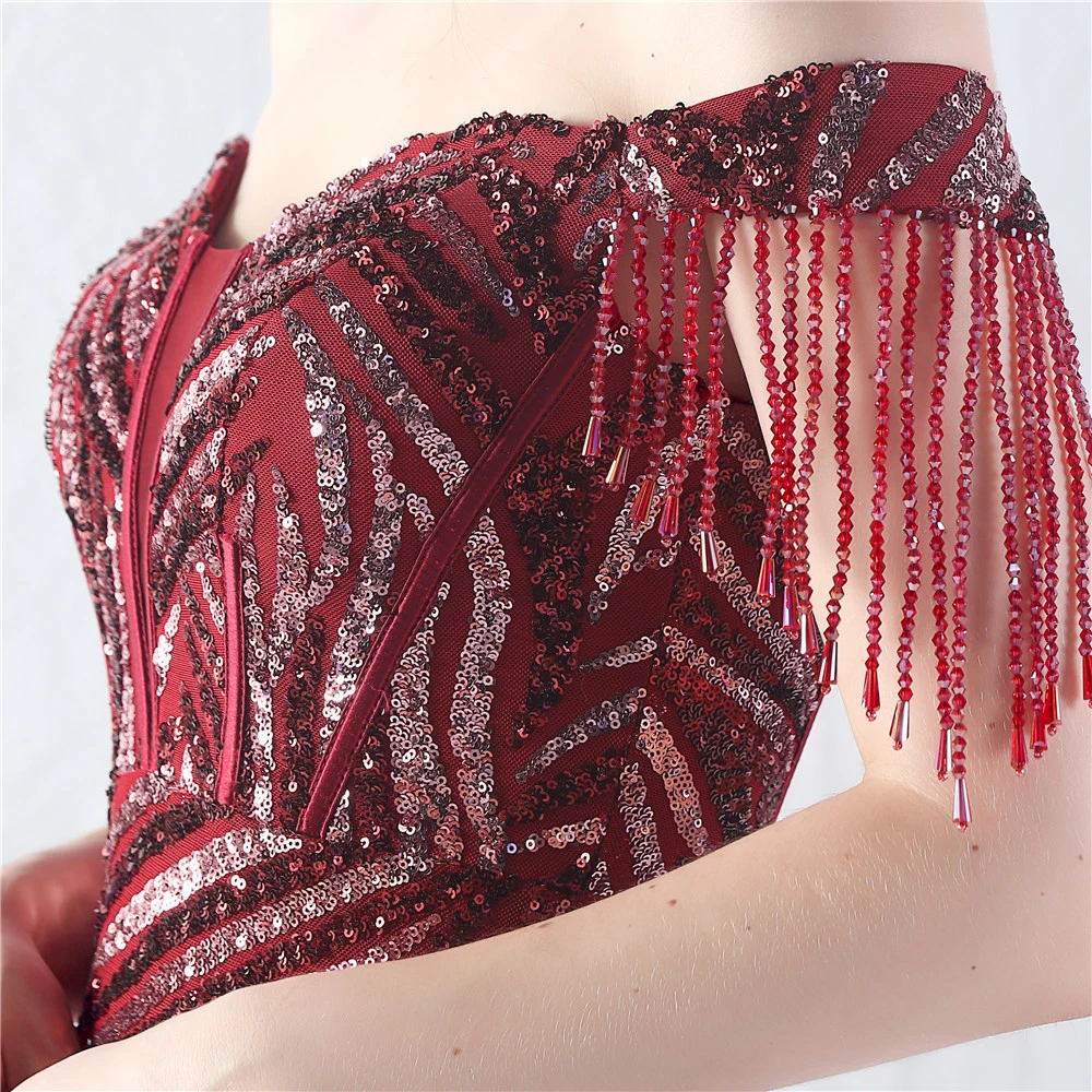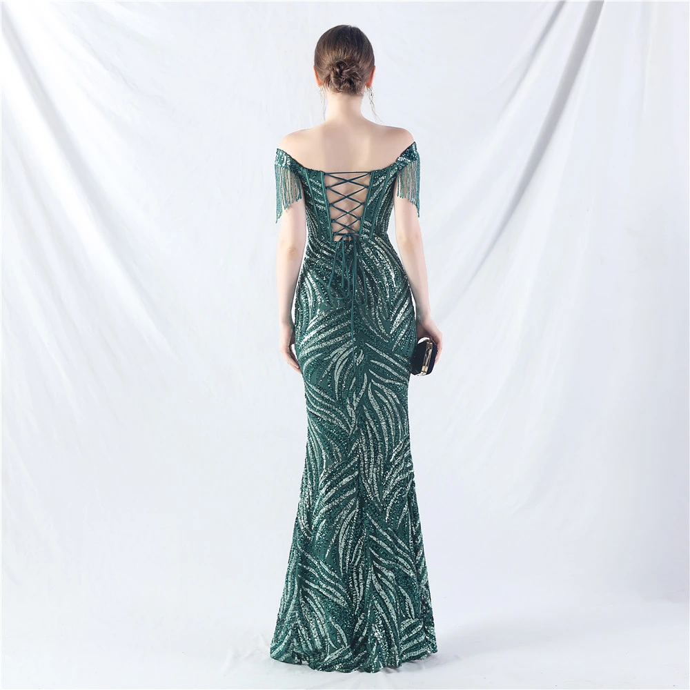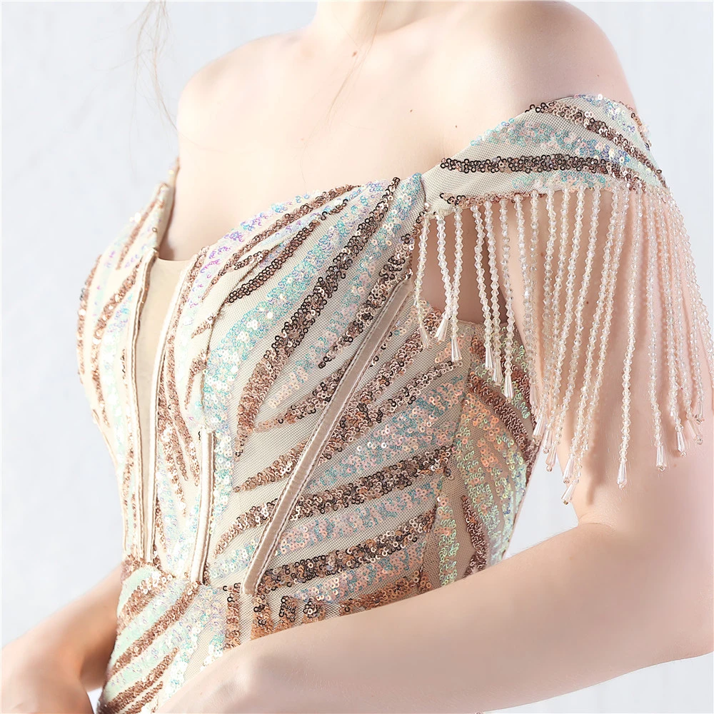 Palace Herringbone Waist Strap Heavy-Crafted Beaded High-End Evening Dress