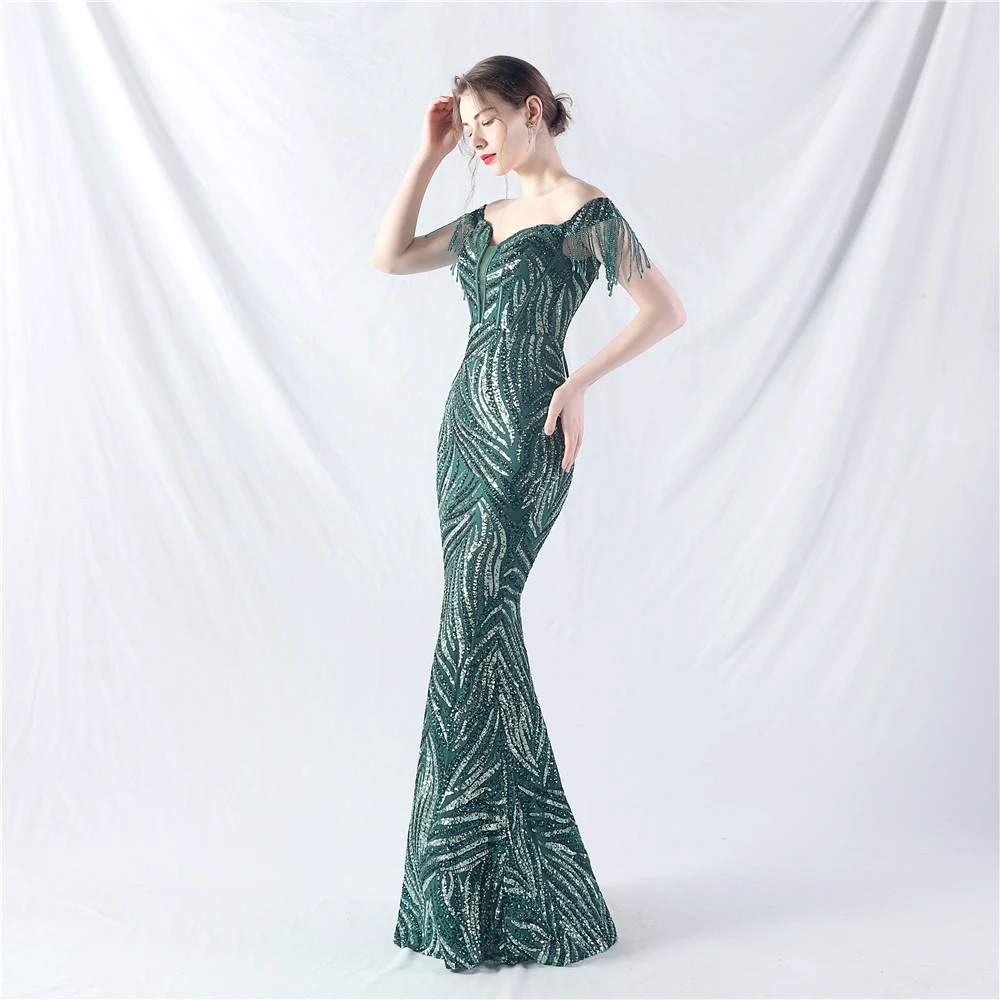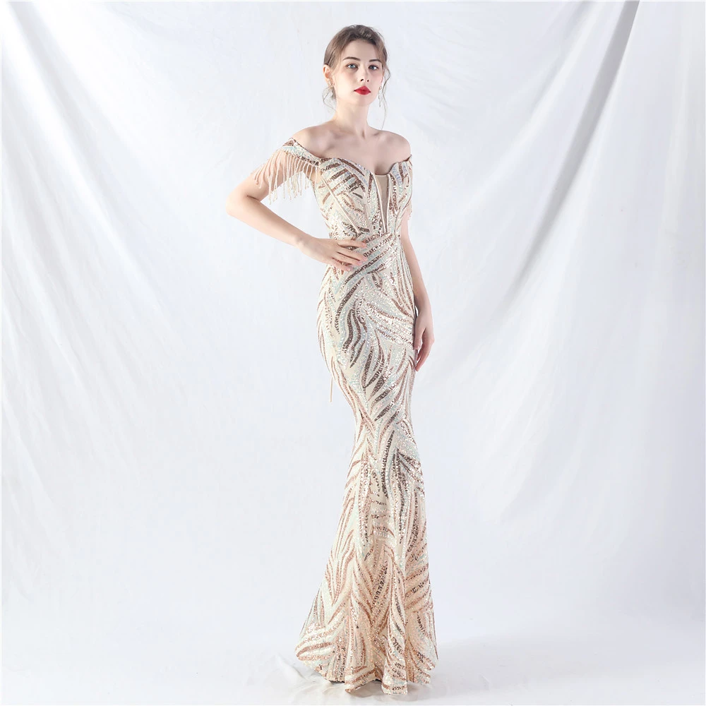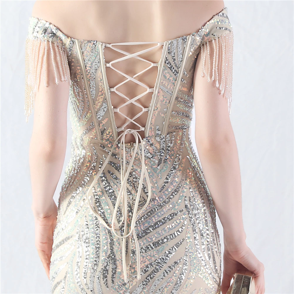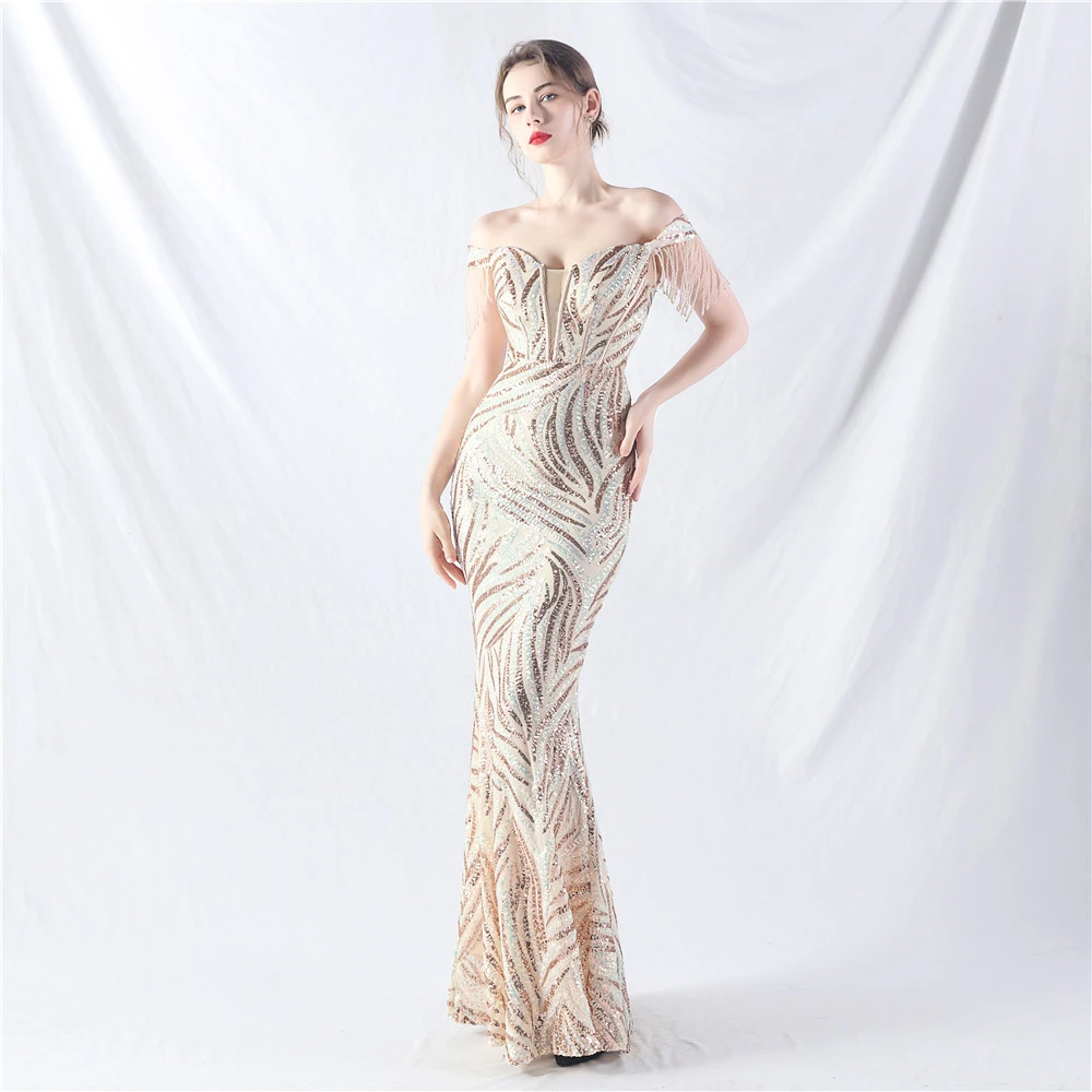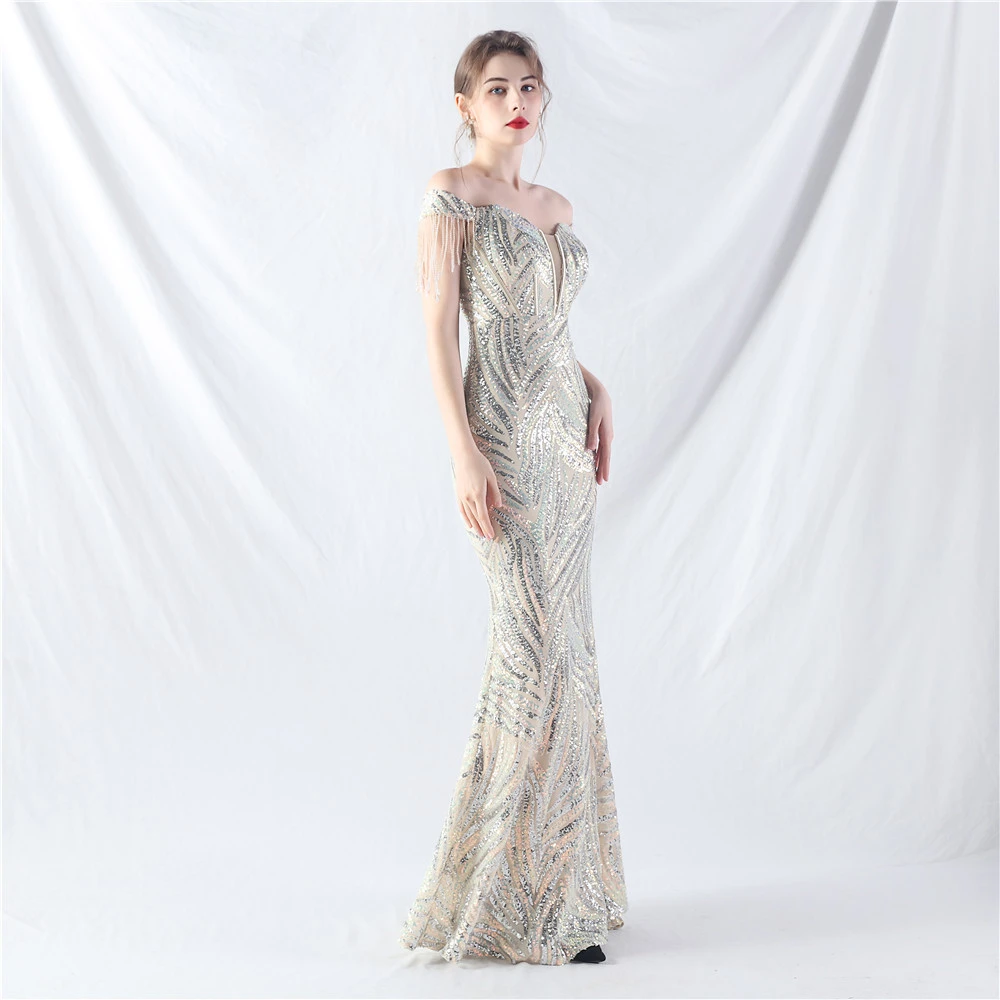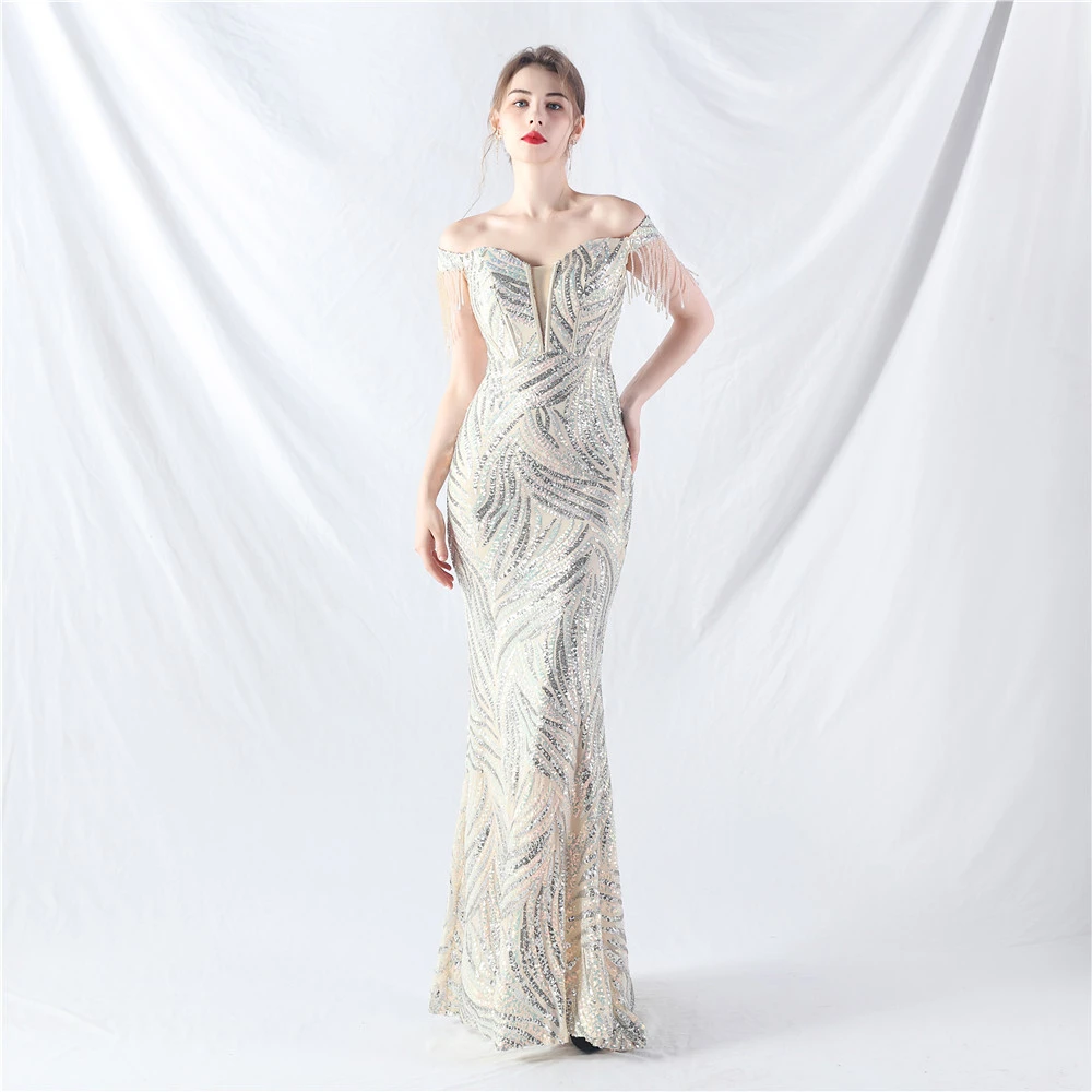 Palace Herringbone Waist Strap Heavy-Crafted Beaded High-End Evening Dress