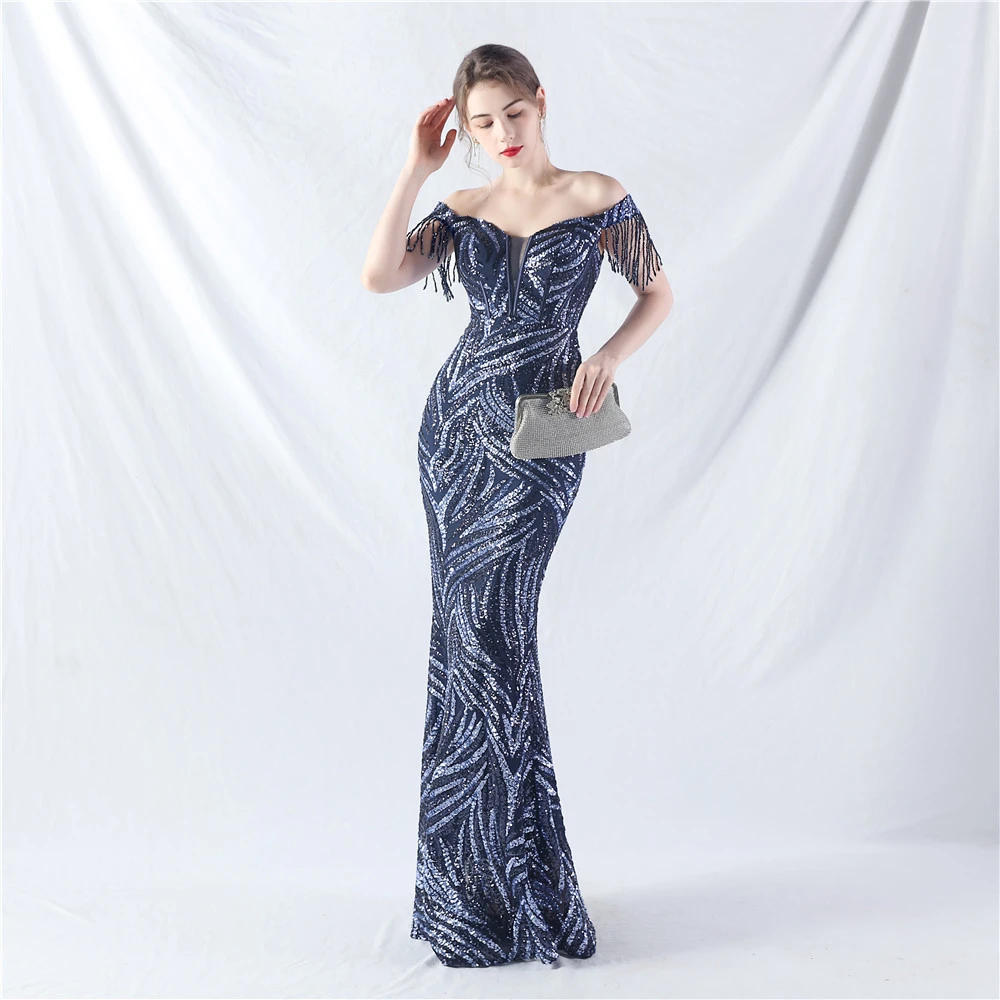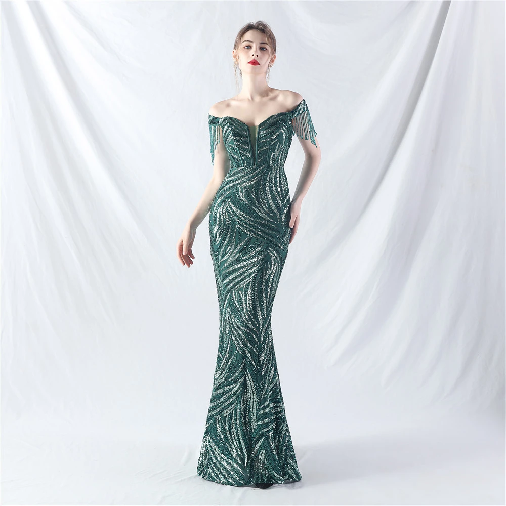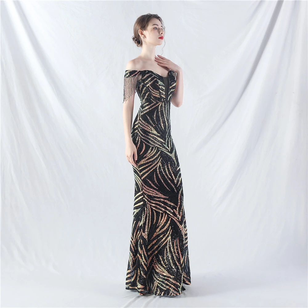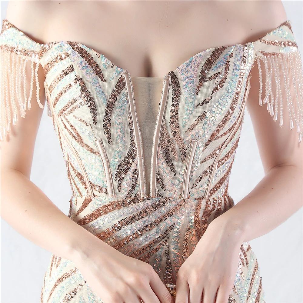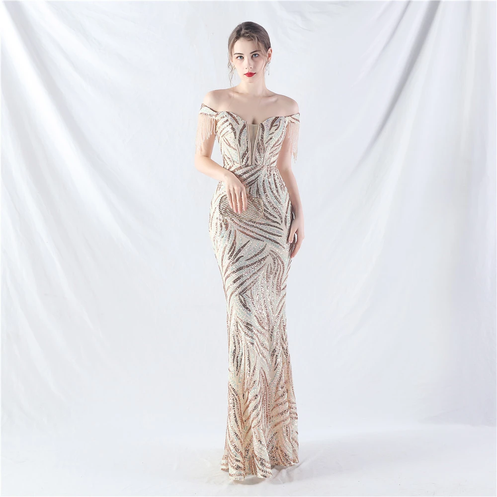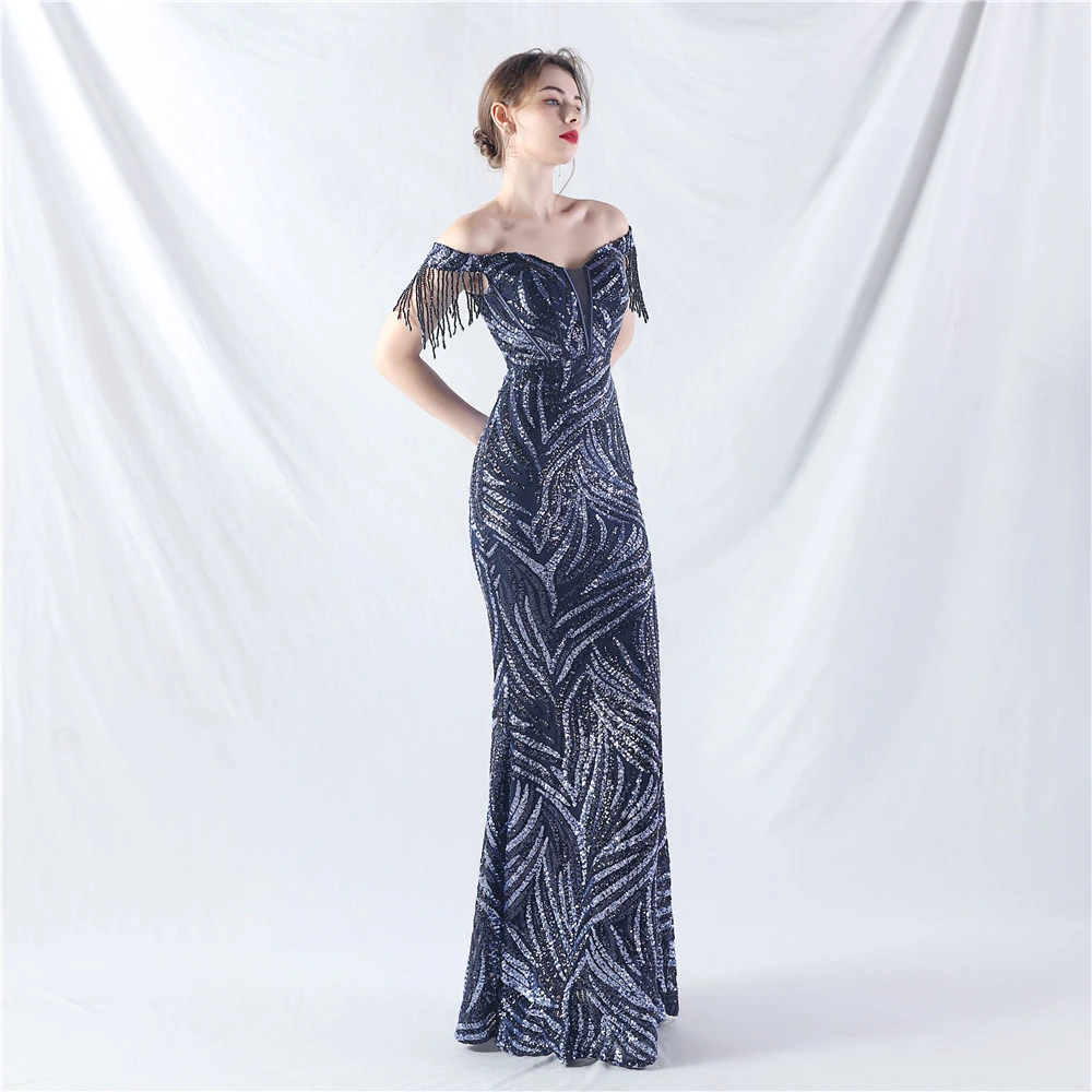 Palace Herringbone Waist Strap Heavy-Crafted Beaded High-End Evening Dress