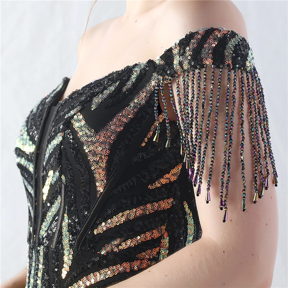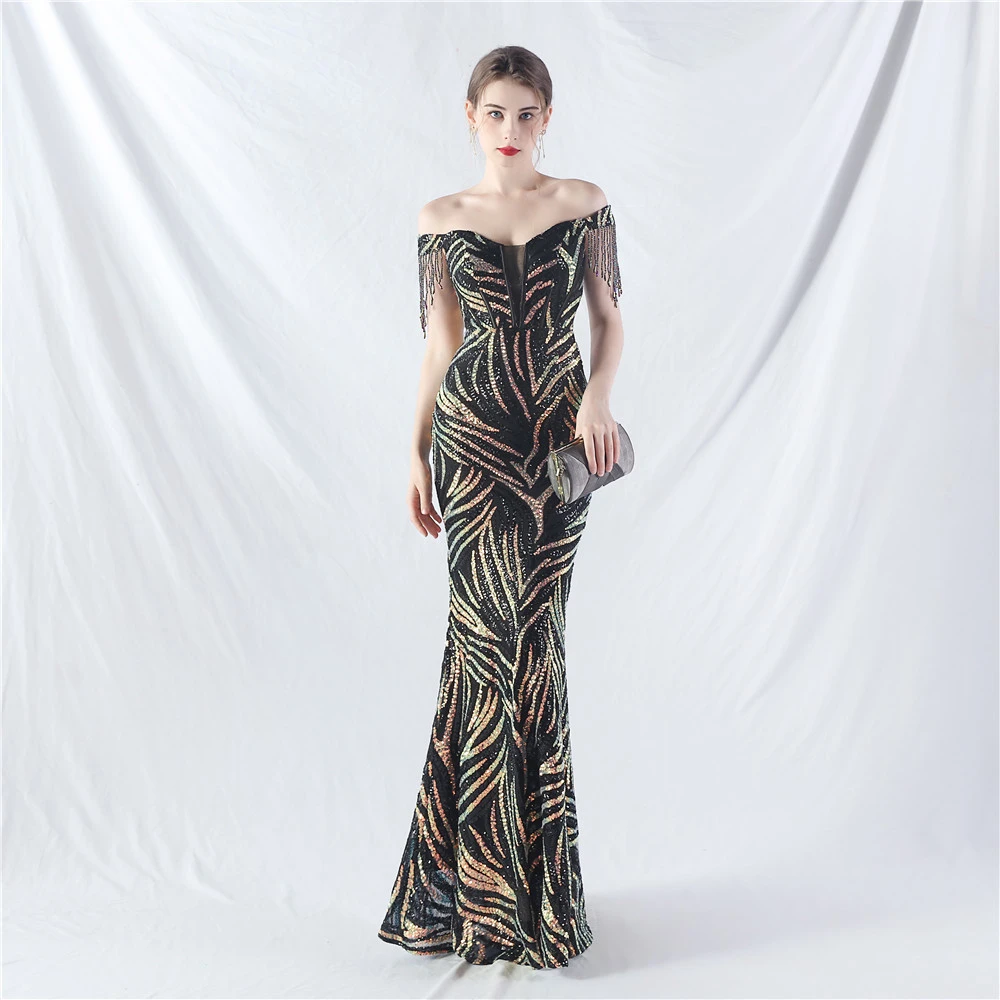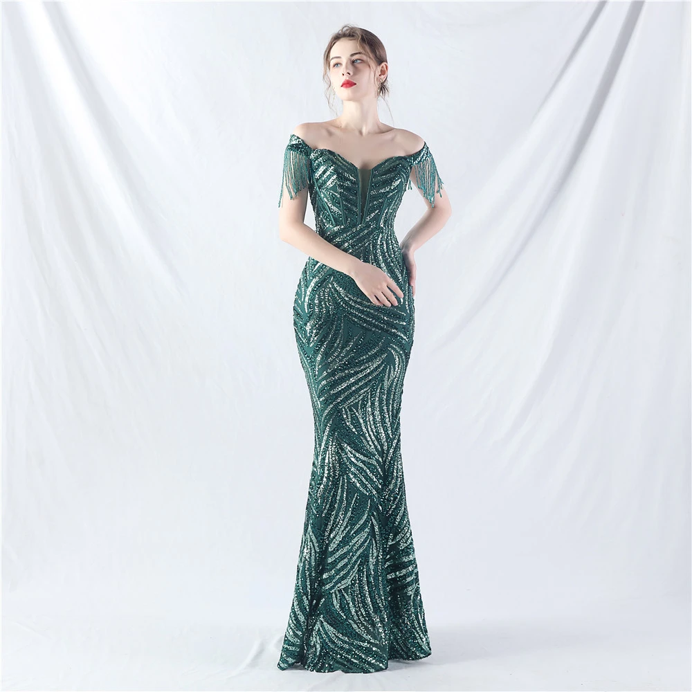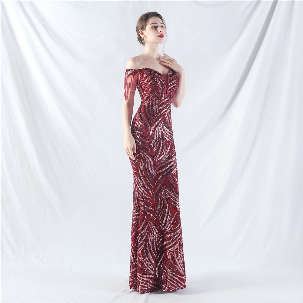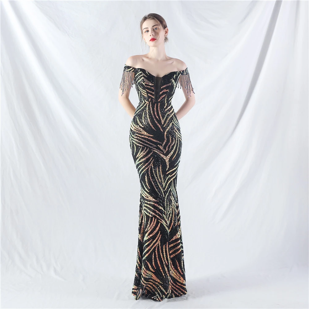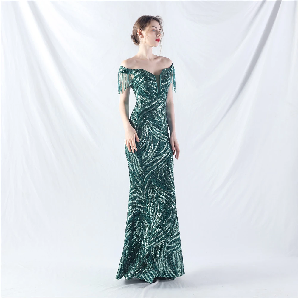 Palace Herringbone Waist Strap Heavy-Crafted Beaded High-End Evening Dress