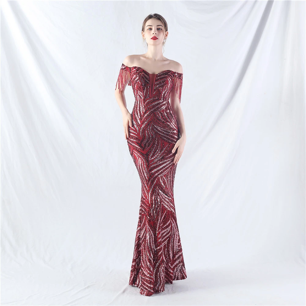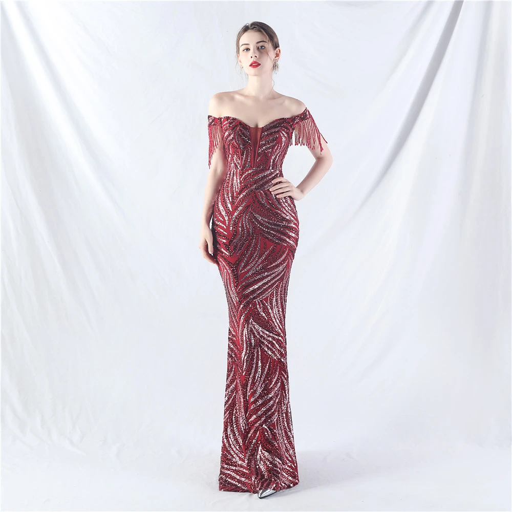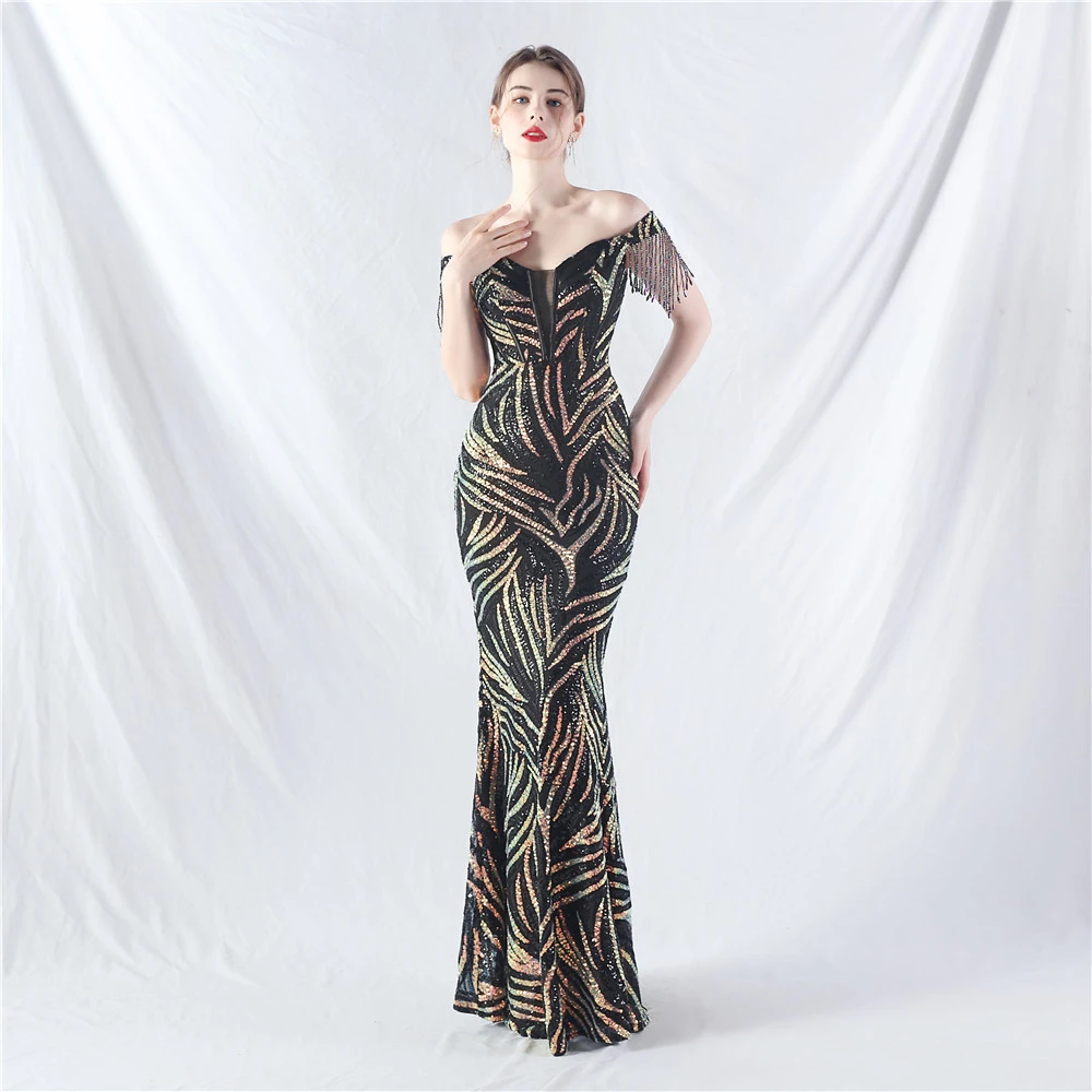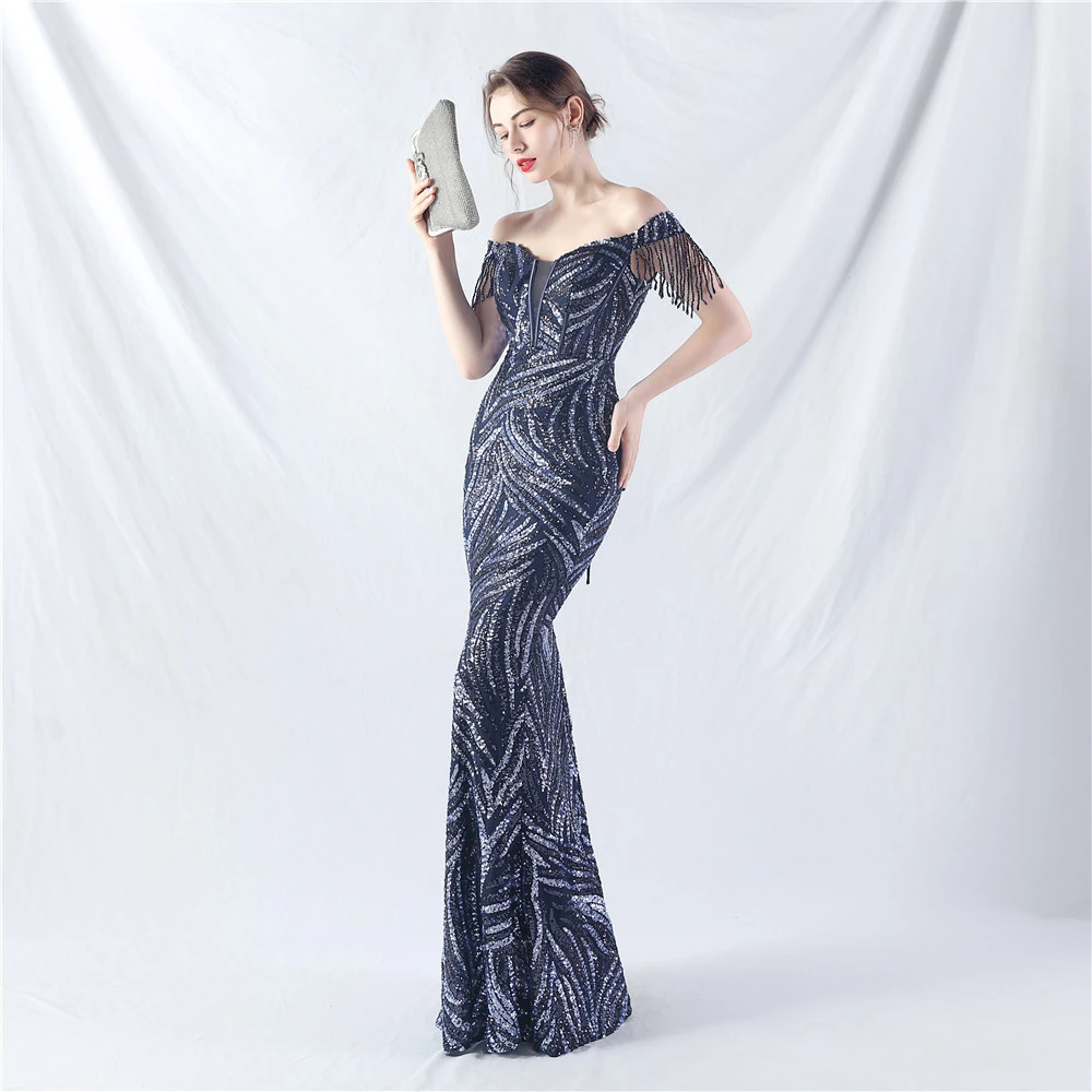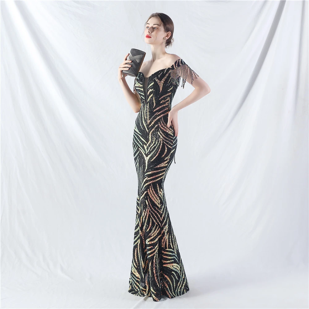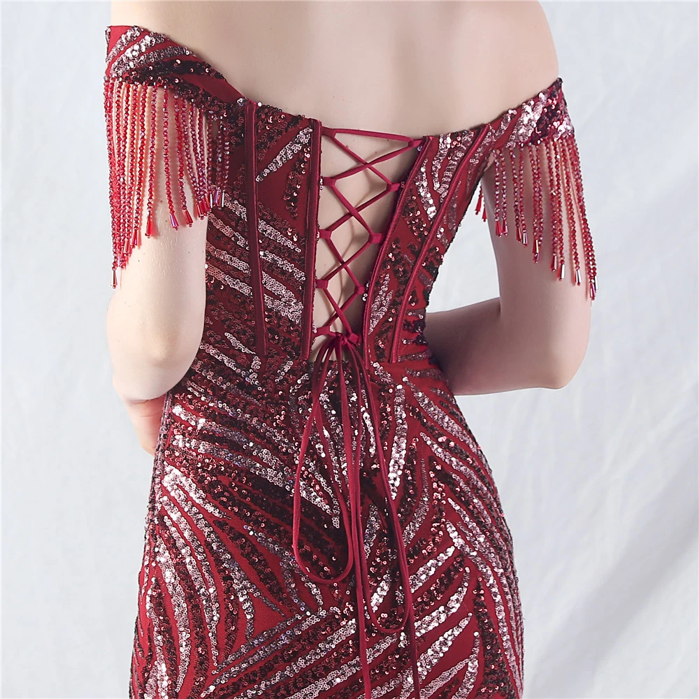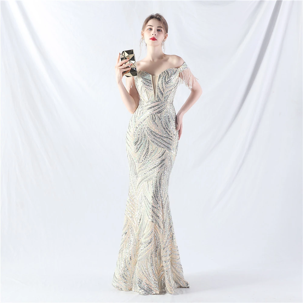 Palace Herringbone Waist Strap Heavy-Crafted Beaded High-End Evening Dress