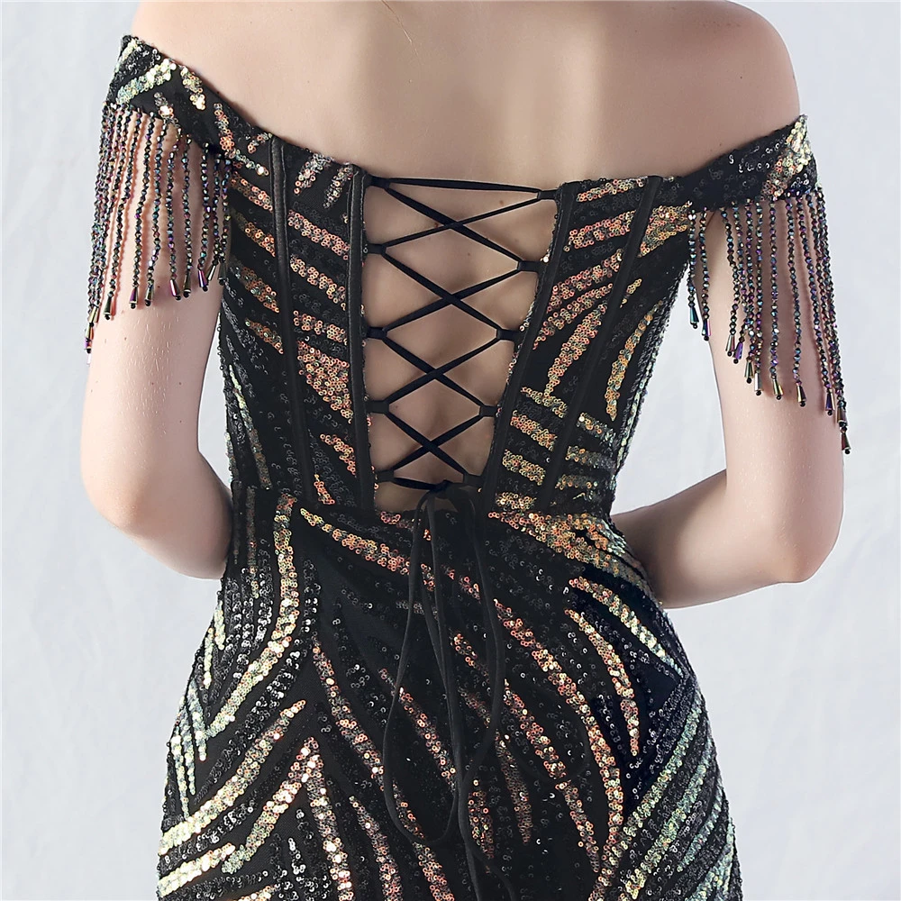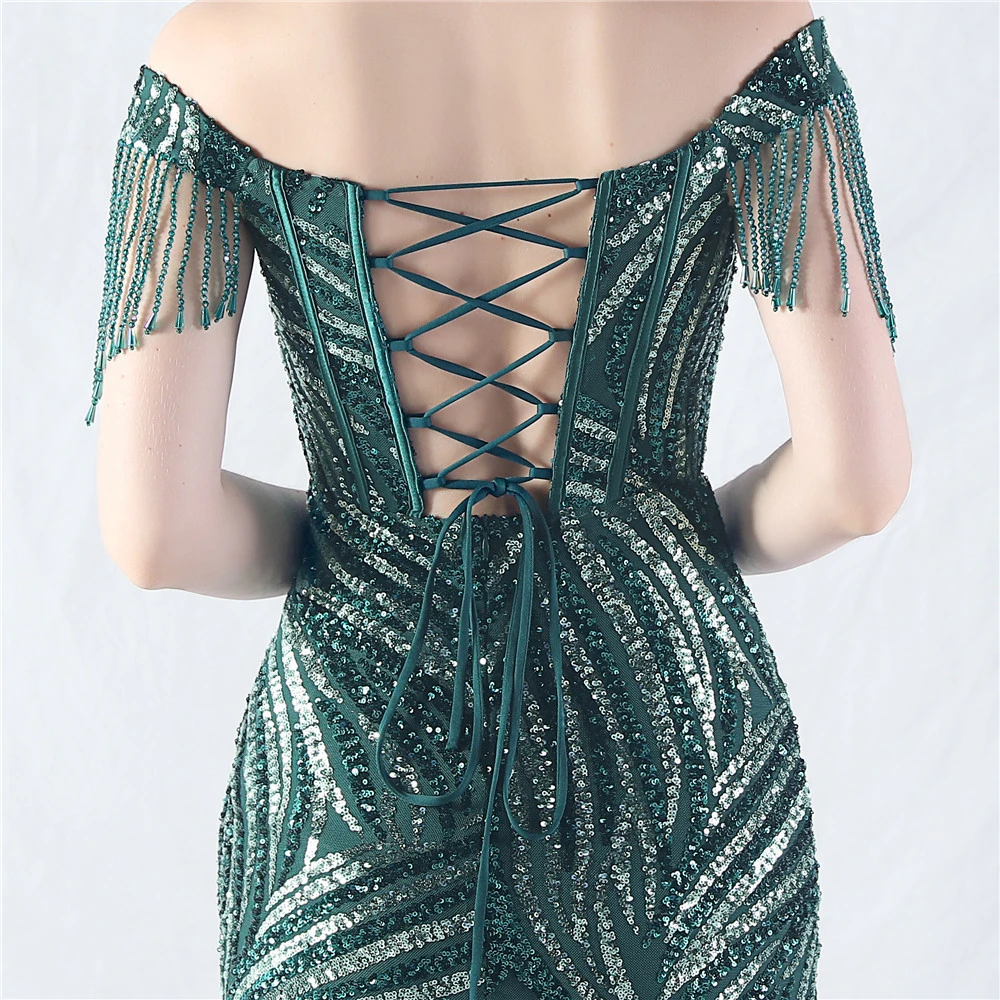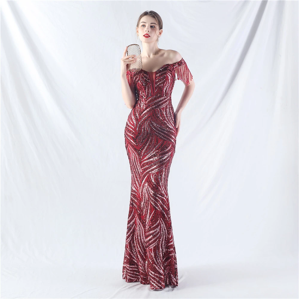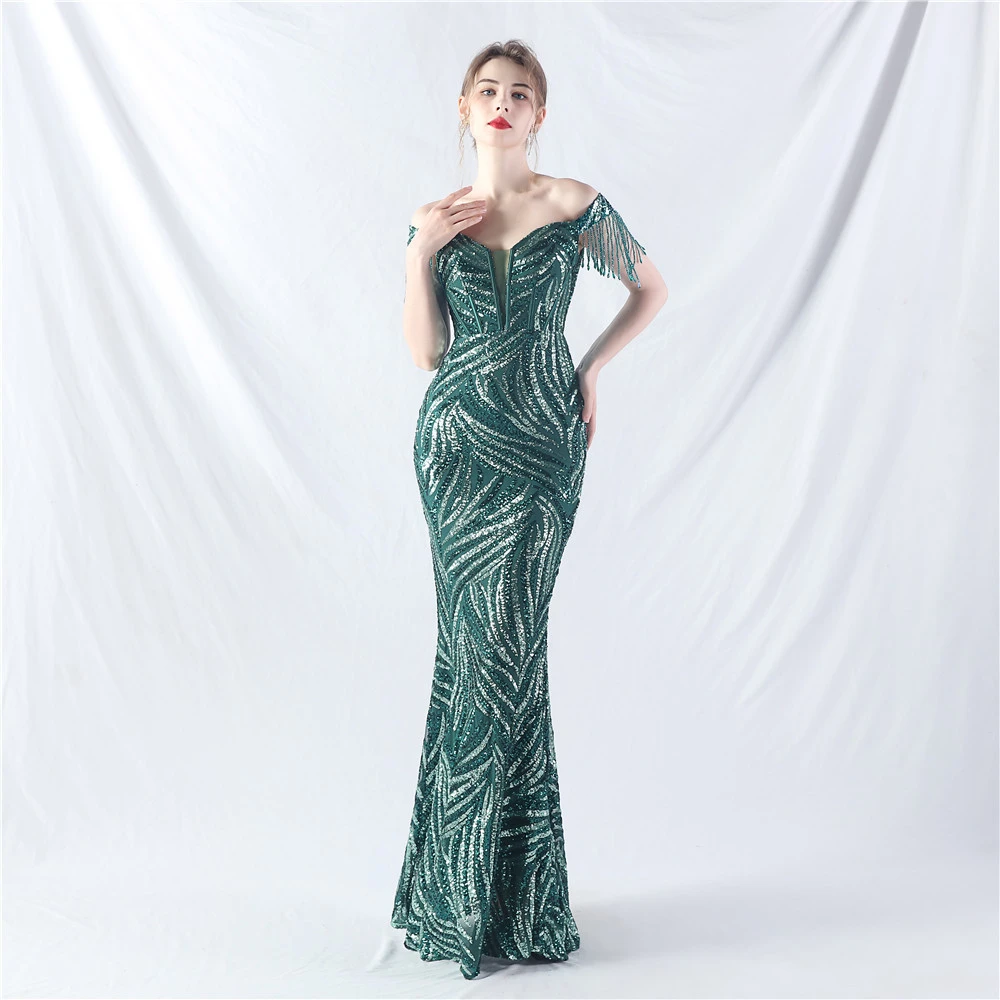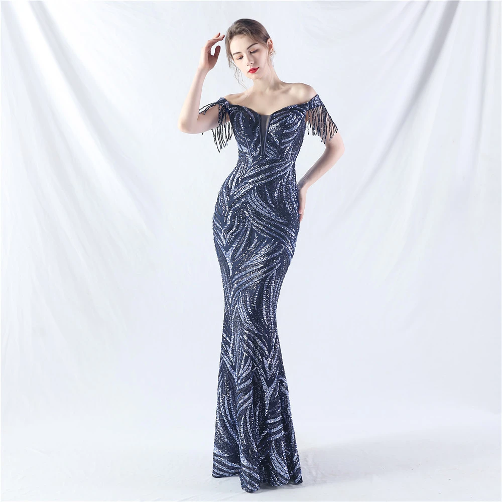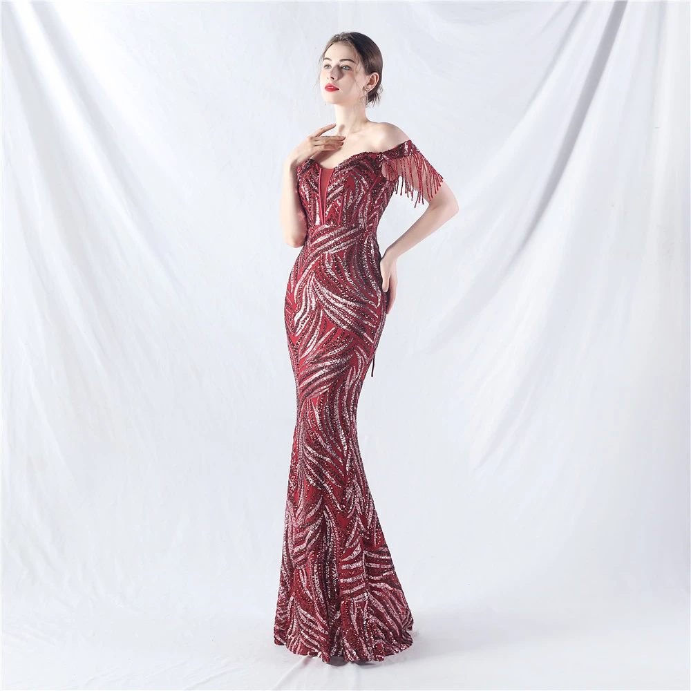 Palace Herringbone Waist Strap Heavy-Crafted Beaded High-End Evening Dress