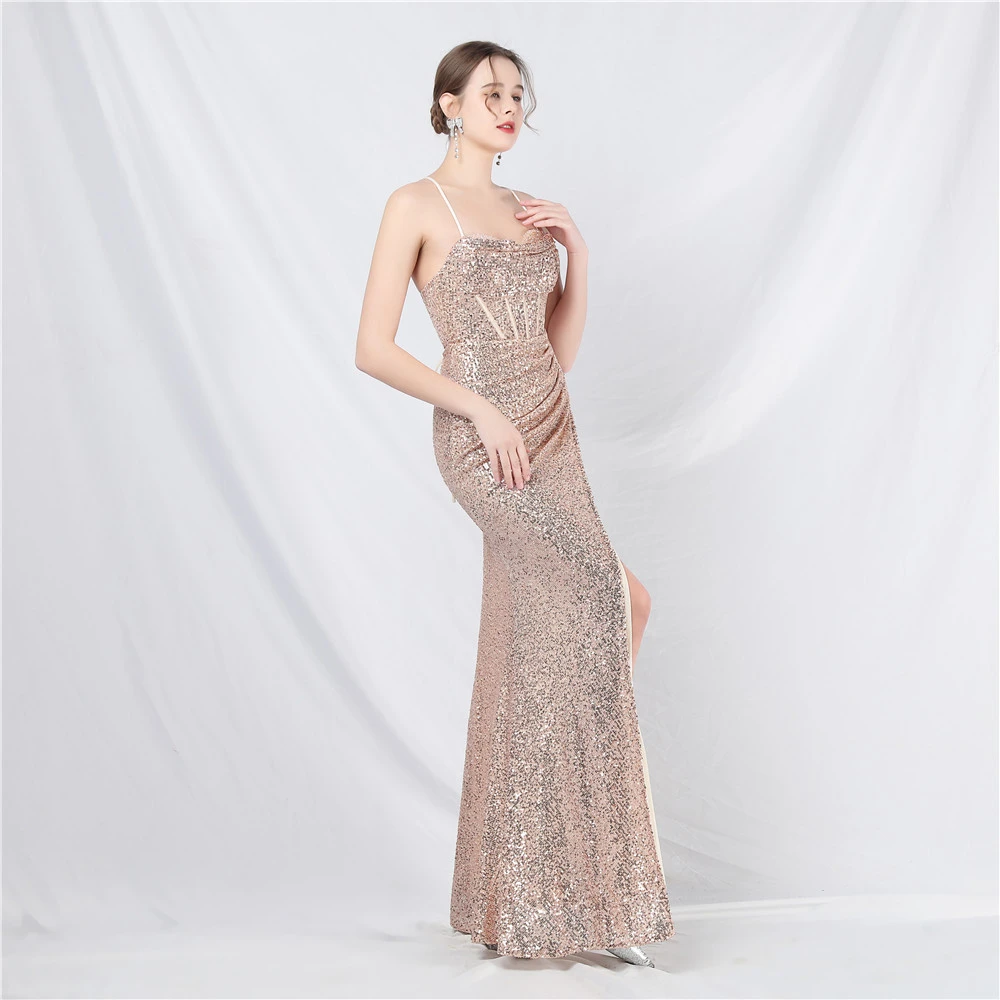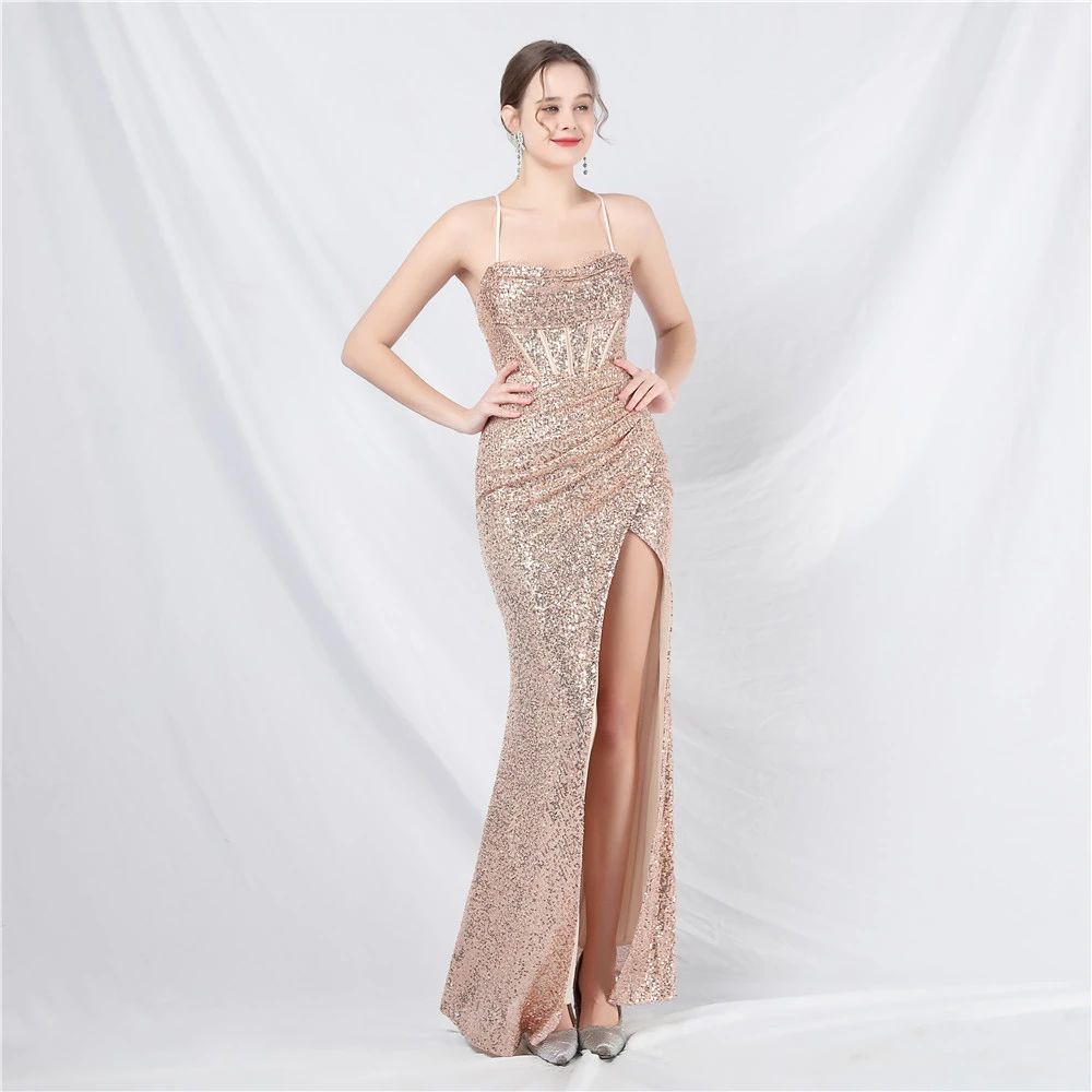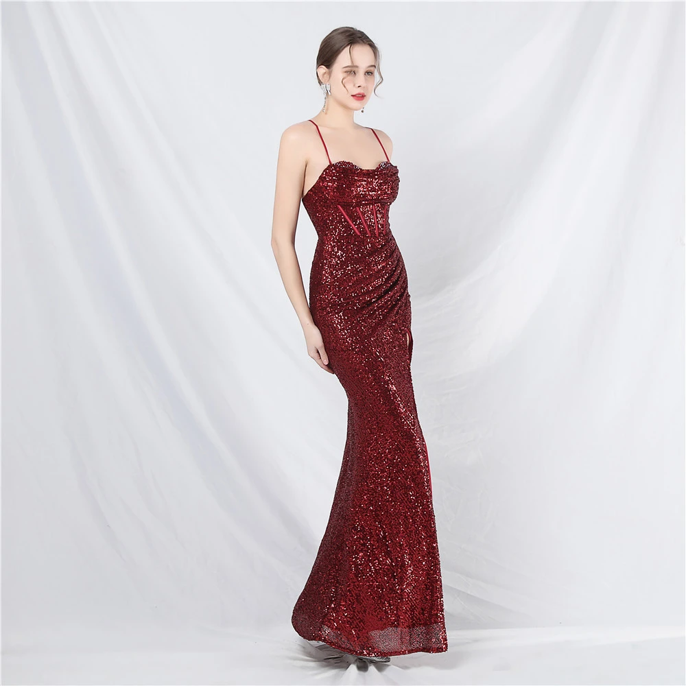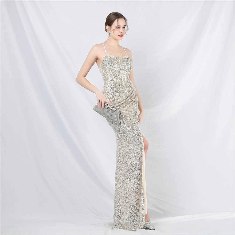 Palace Style Fishbone Waist Heavy Beading High-End Evening Dress