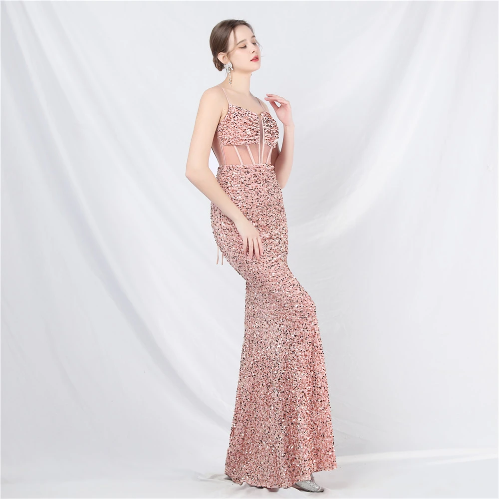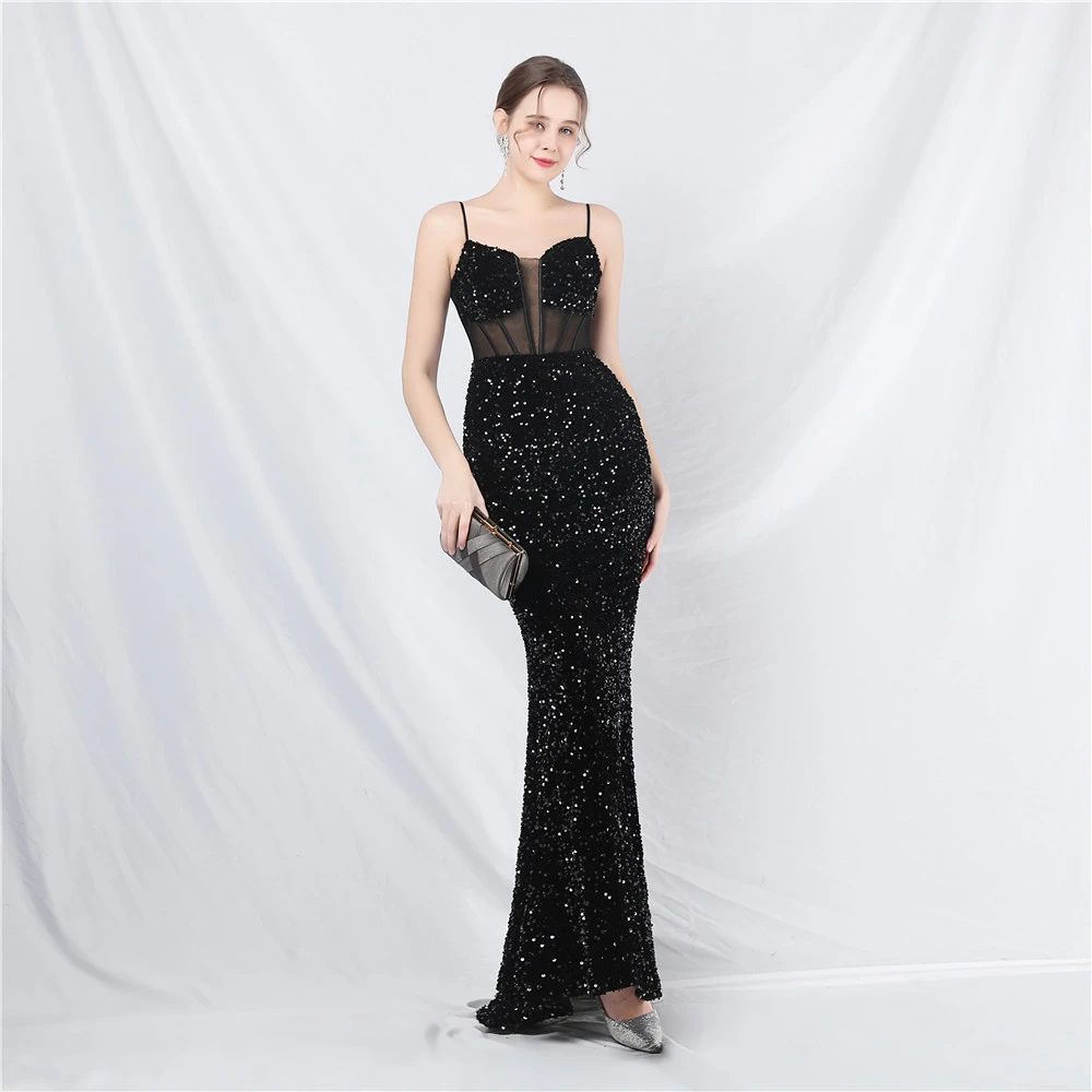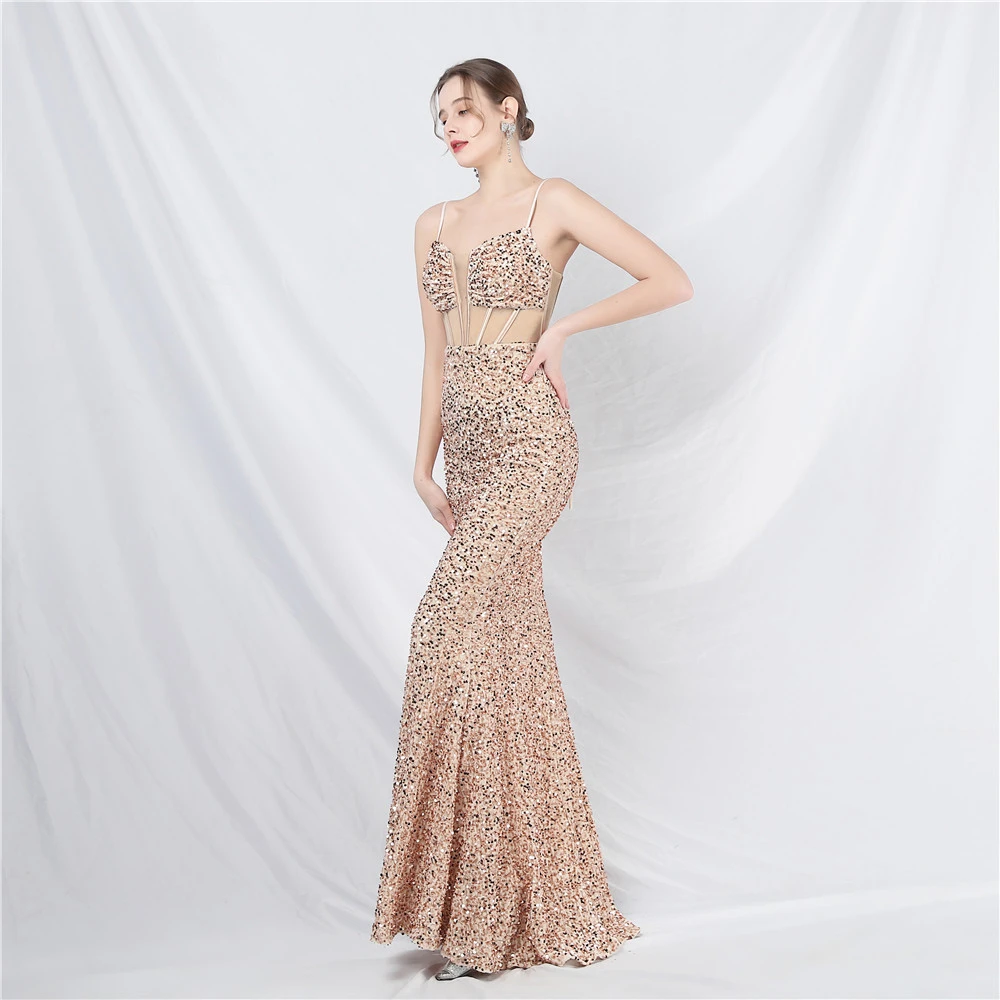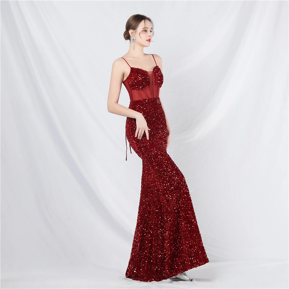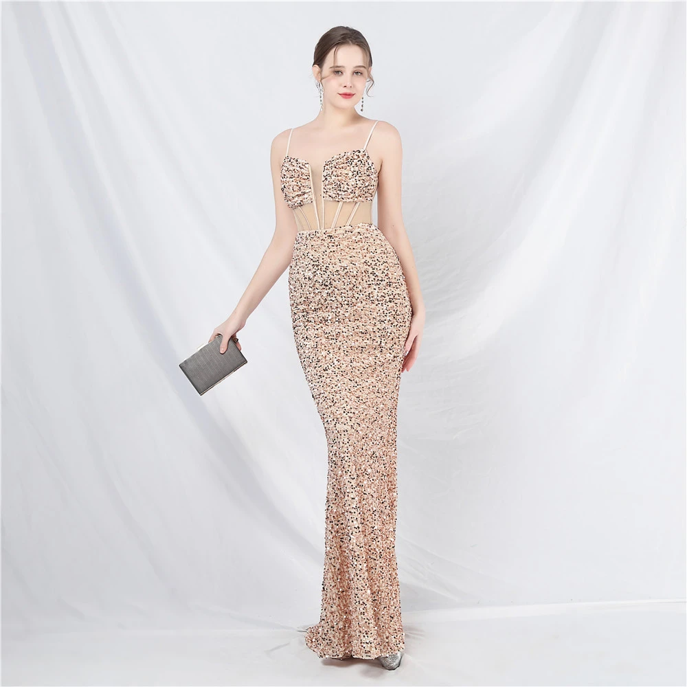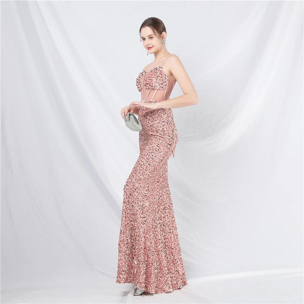 Palace Style Heavy Fishbone Waist Mesh Sequined High-End Evening Dress