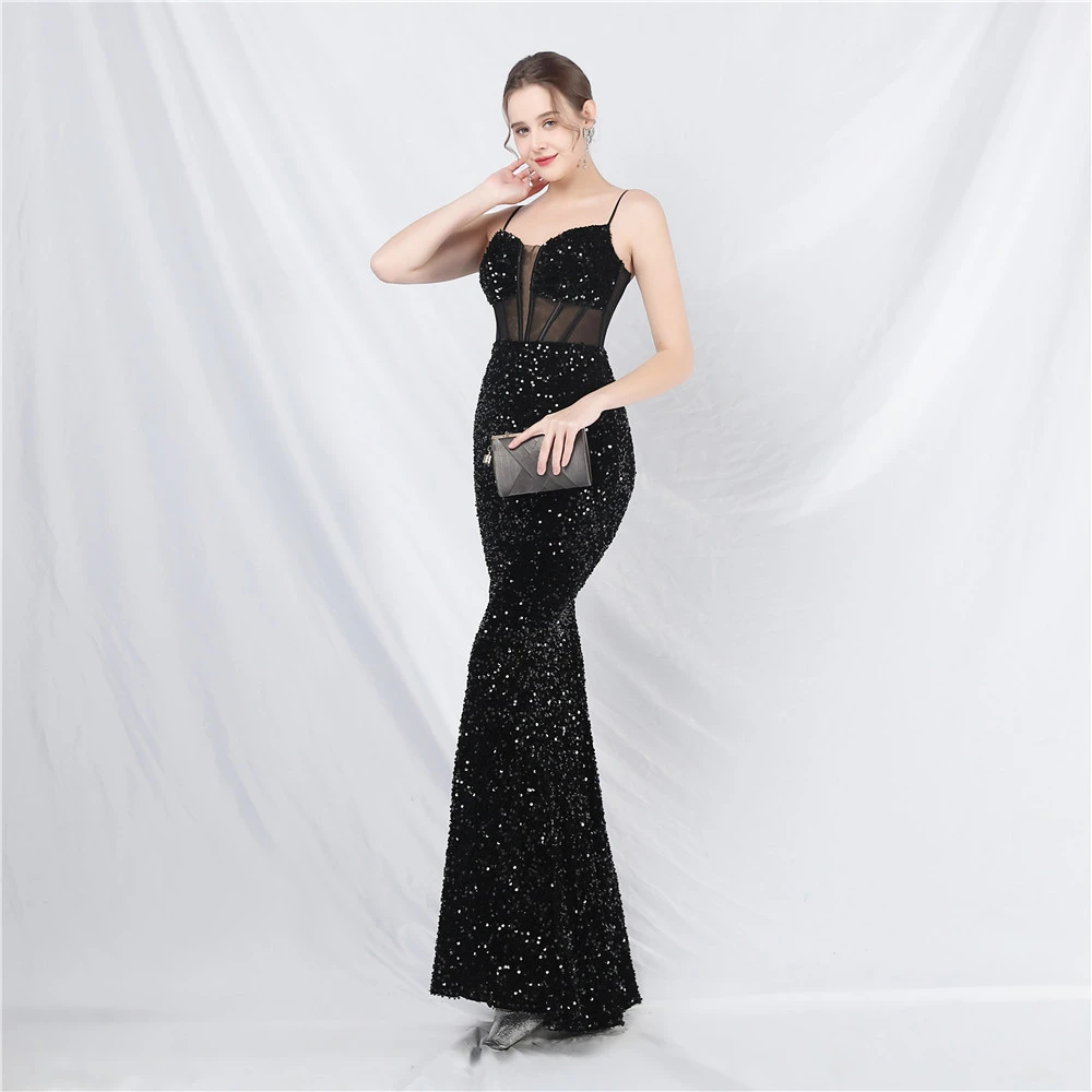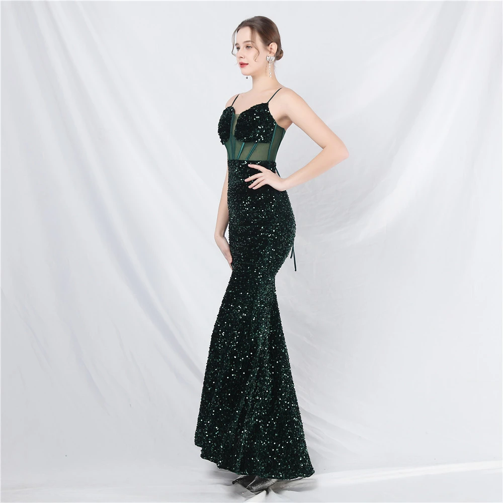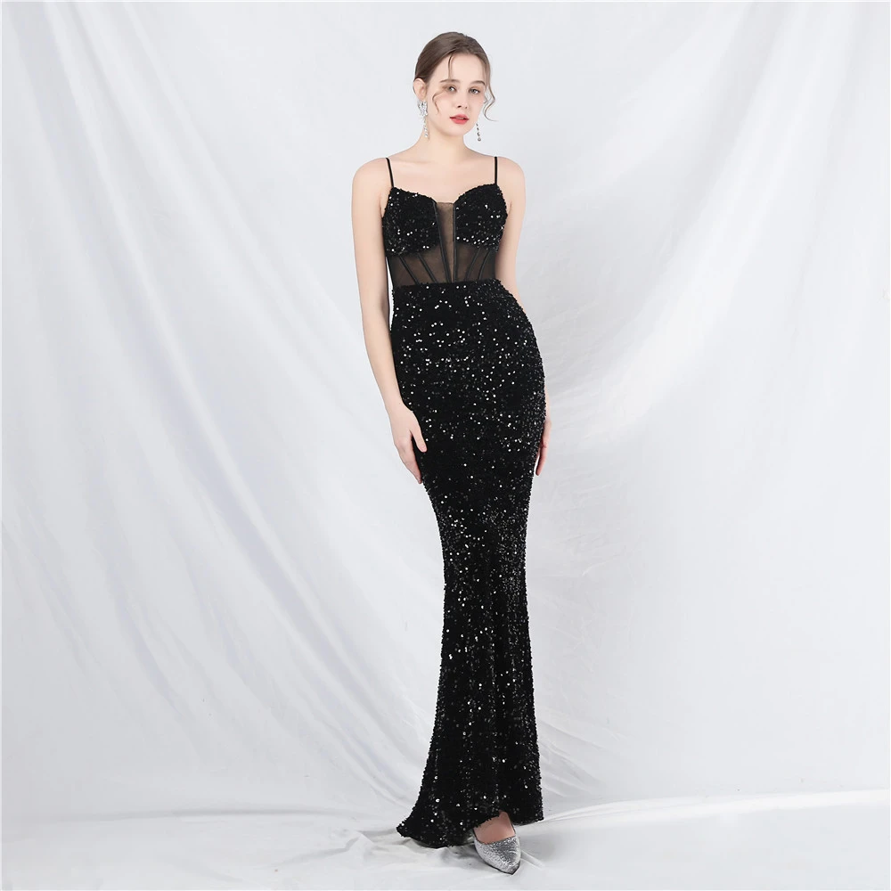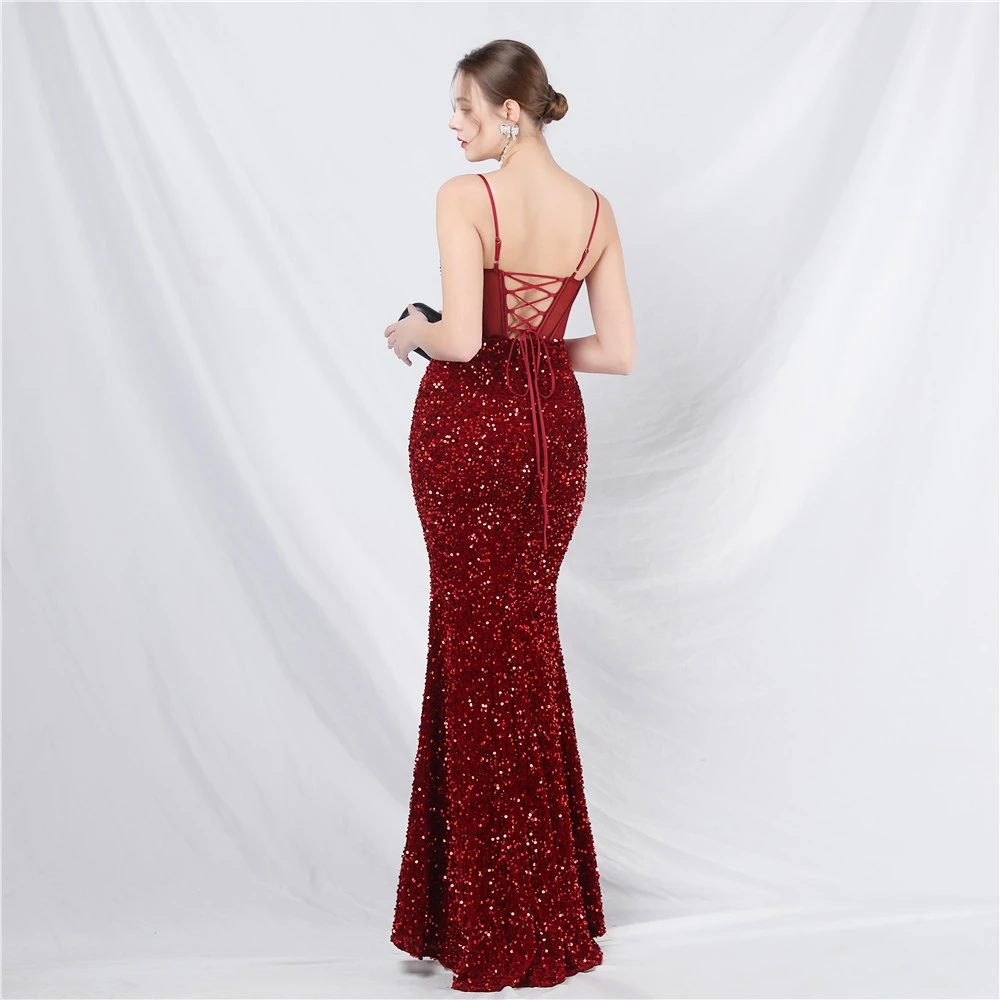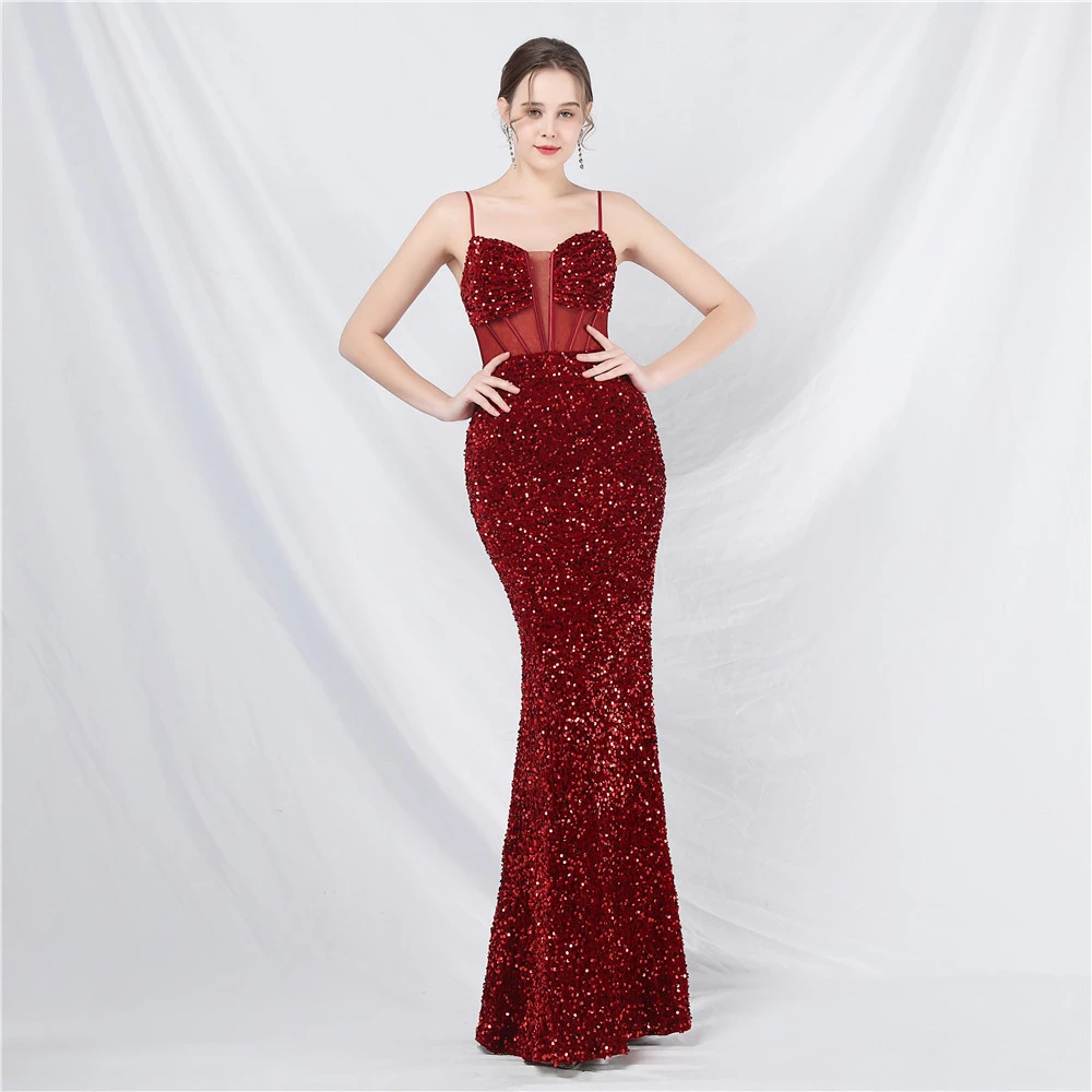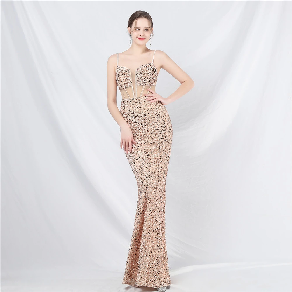 Palace Style Heavy Fishbone Waist Mesh Sequined High-End Evening Dress