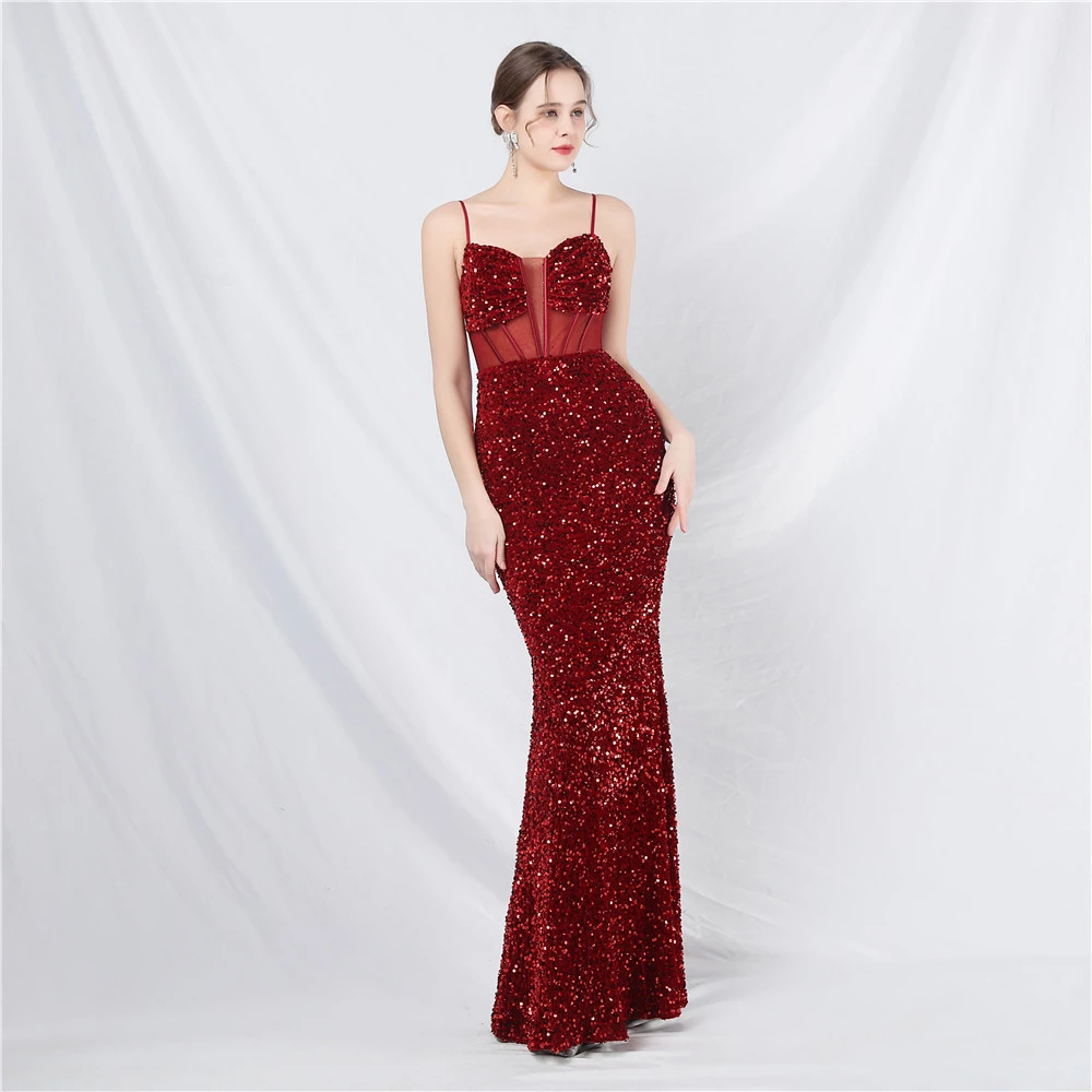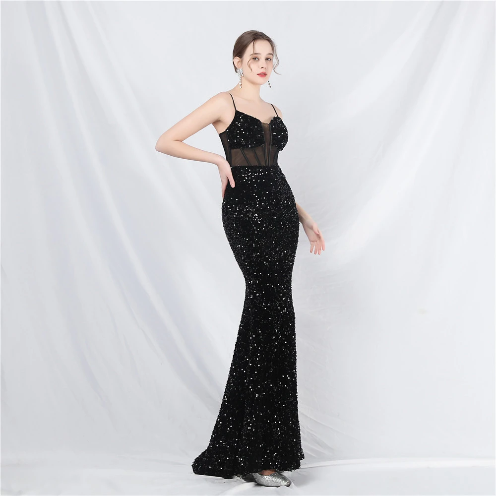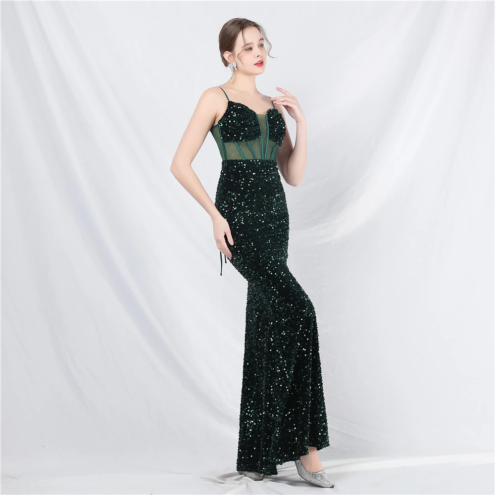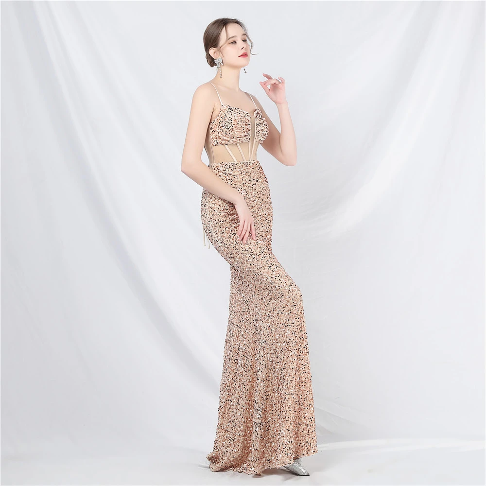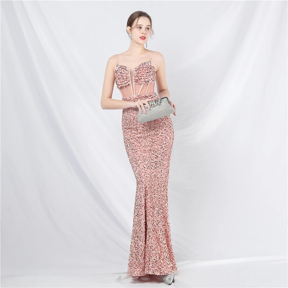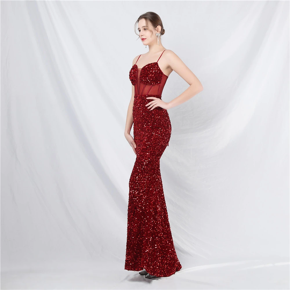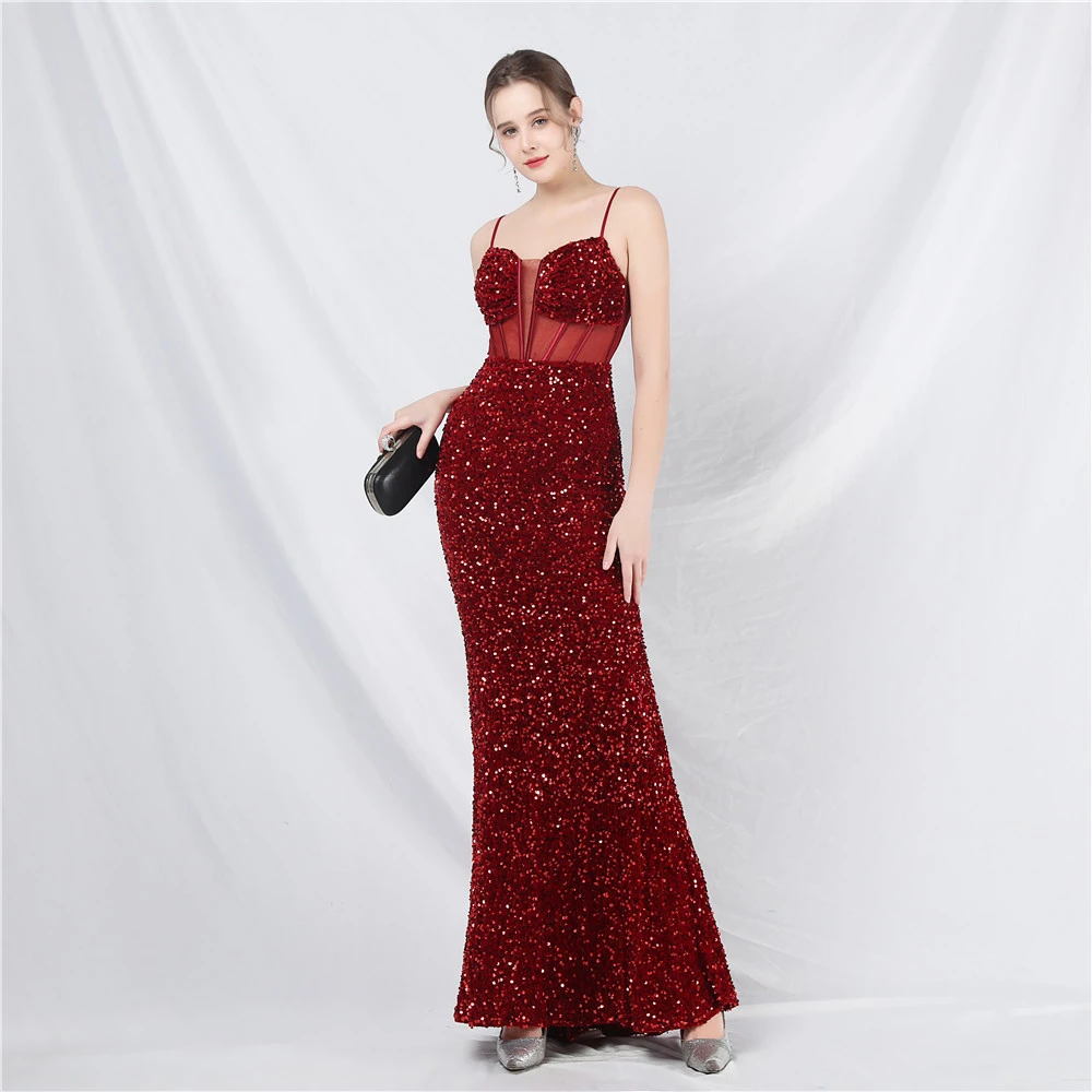 Palace Style Heavy Fishbone Waist Mesh Sequined High-End Evening Dress