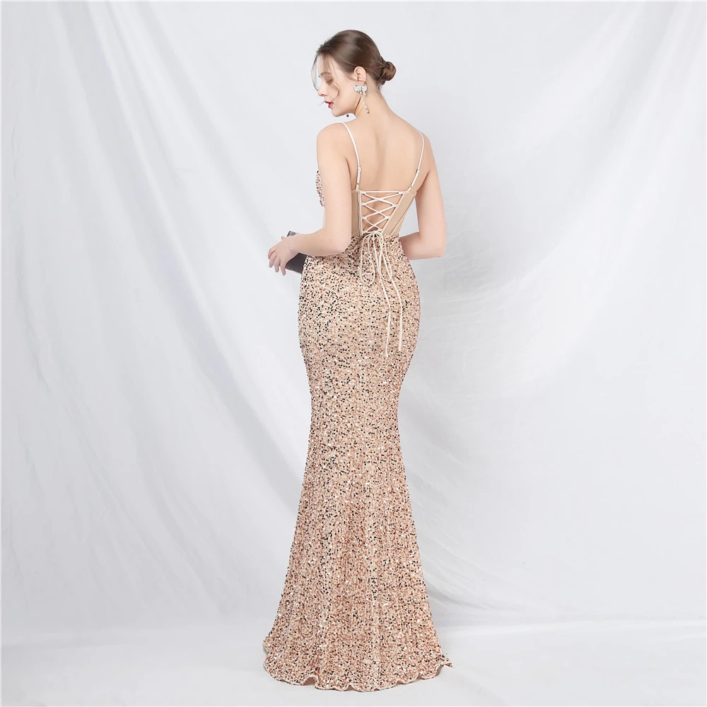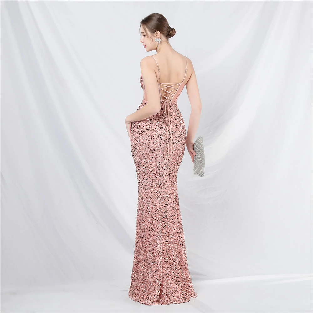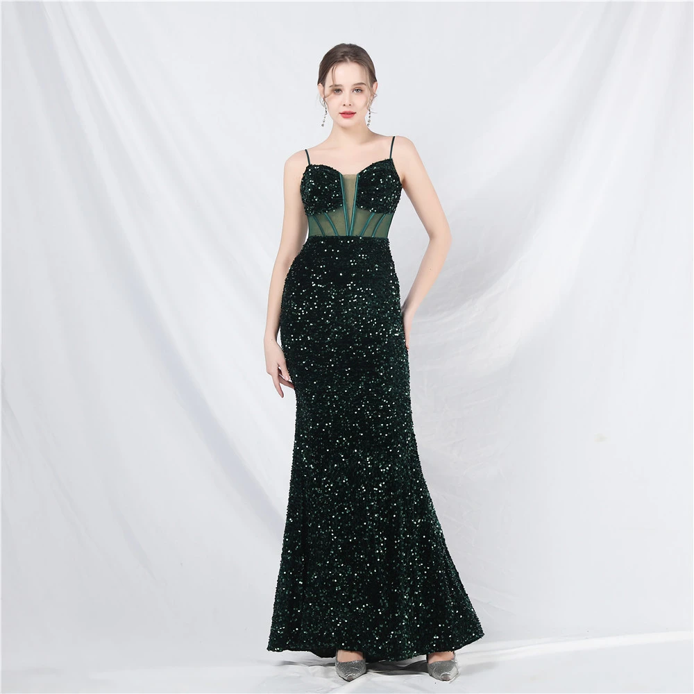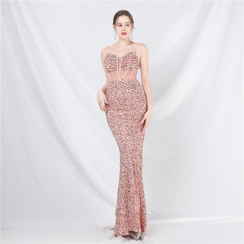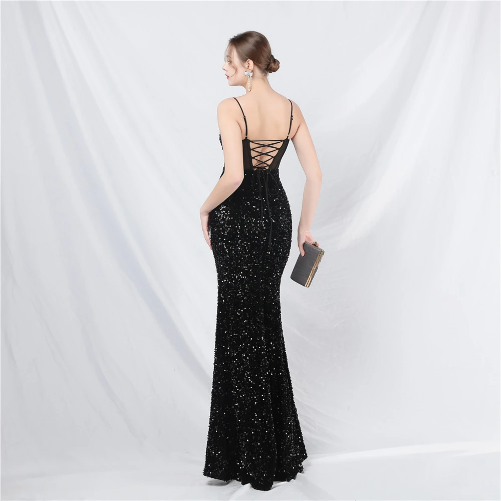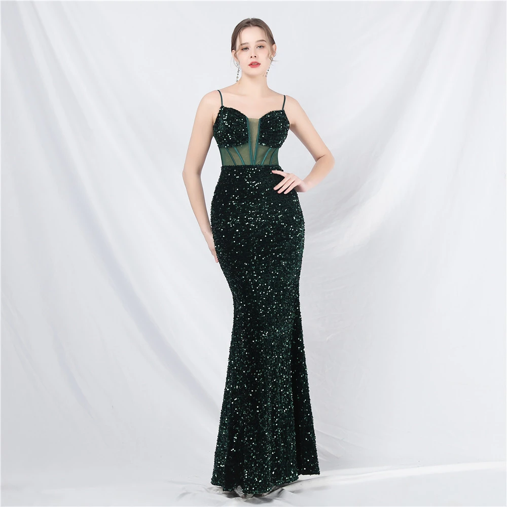 Palace Style Heavy Fishbone Waist Mesh Sequined High-End Evening Dress