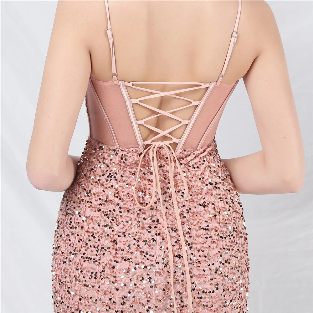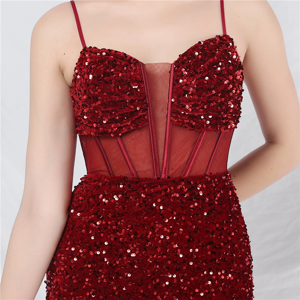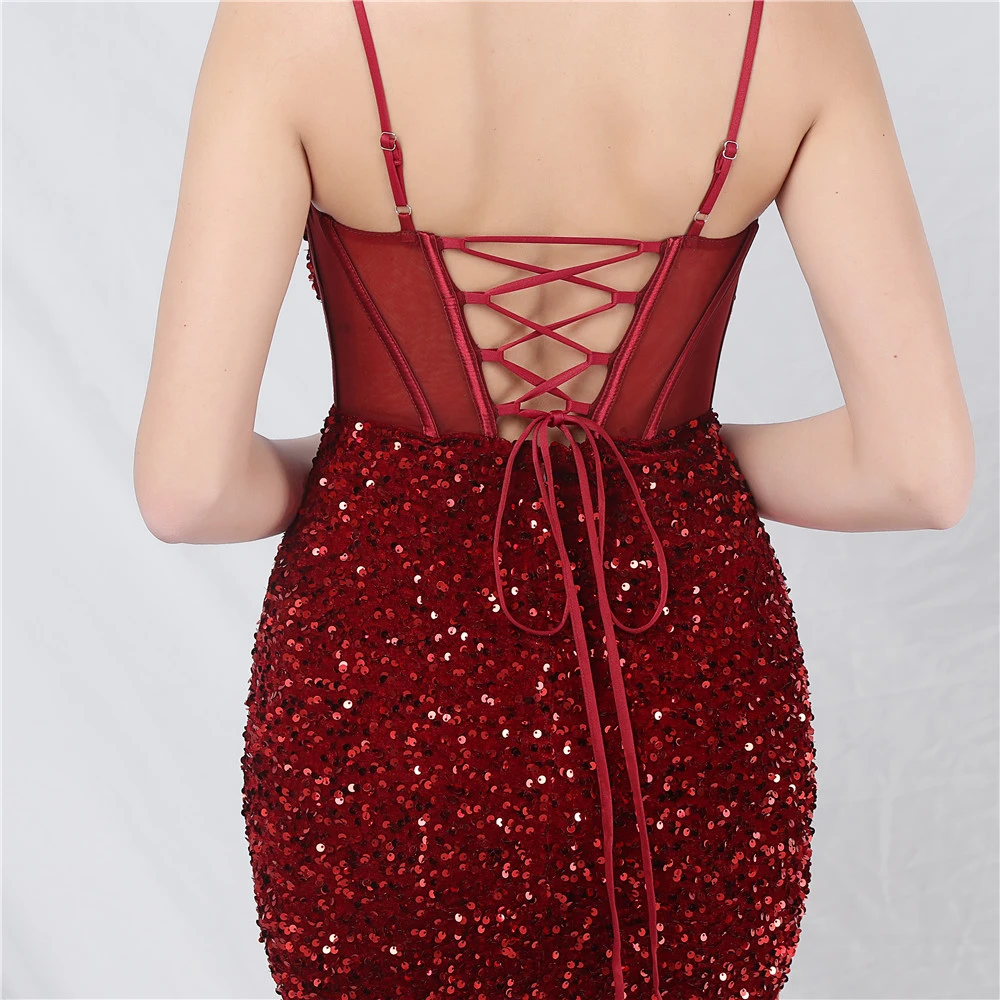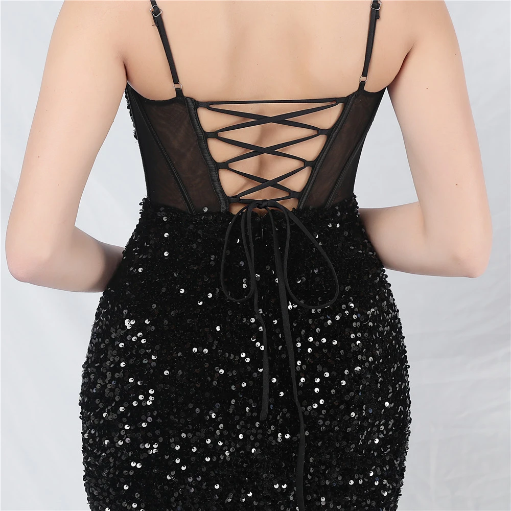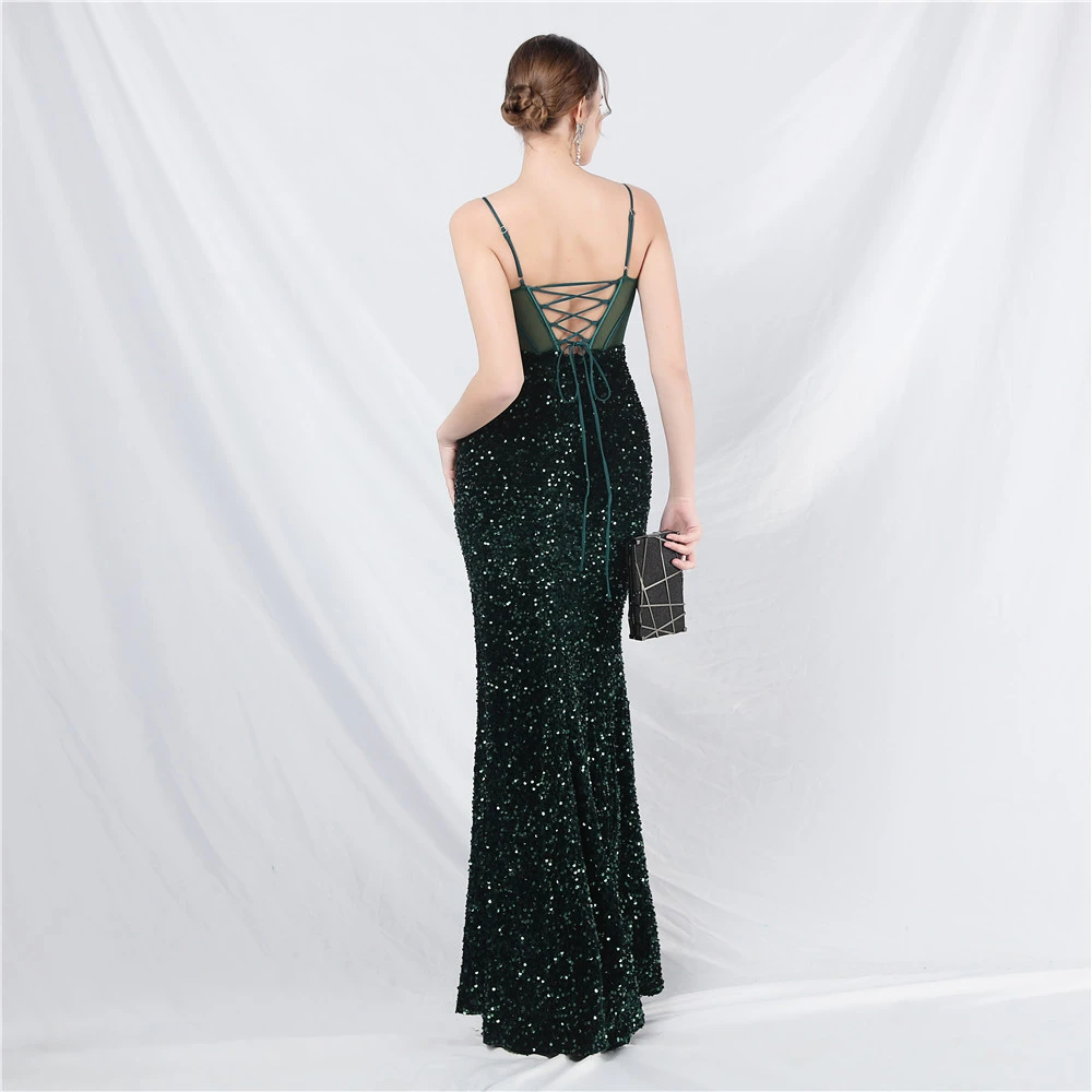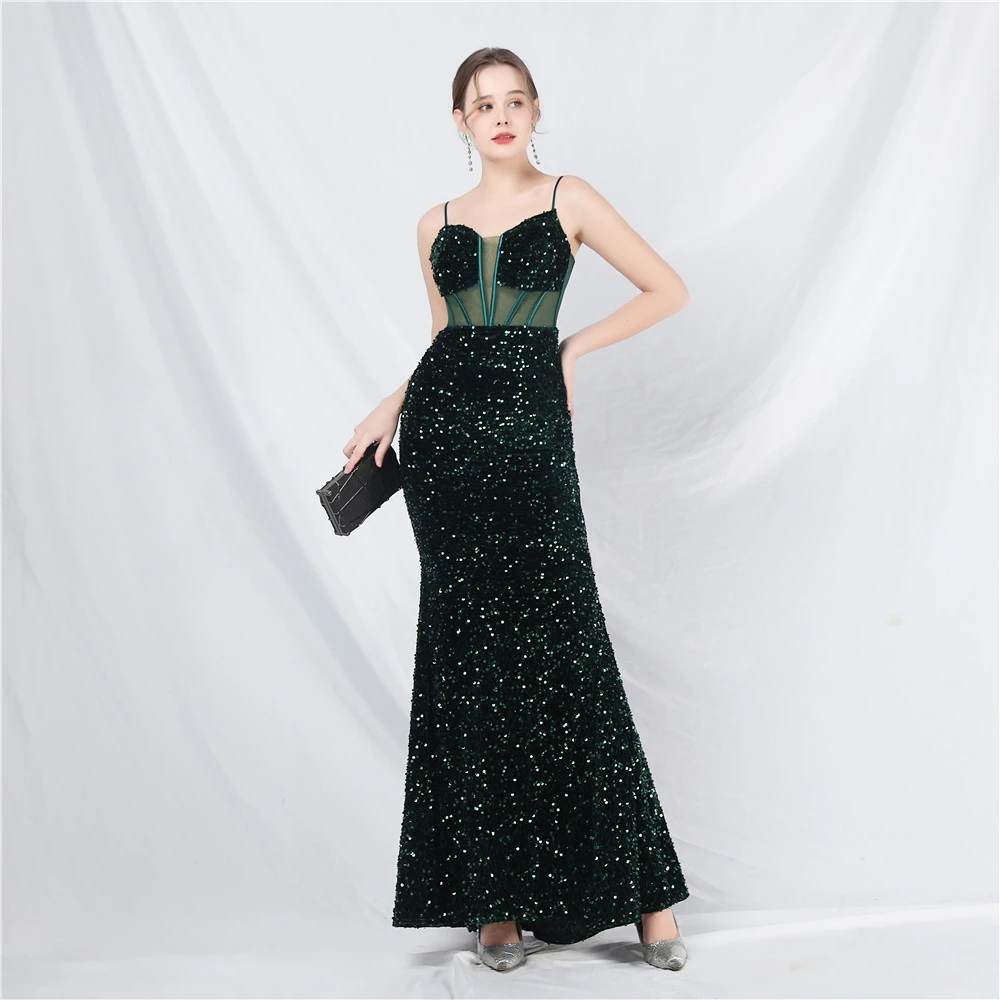 Palace Style Heavy Fishbone Waist Mesh Sequined High-End Evening Dress