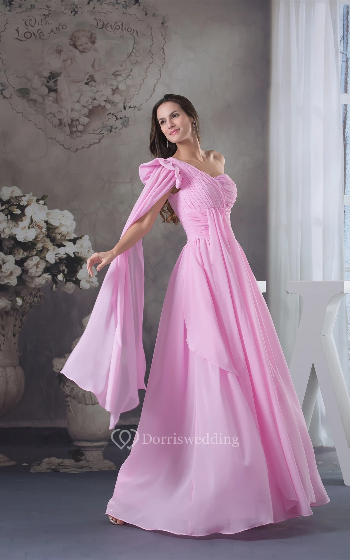 Pastel Chiffon Asymmetrical Pleats and Dress With Ruching
