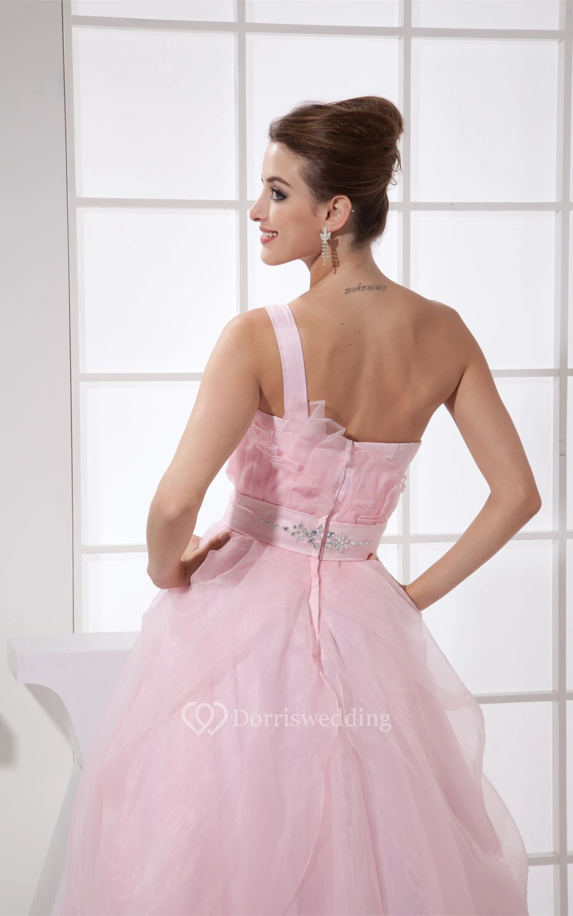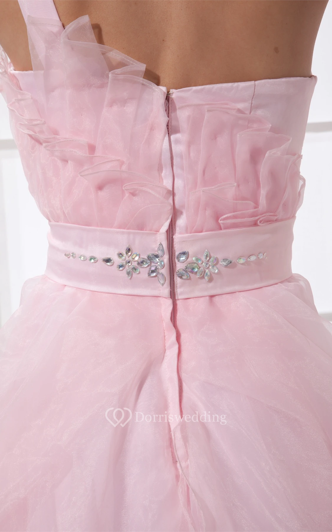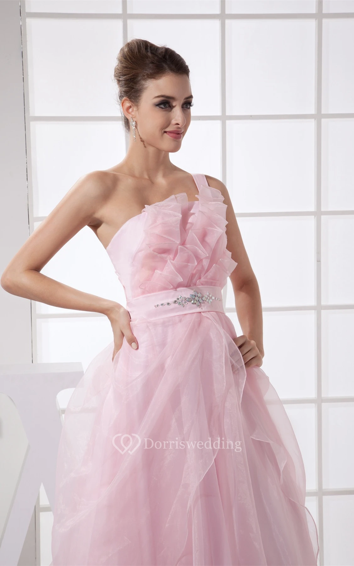 Pastel Ruffled A-Line Tulle Single Strap and Dress With Jeweled Waist
