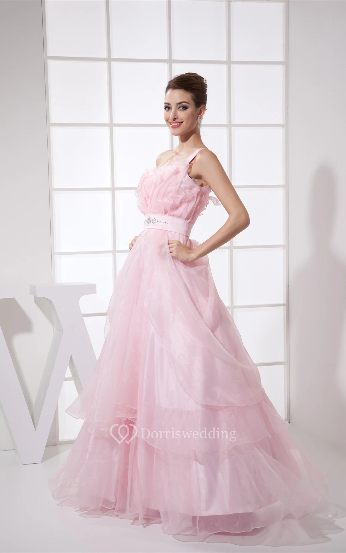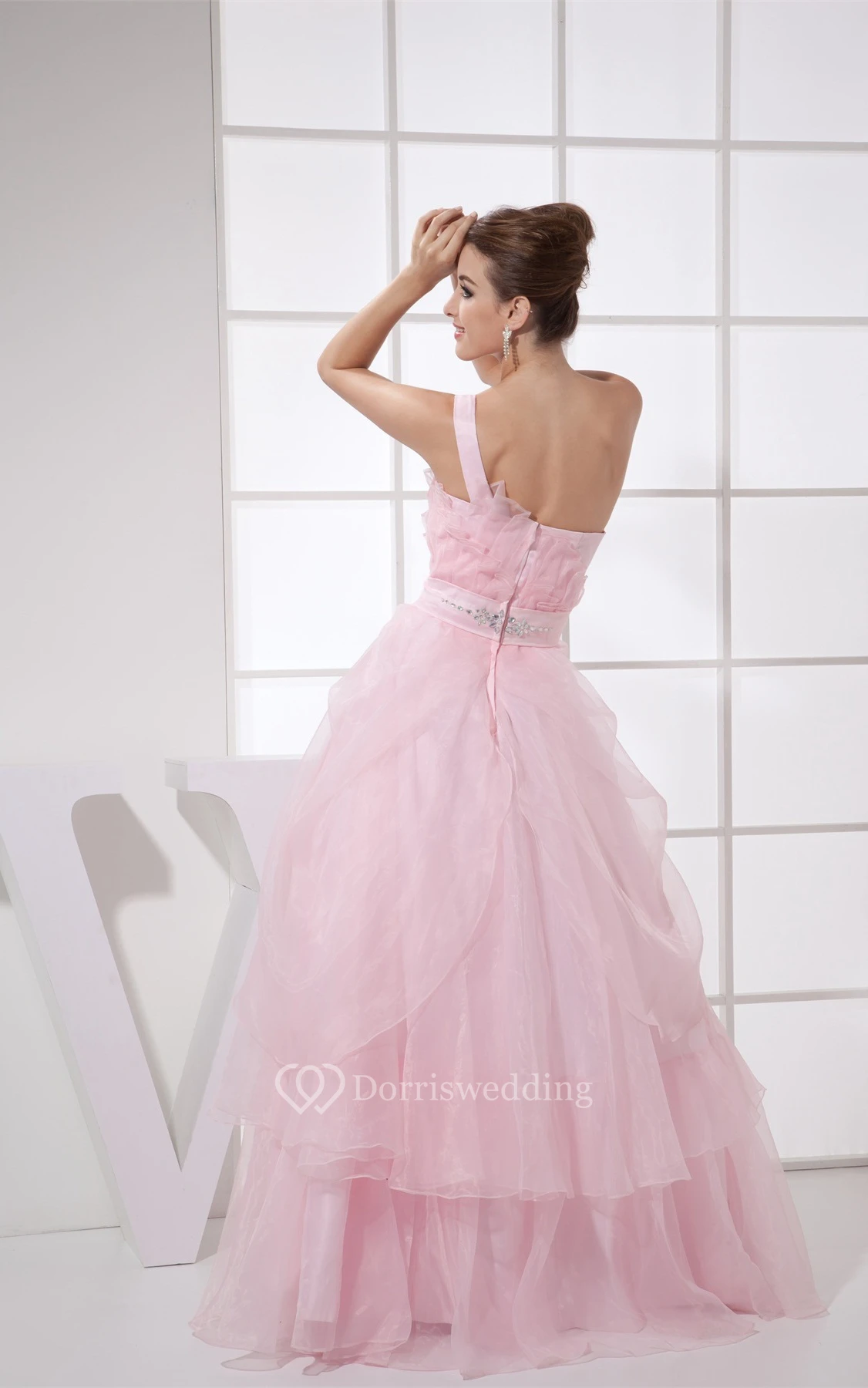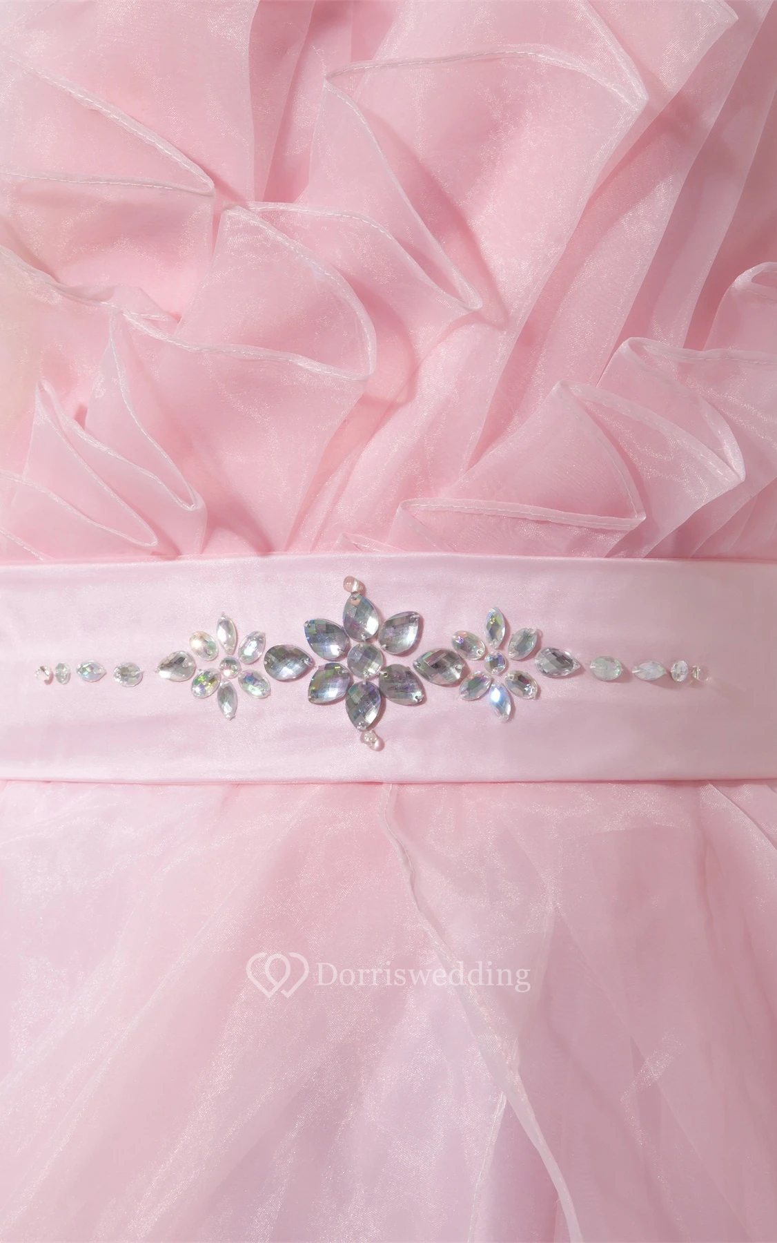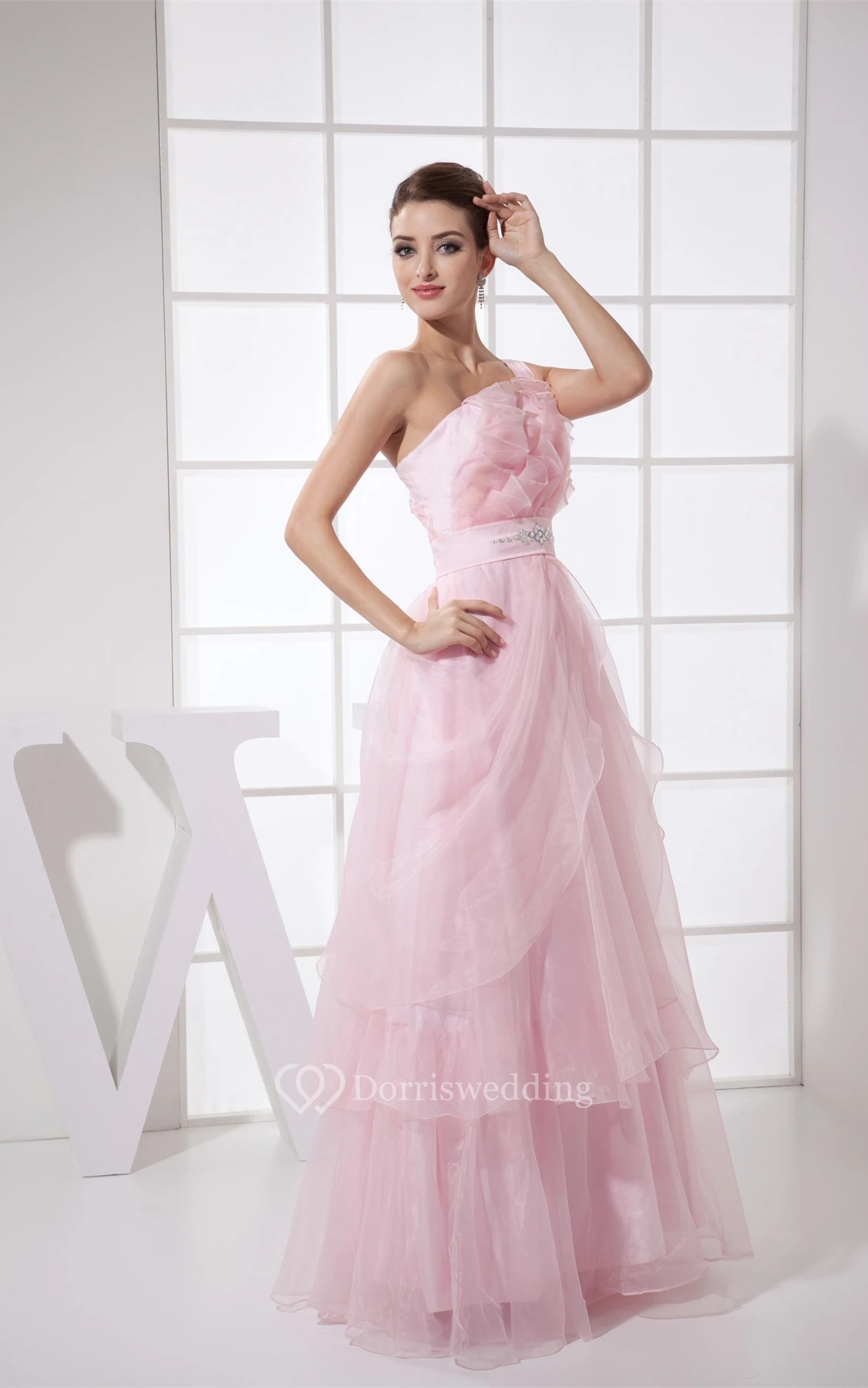 Pastel Ruffled A-Line Tulle Single Strap and Dress With Jeweled Waist