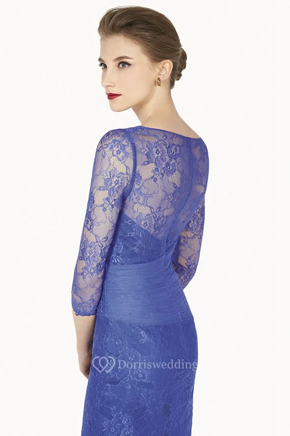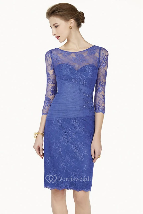 Pencil Appliqued Scoop-Neck 3-4-Sleeve Midi Lace Prom Dress