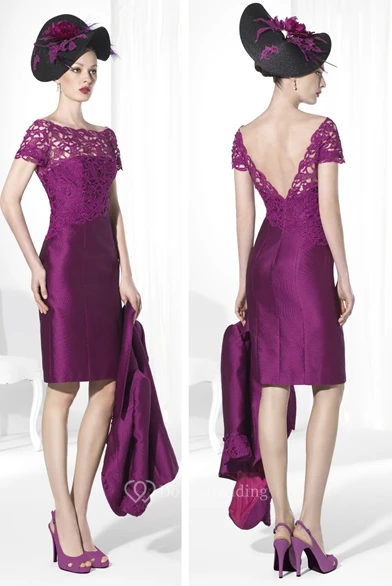 Pencil Knee-Length Half-Sleeve Jacket Satin&Lace Prom Dress