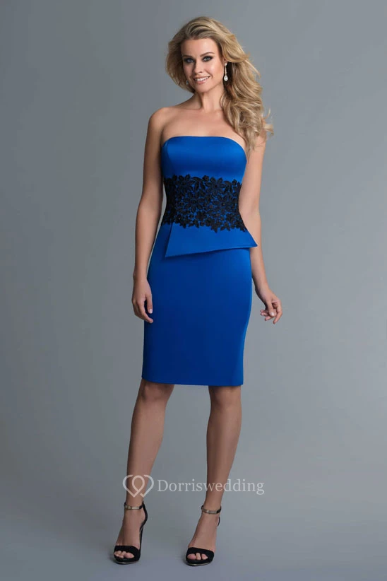 Pencil Knee-Length Strapless Satin Zipper Dress With Appliques And Split Back