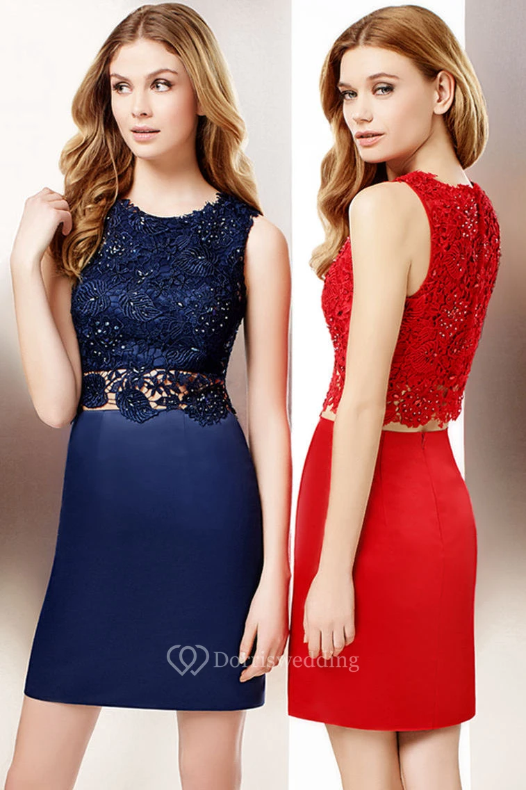 Pencil Short Beaded Sleeveless Scoop Neck Satin Cocktail Dress With Appliques