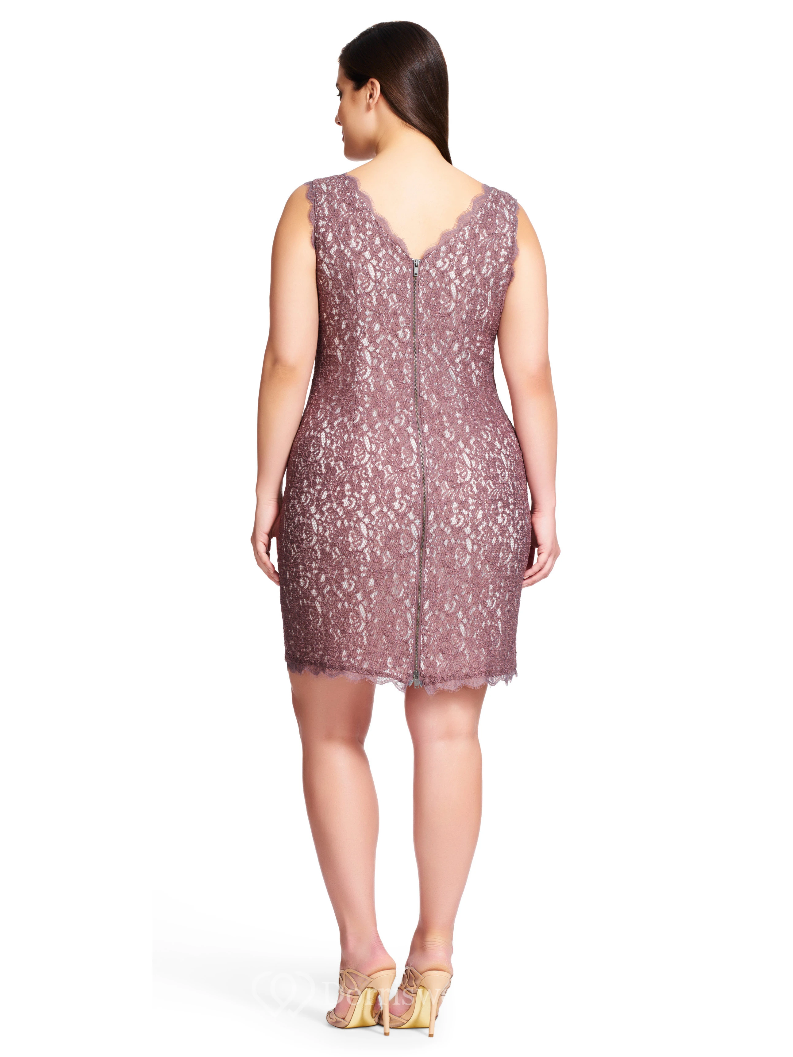 Pencil Short Sleeveless Bateau-Neck Lace Bridesmaid Dress With Zipper