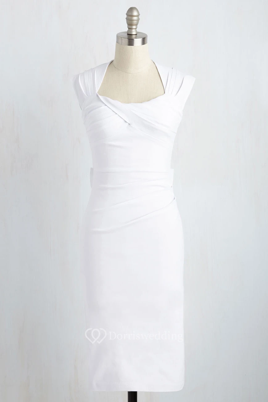 Pencil Sleeveless Knee-Length V-Neck Chiffon Wedding Dress With Ruching And Split Back