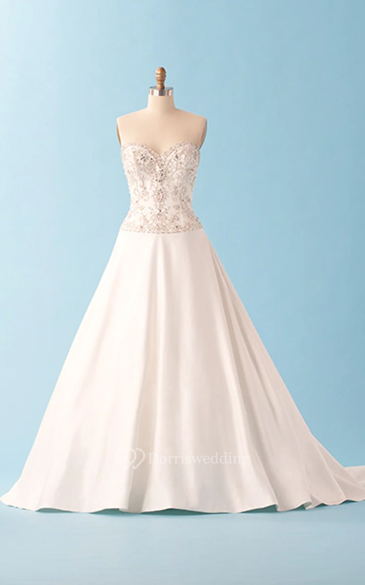 Perfect Beaded Corset Satin Gown With Sweep Train