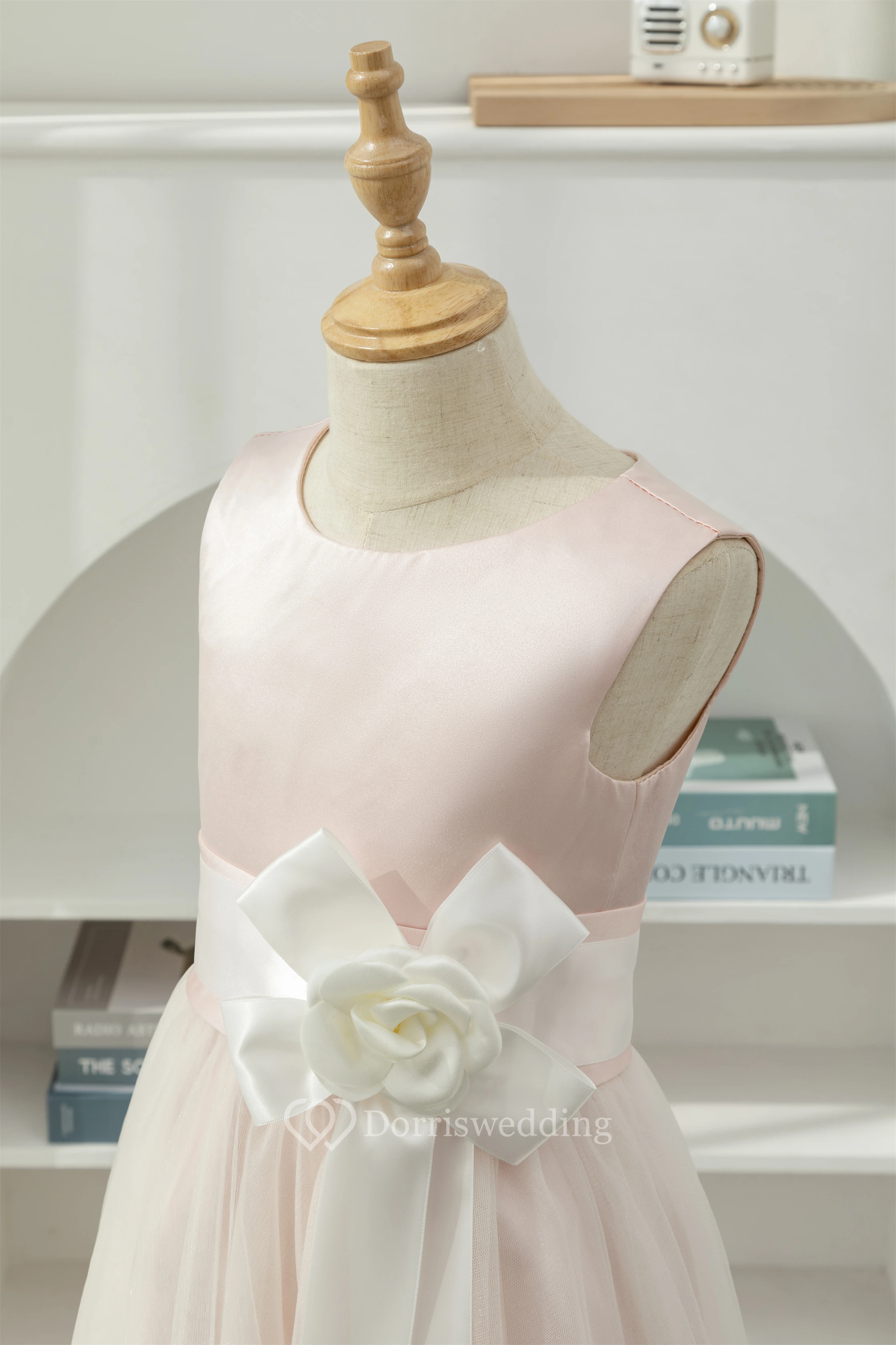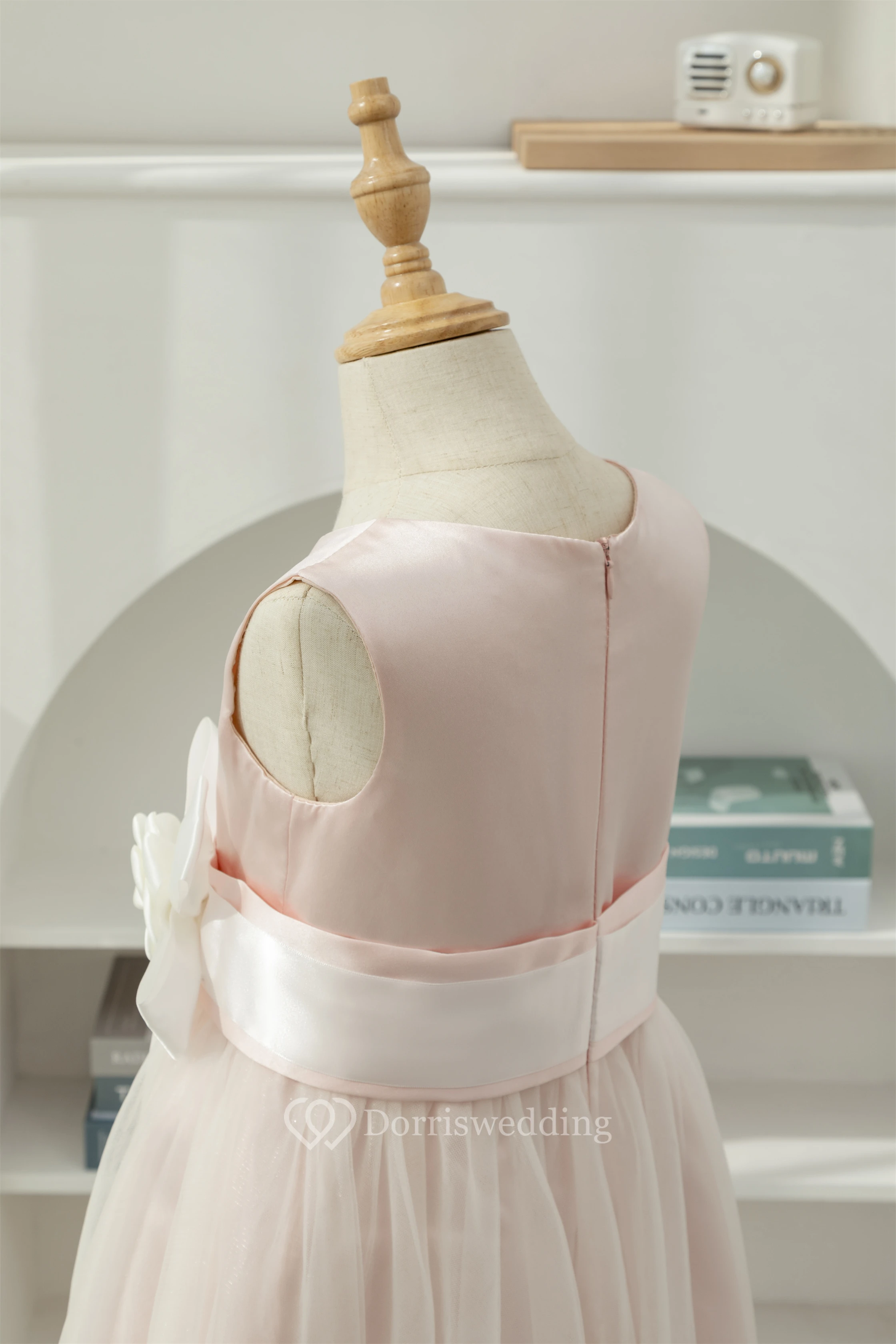 Petal Scoop Sleeveless A-line Tulle Flowergirl Dress