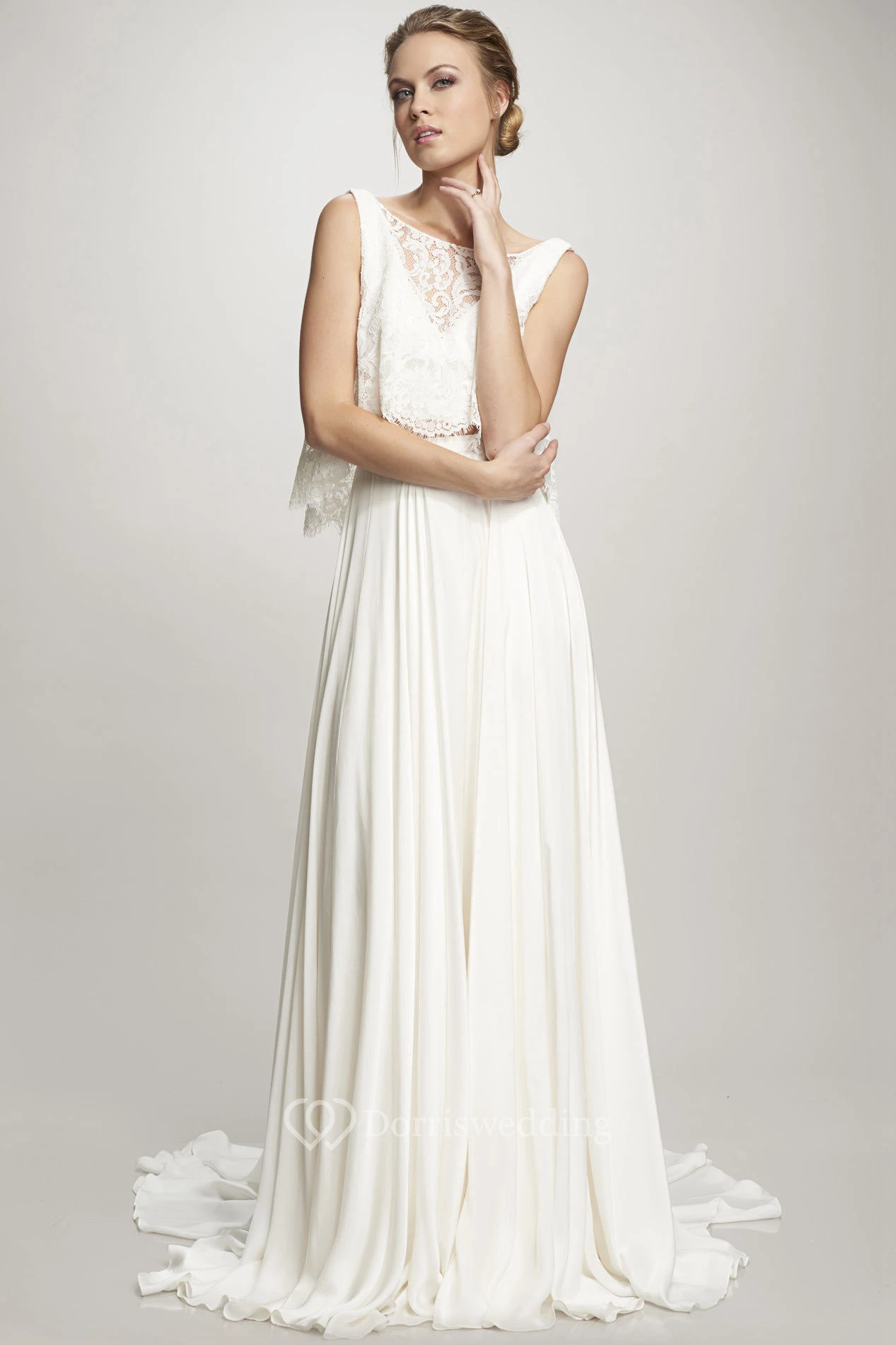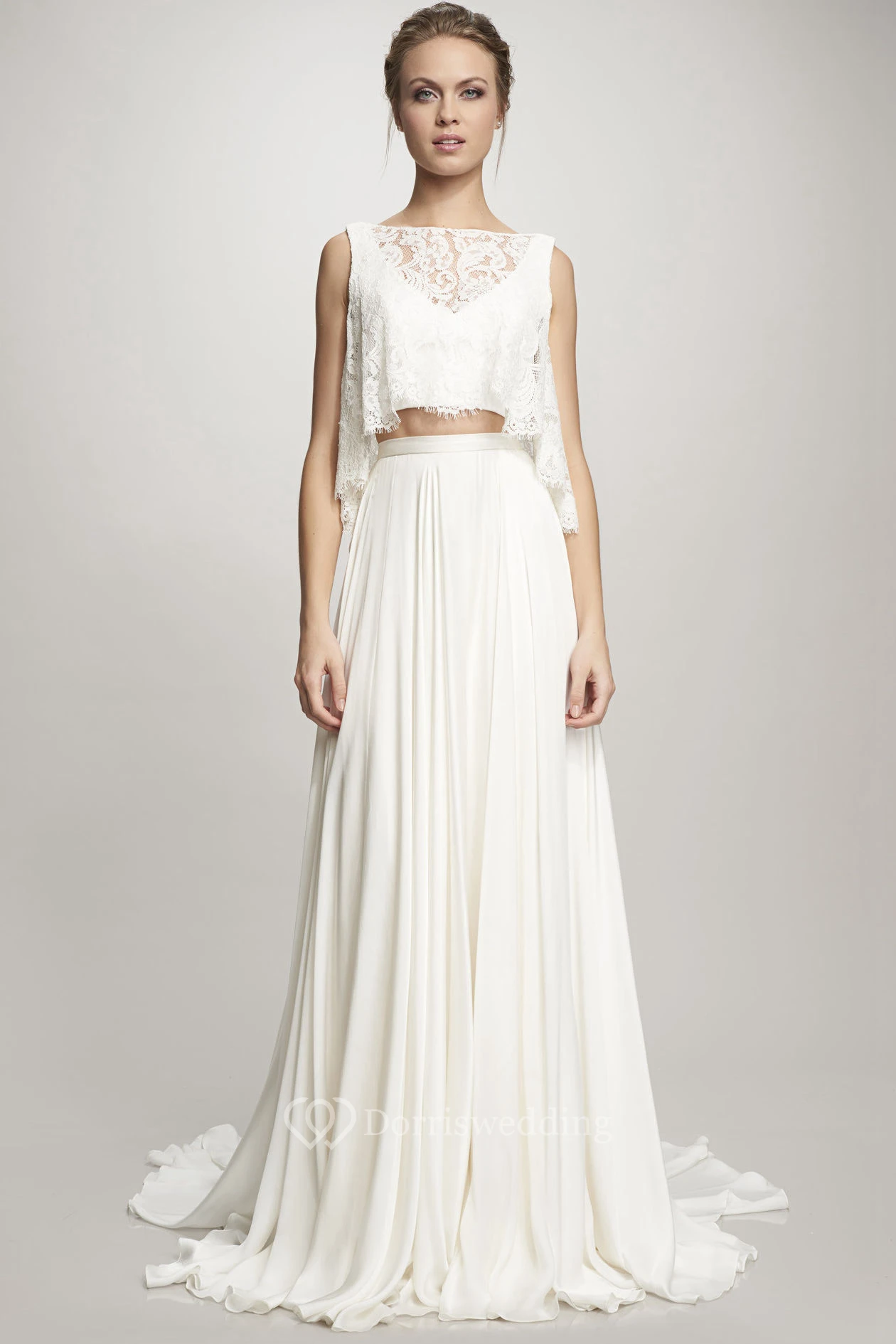 Pleated High Neck Sleeveless Chiffon Wedding Dress