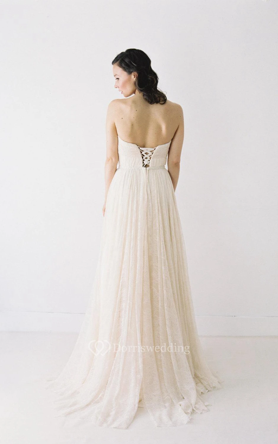 Pleated Lace Sweetheart A-Line Gown With Lace-Up Back
