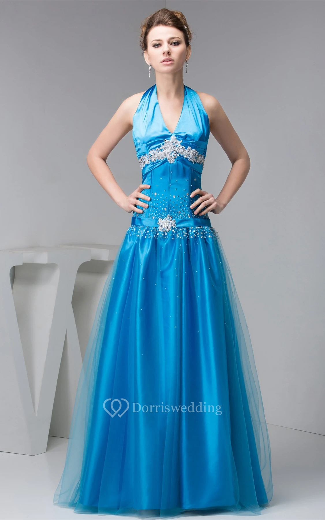 Plunged A-Line Sleeveless Broach and Dress With Beading