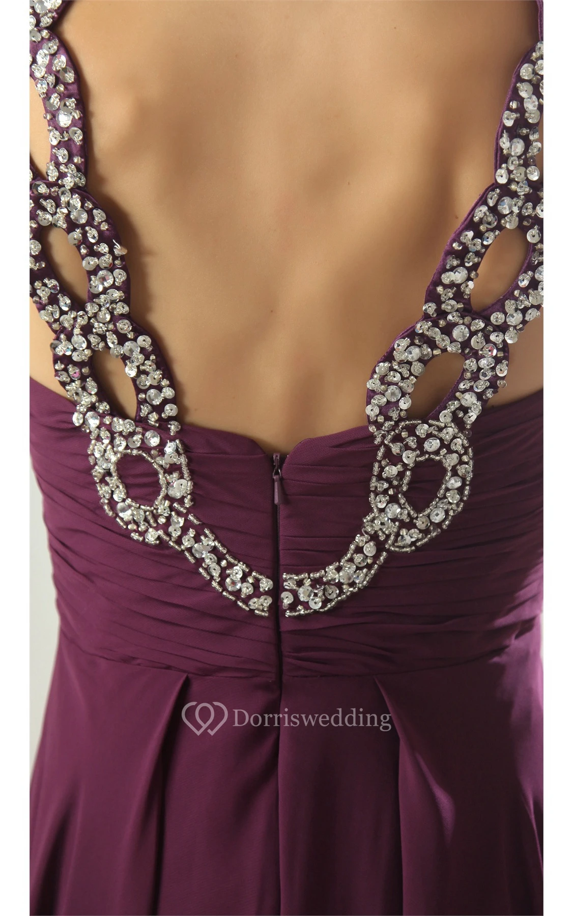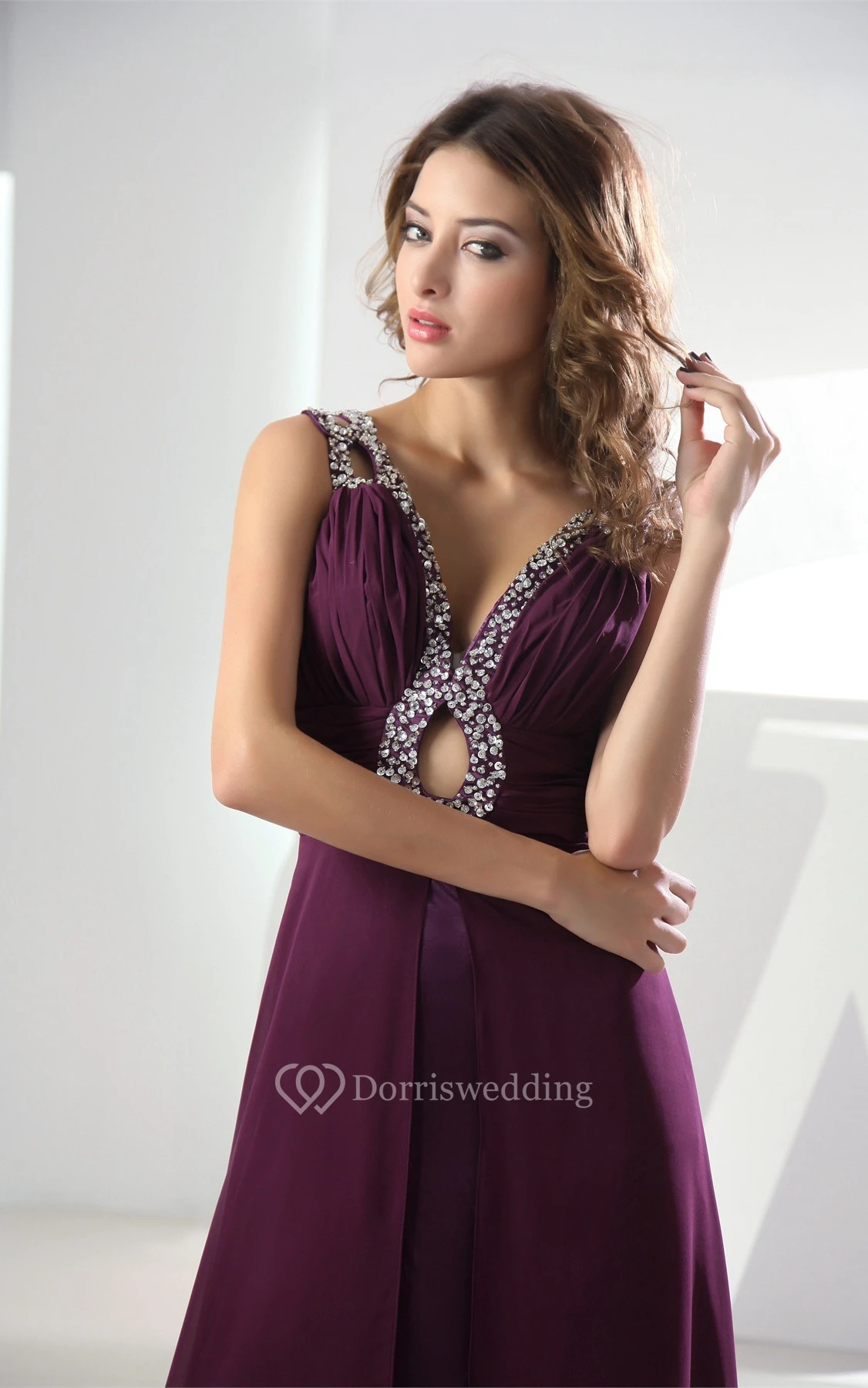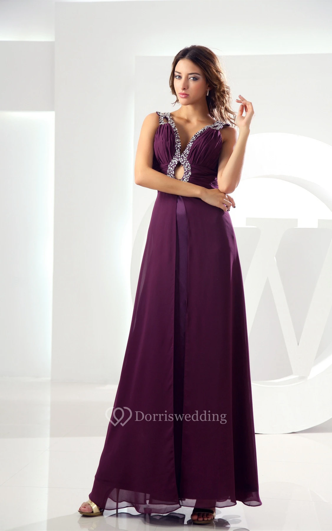 Plunged Ankle-Length Chiffon Keyhole and Dress With Beading