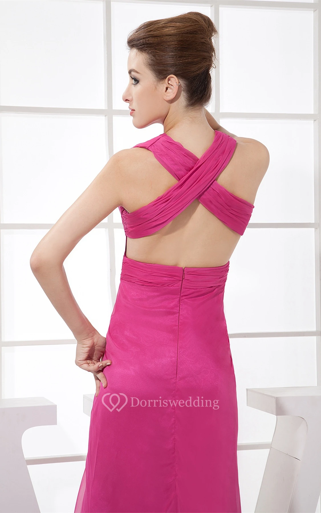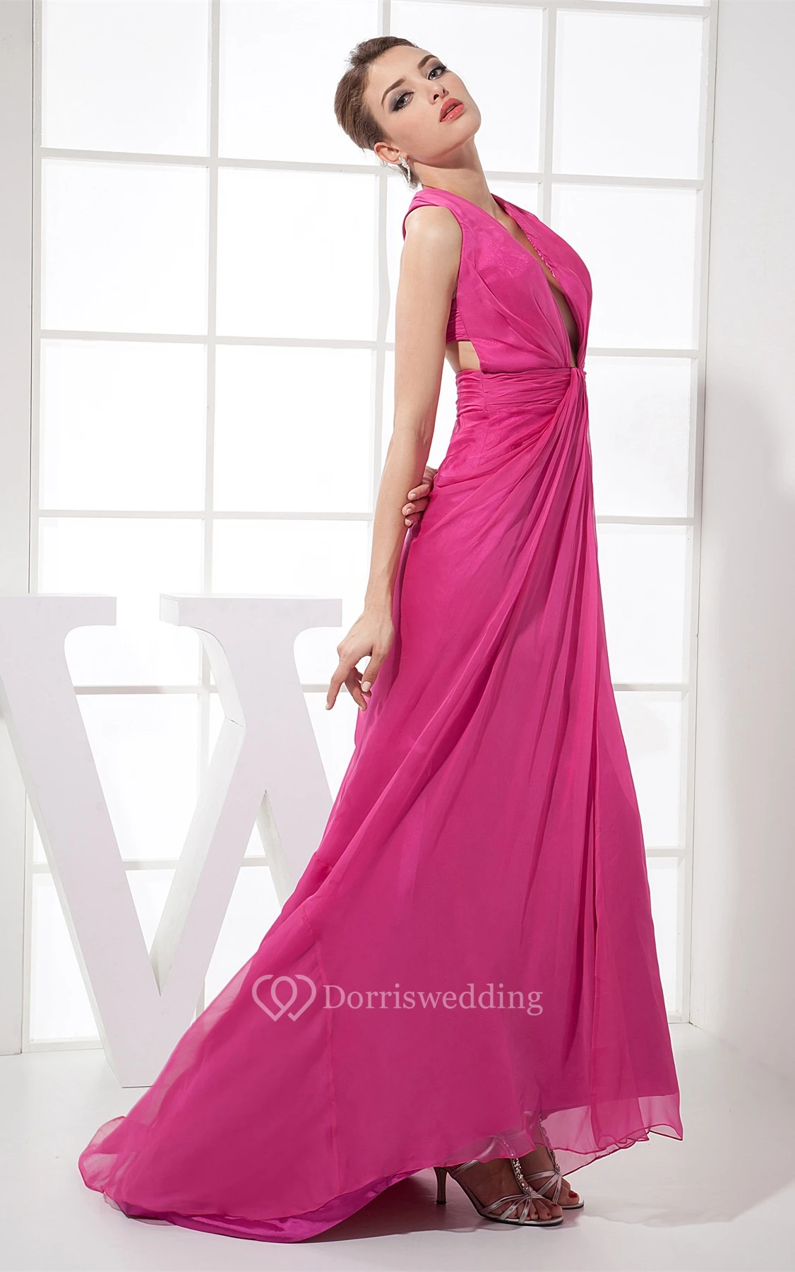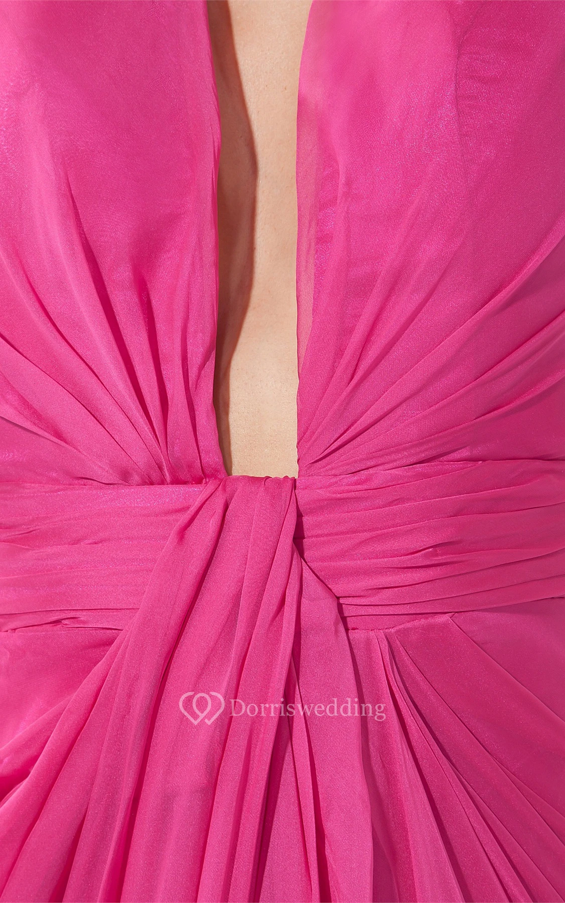 Plunged High-Low Chiffon Sleeveless Dress With Central Ruching