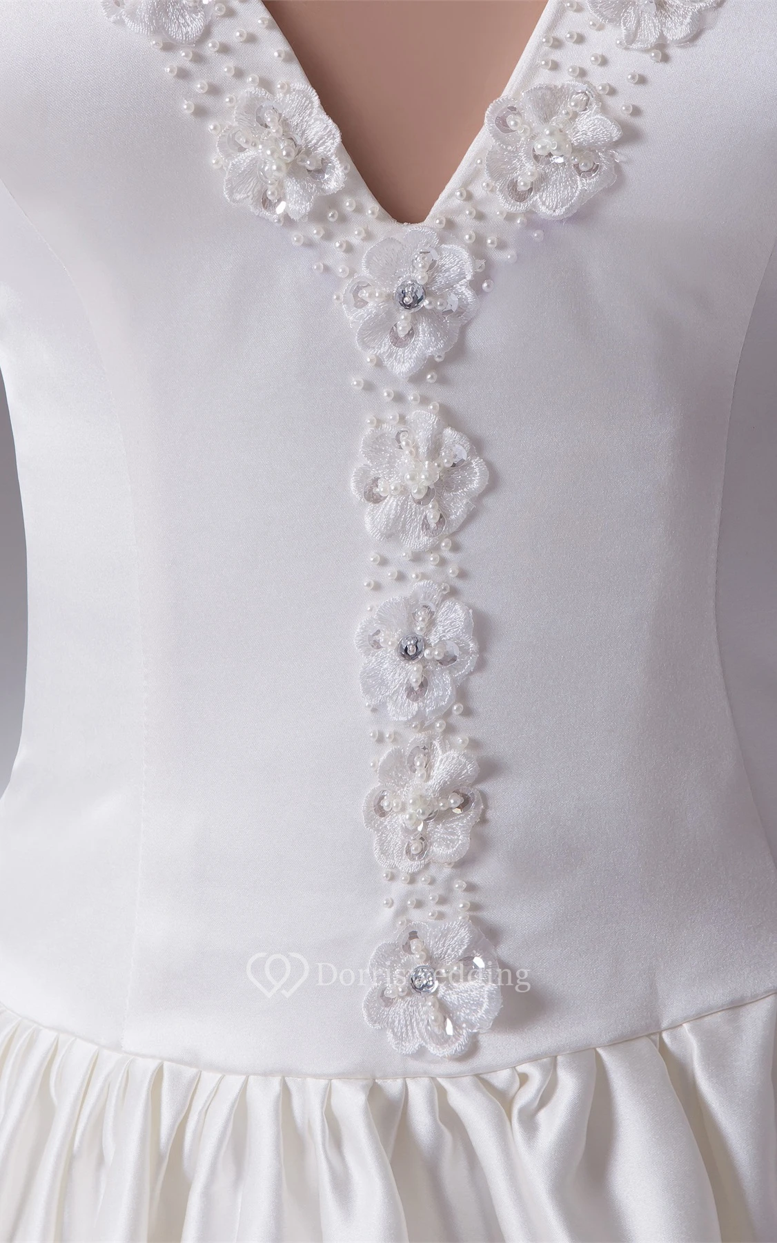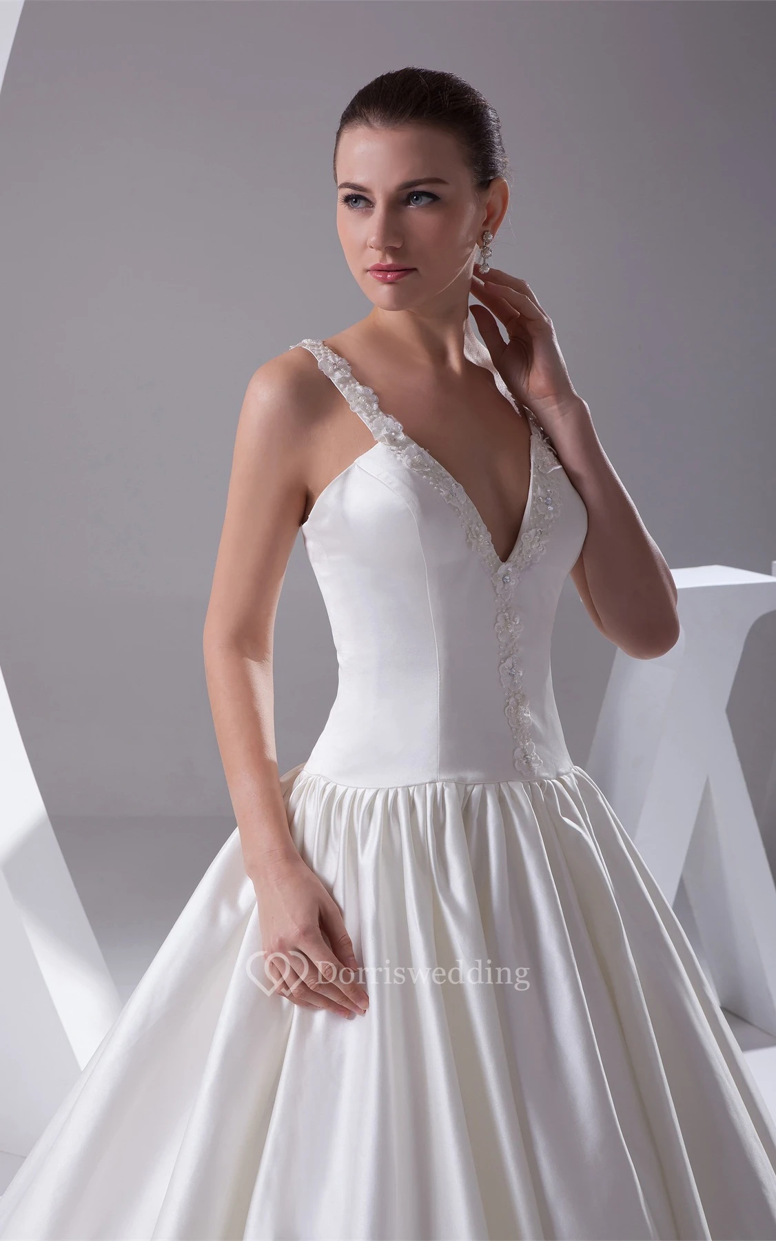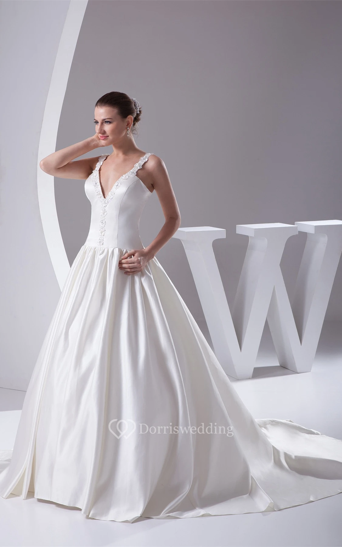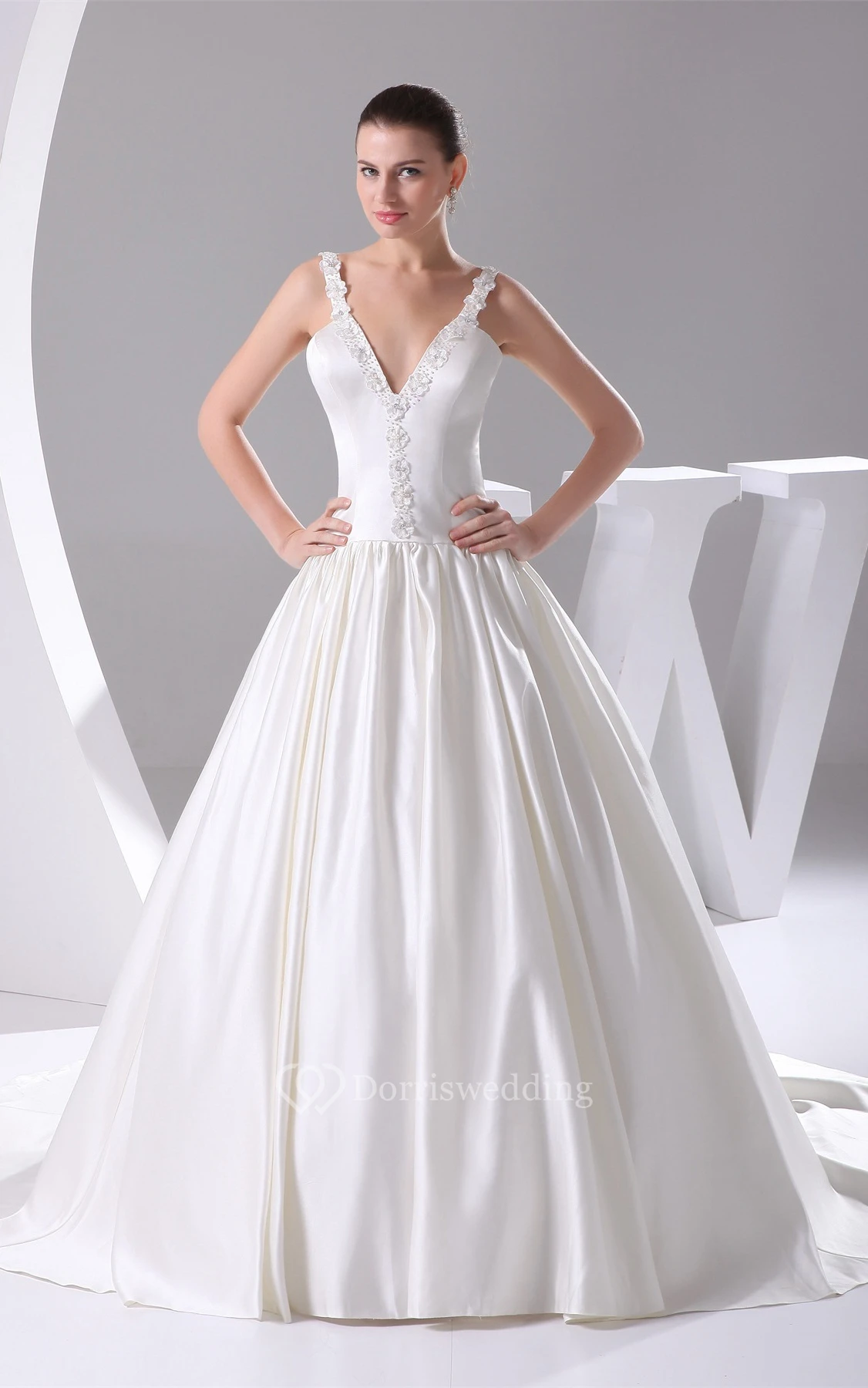 Plunged Pleated Corset Back and Ball-Gown With Beading