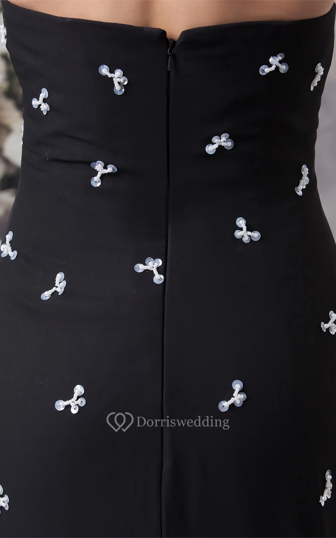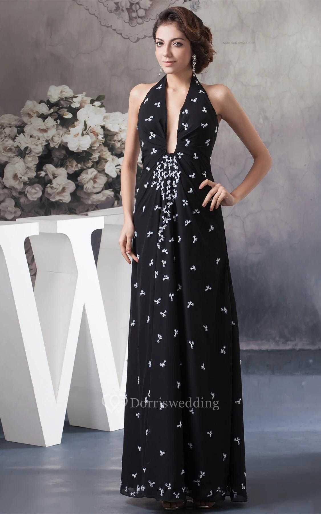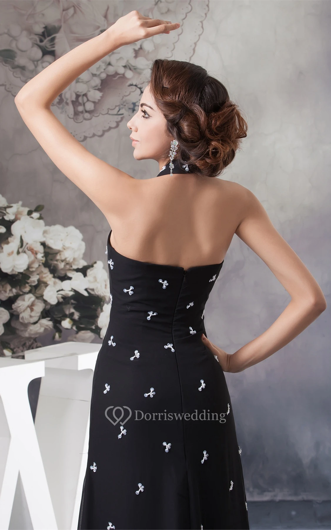 Plunged Ruched Ankle-Length Halter and Dress With Appliques