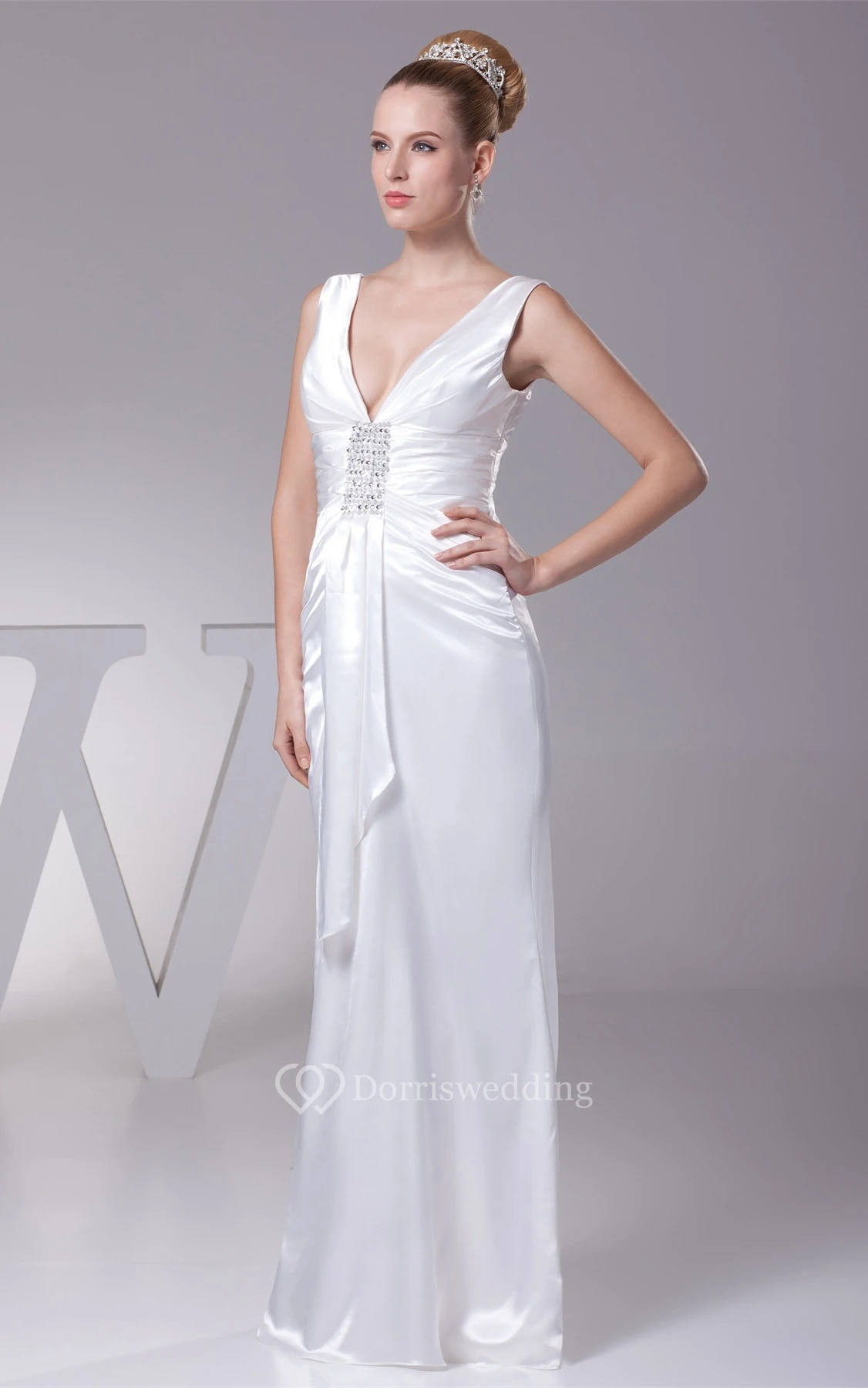 Plunged Sheath Central-Ruched Corset Back and Dress With Ribbon