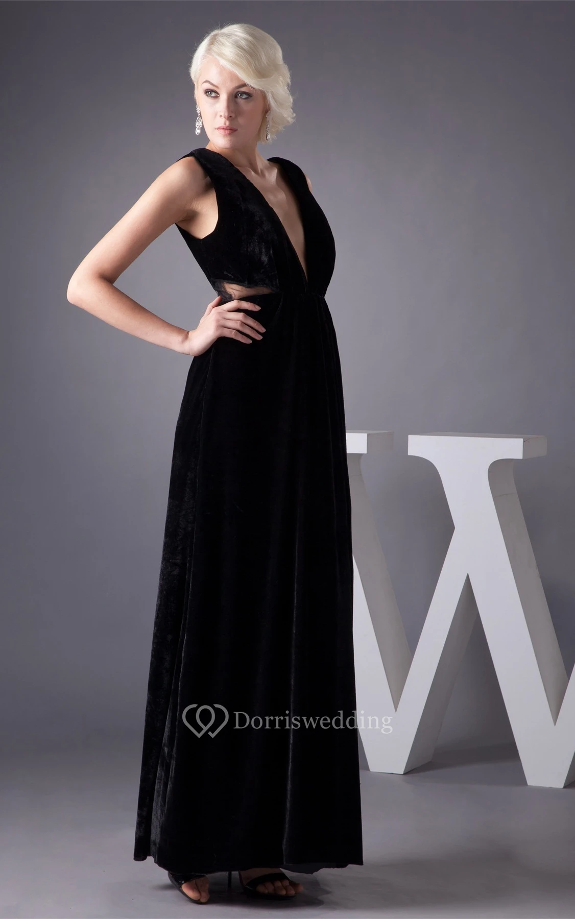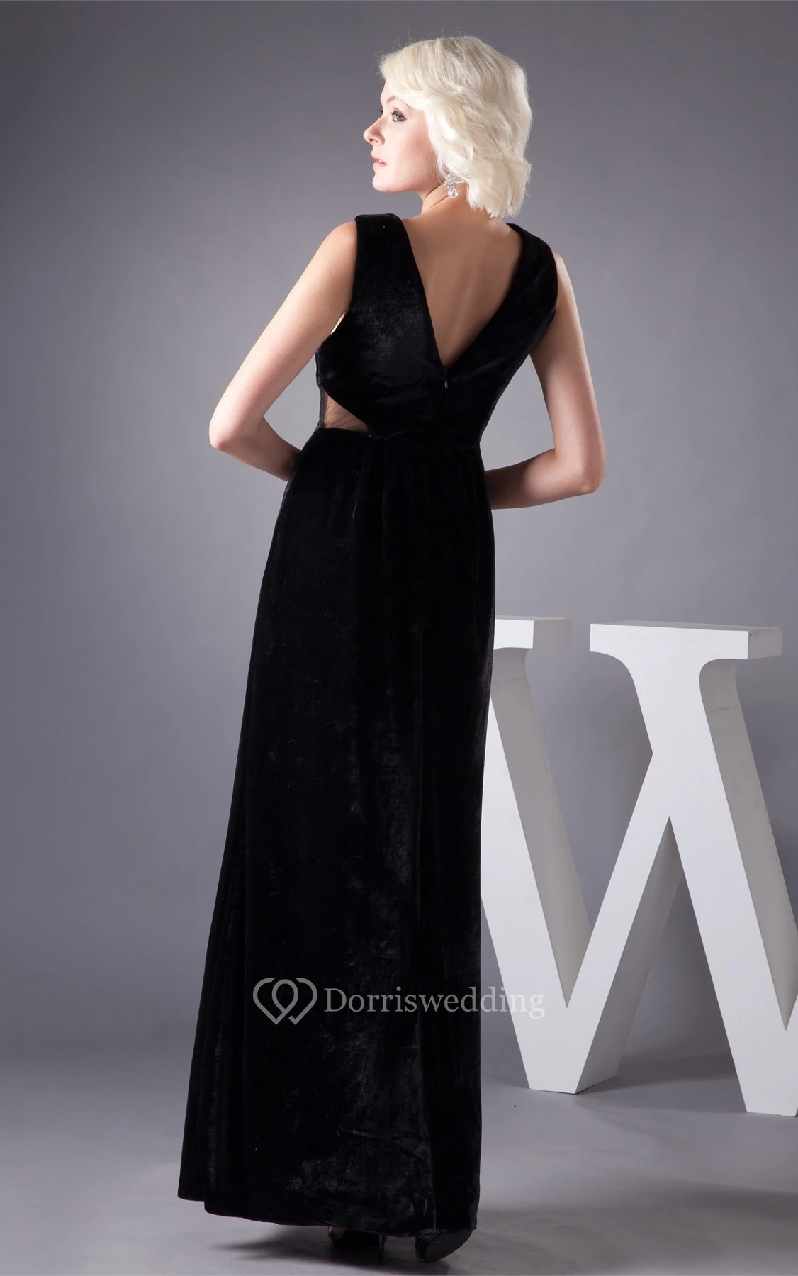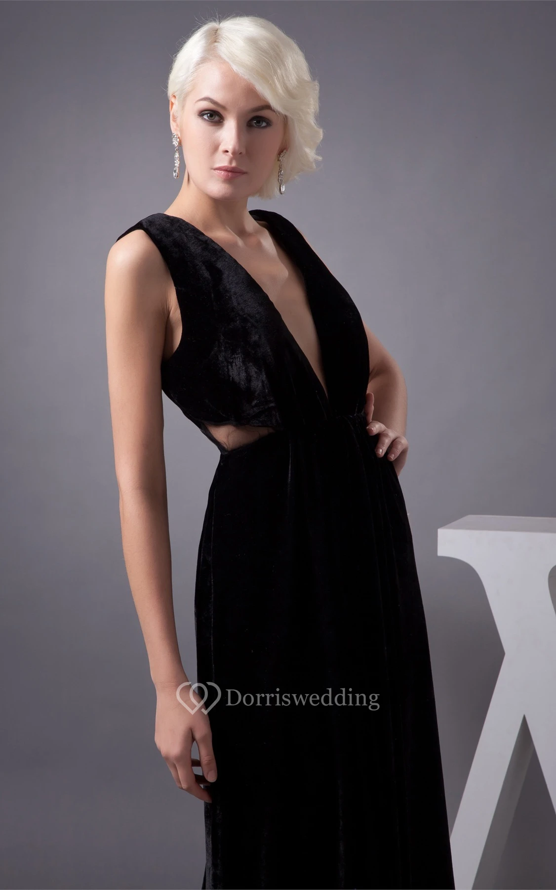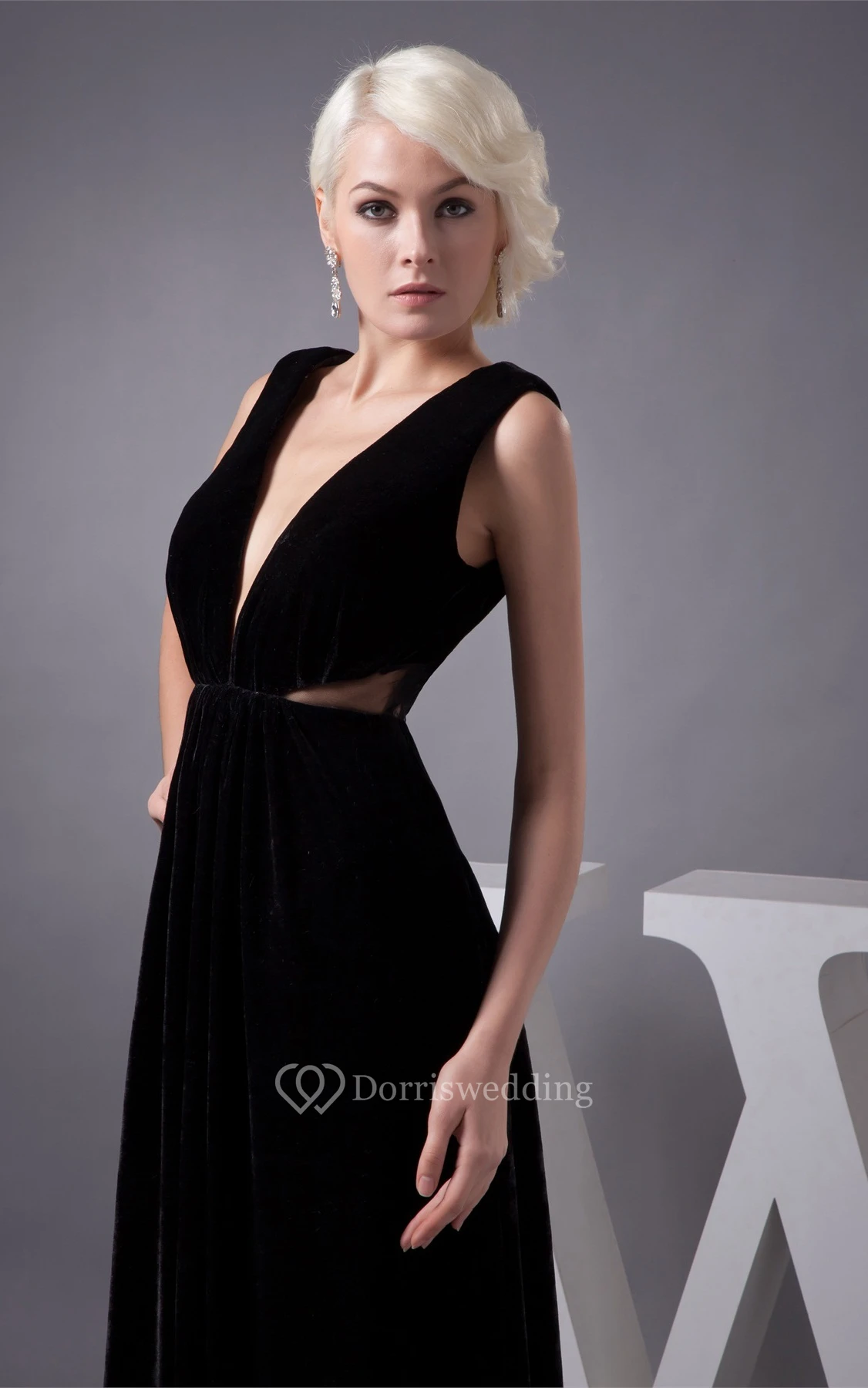 Plunged Sheath Sleeveless Pleats and Dress With Keyhole