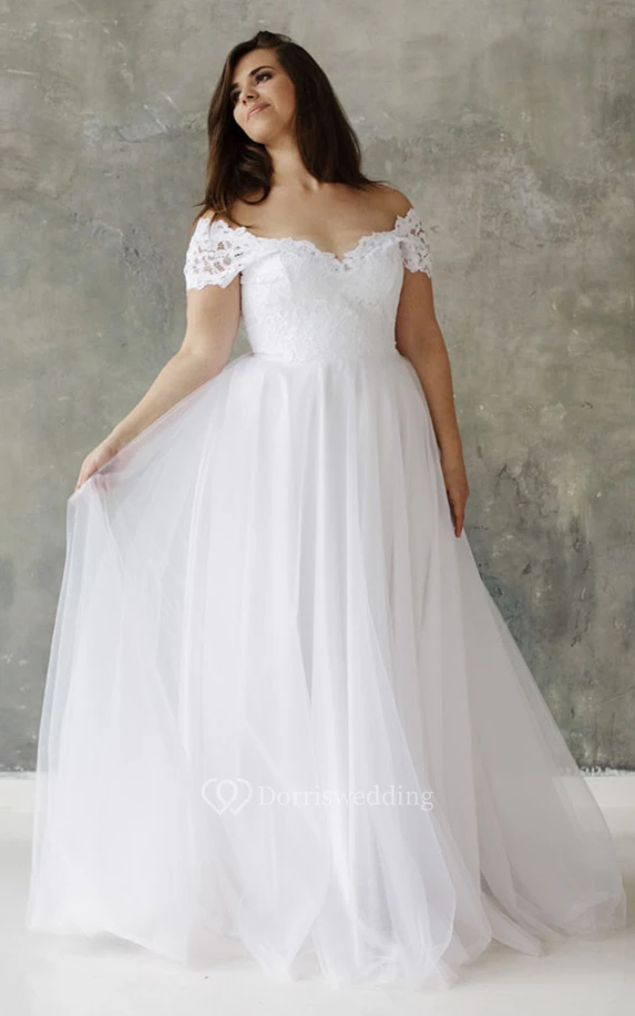 Plus Size A Line Lace and Tulle Sleeveless Wedding Gown