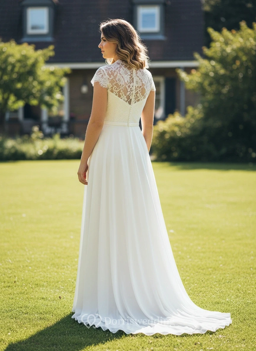 If you're looking for a dress that highlights your curves in all the right ways, this is it. The A-line silhouette is so classic and the cap sleeves are very sweet. I felt incredibly confident and beautiful. The beading on the waist is stunning and catches the light perfectly. It’s a high-quality dress that made me feel like a true bride. I wouldn't change a thing!