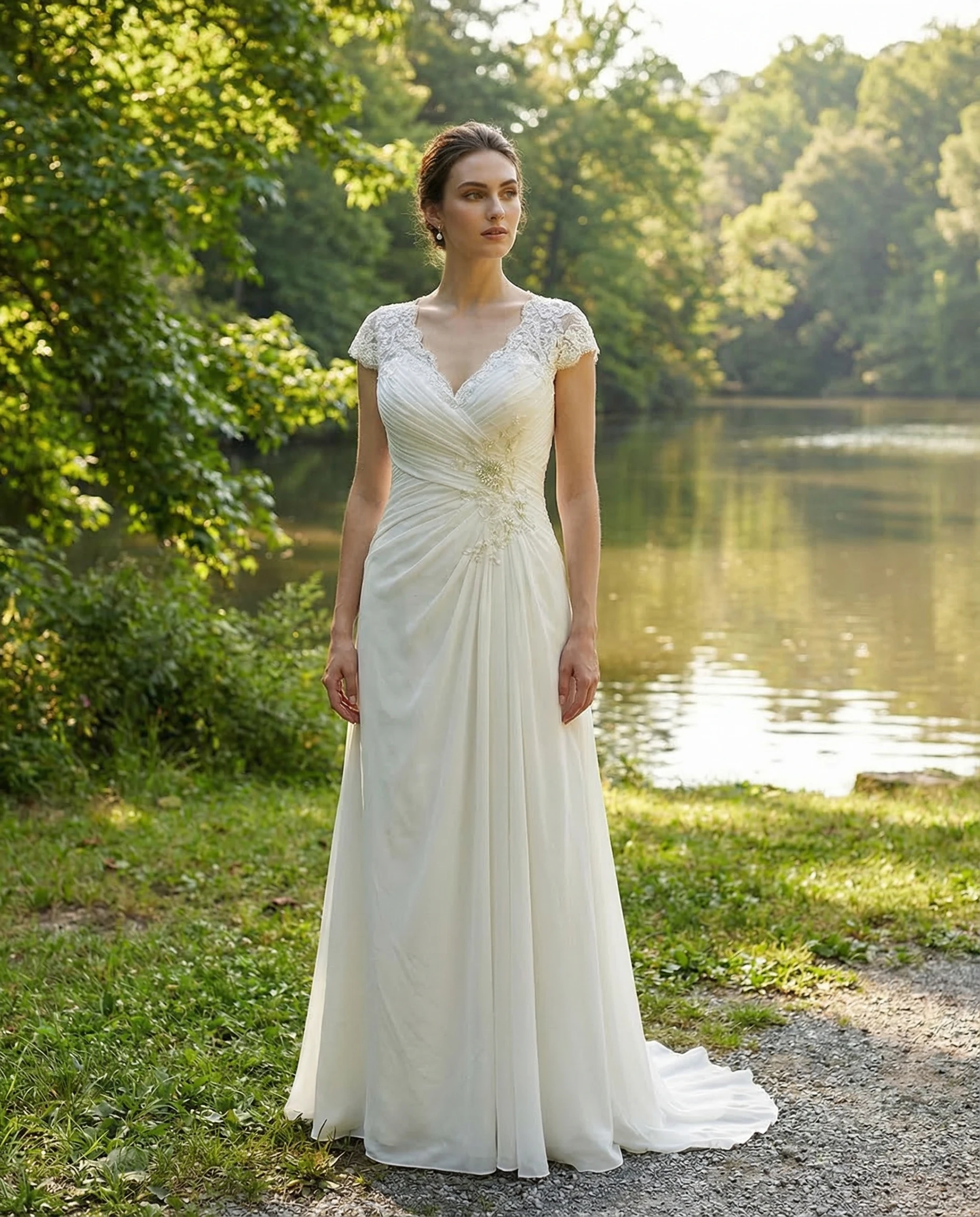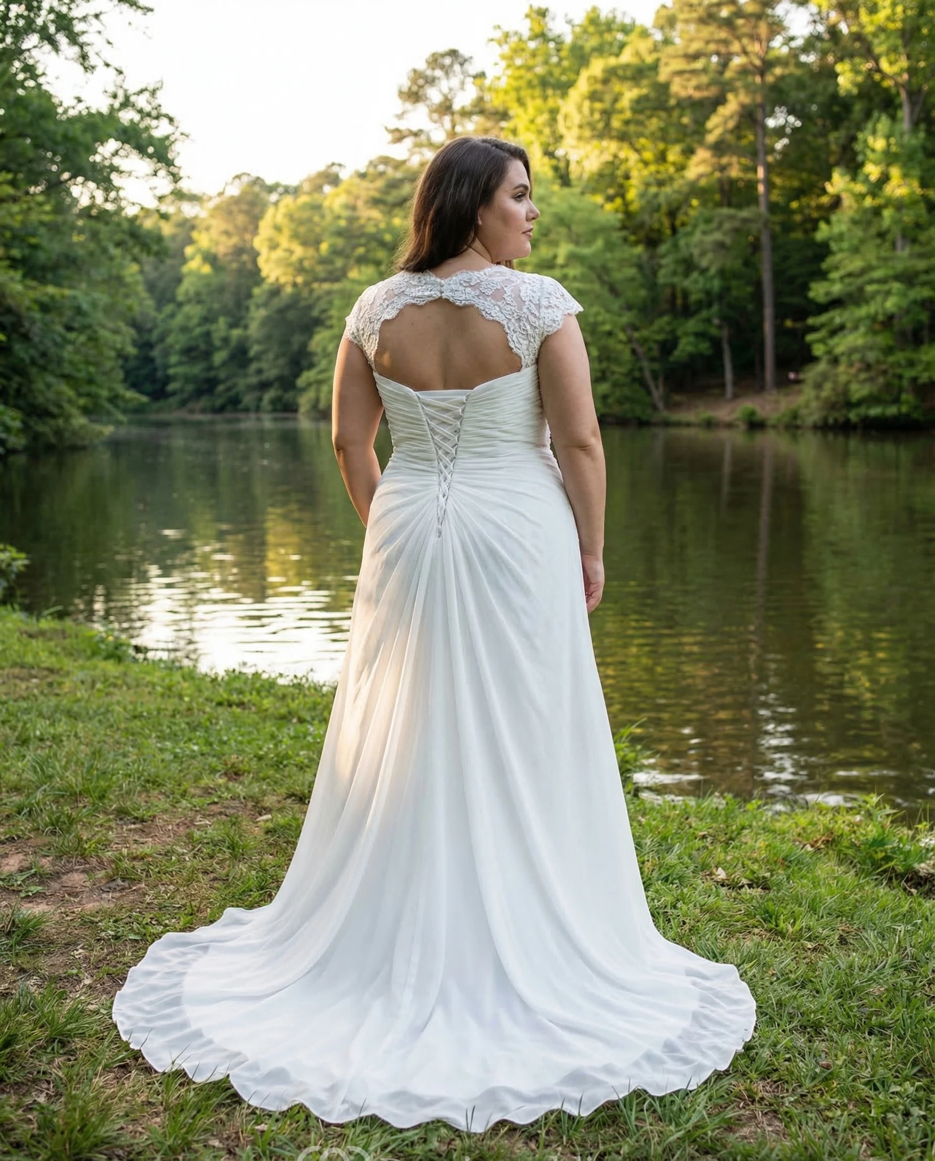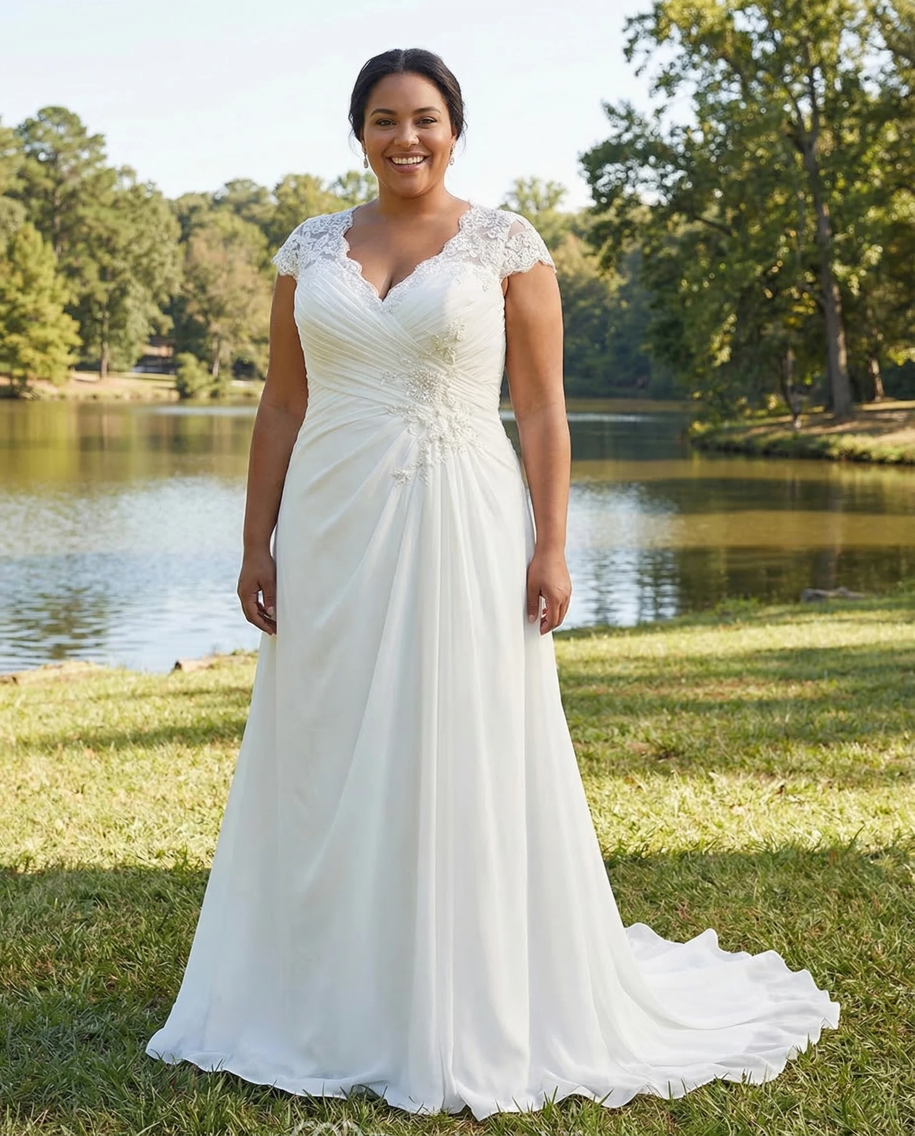 Plus Size Cap Sleeve Chiffon Wedding Gown