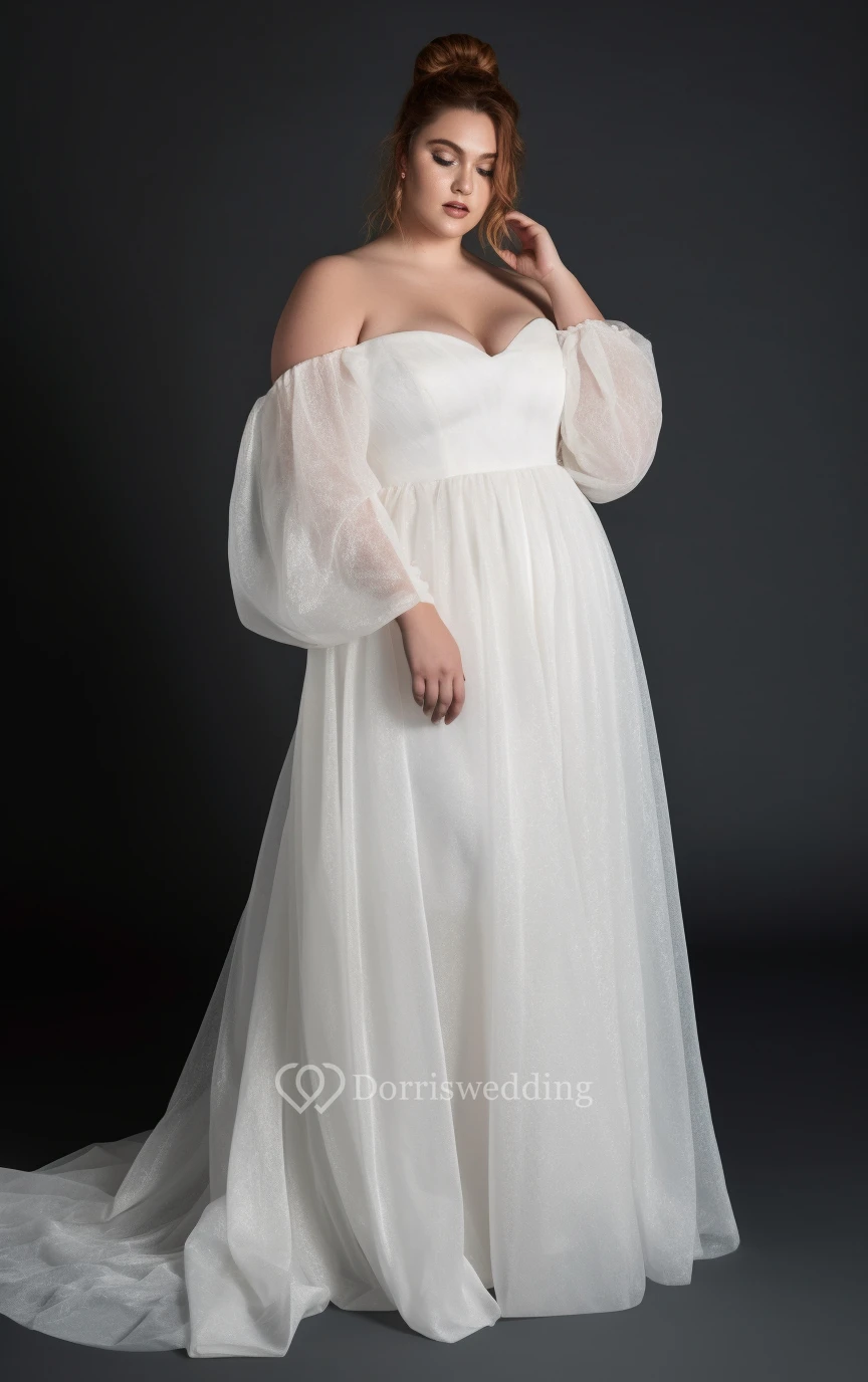 Plus Size Off-the-shoulder Puff Empire A-line Wedding Dress