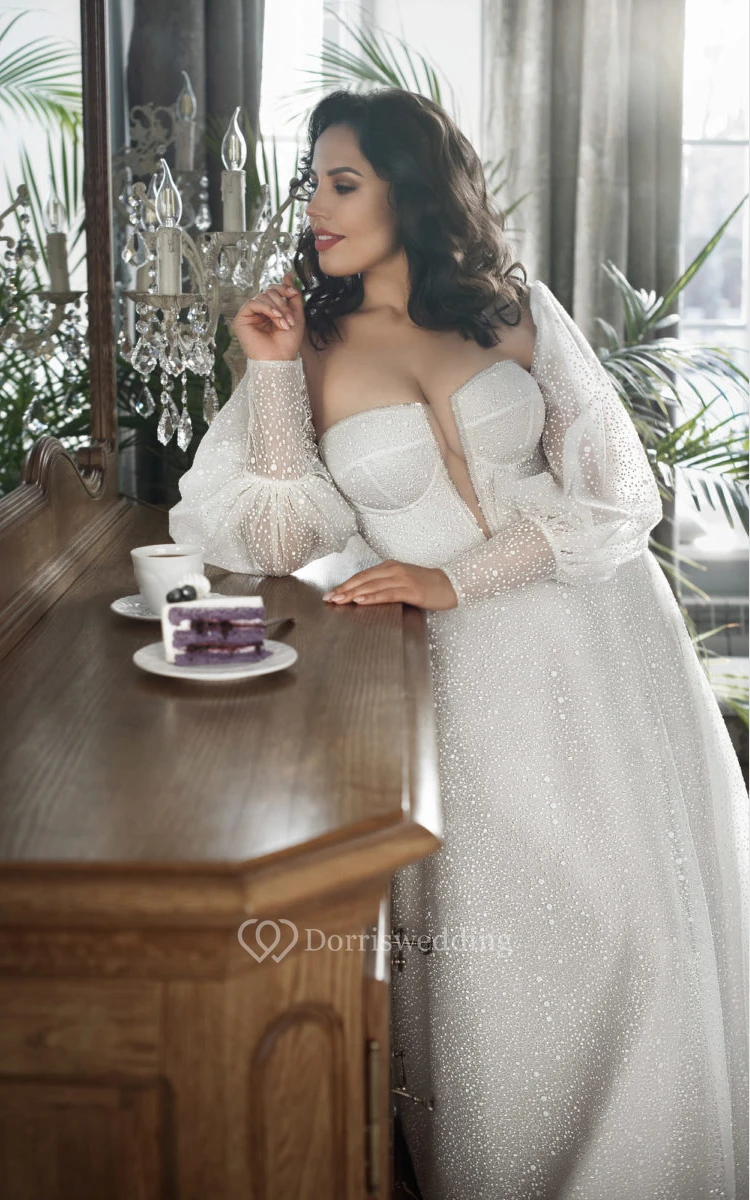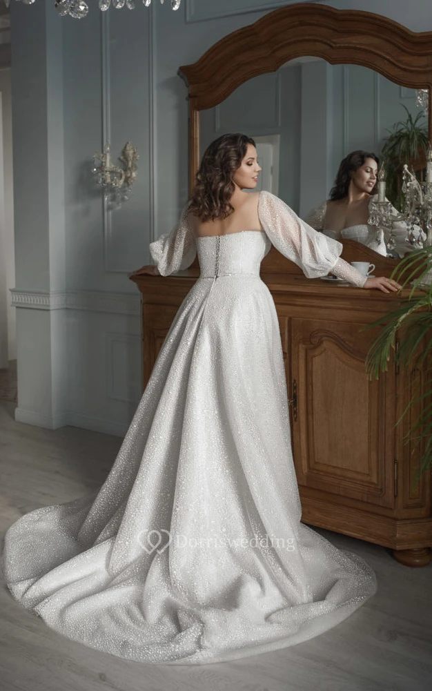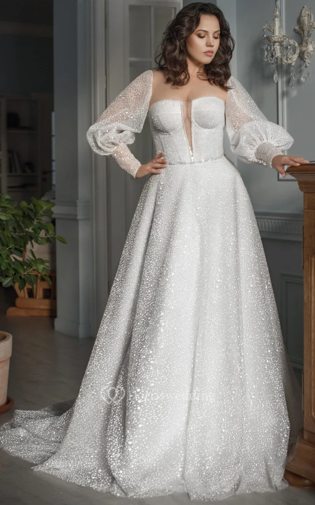 The sleeves are seamlessly attached to the bodice with sheer, skin-tone tulle, creating an elegant, barely-there effect.