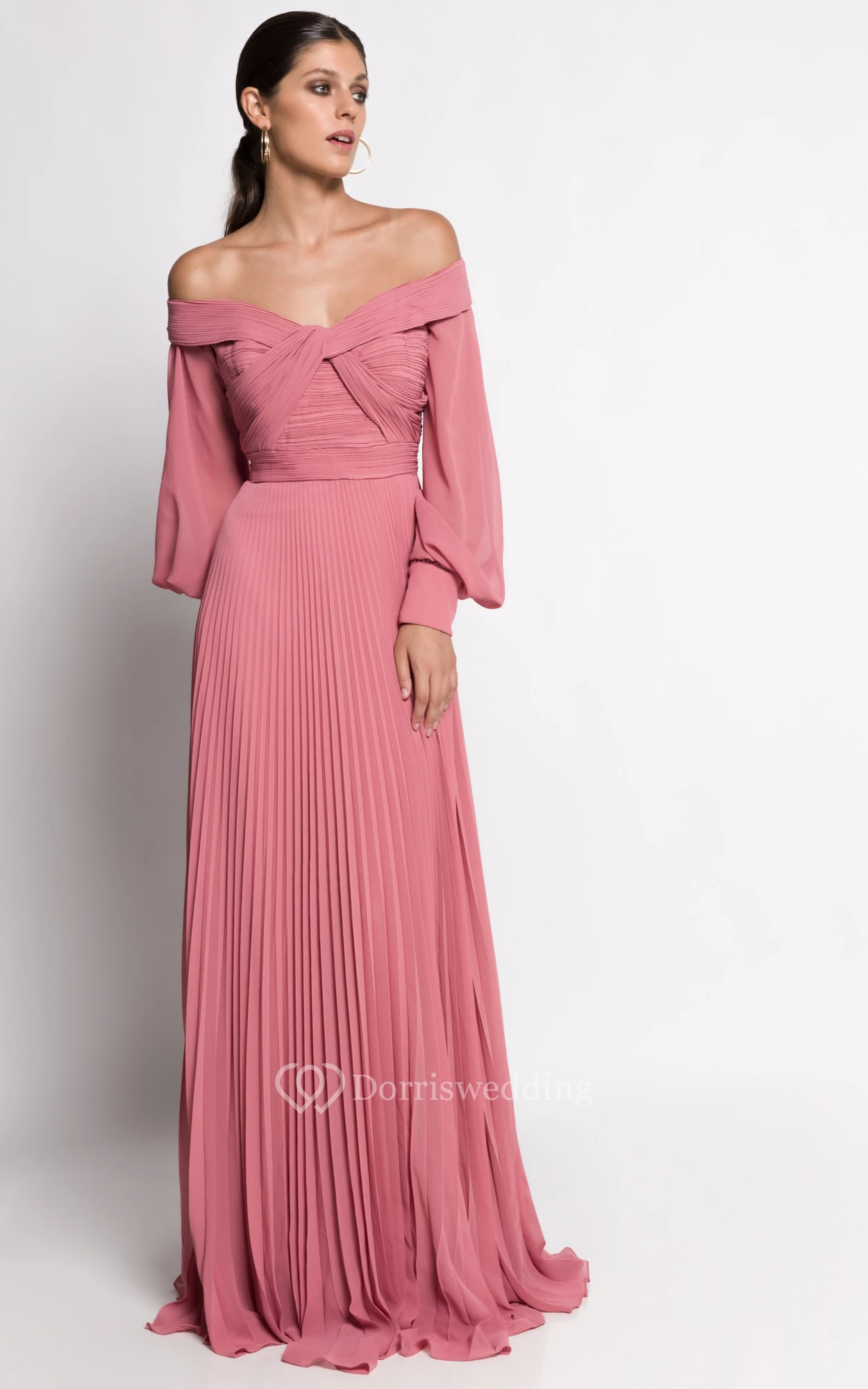 Poet Long Sleeved A Line Chiffon Prom Dress with Pleats