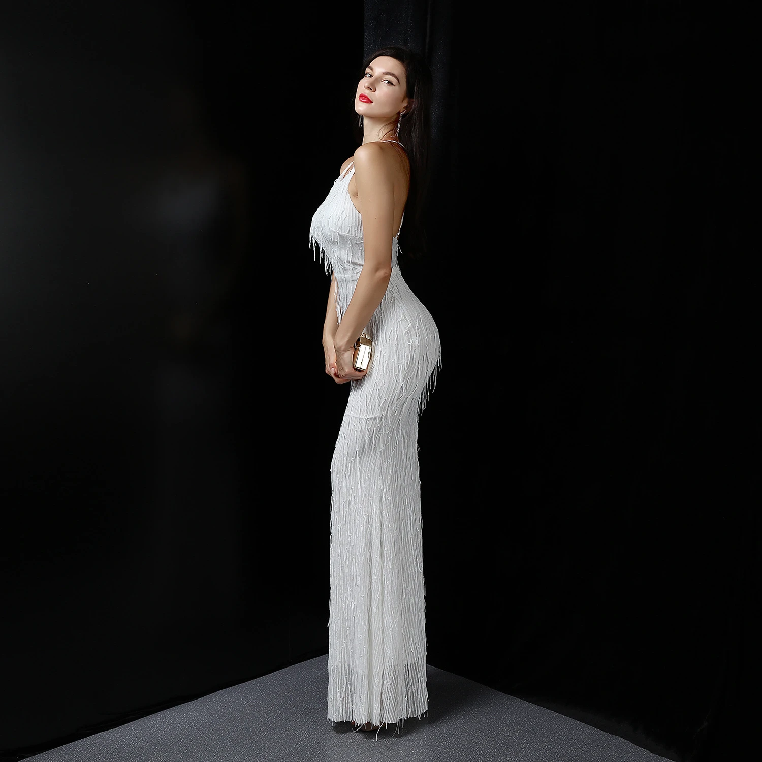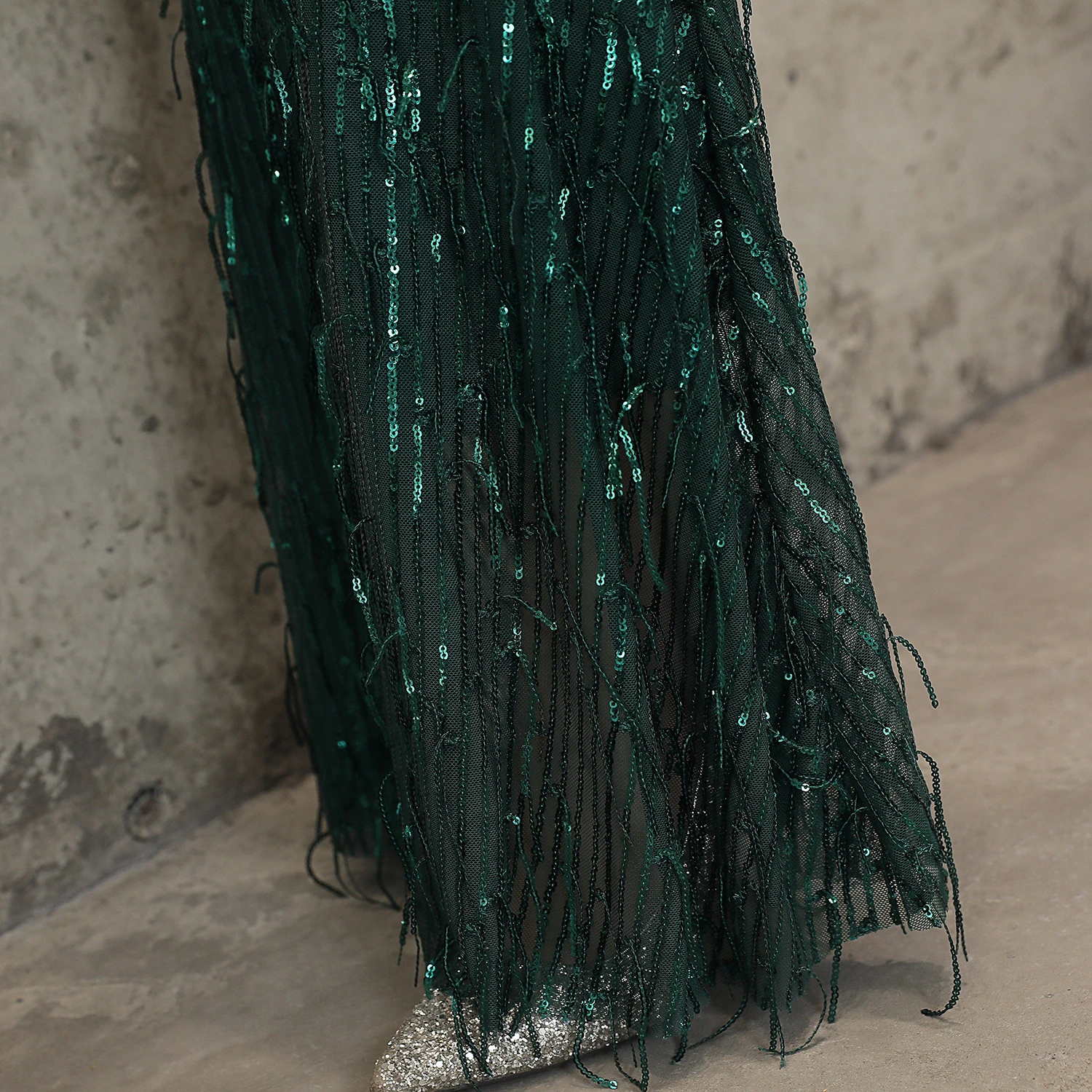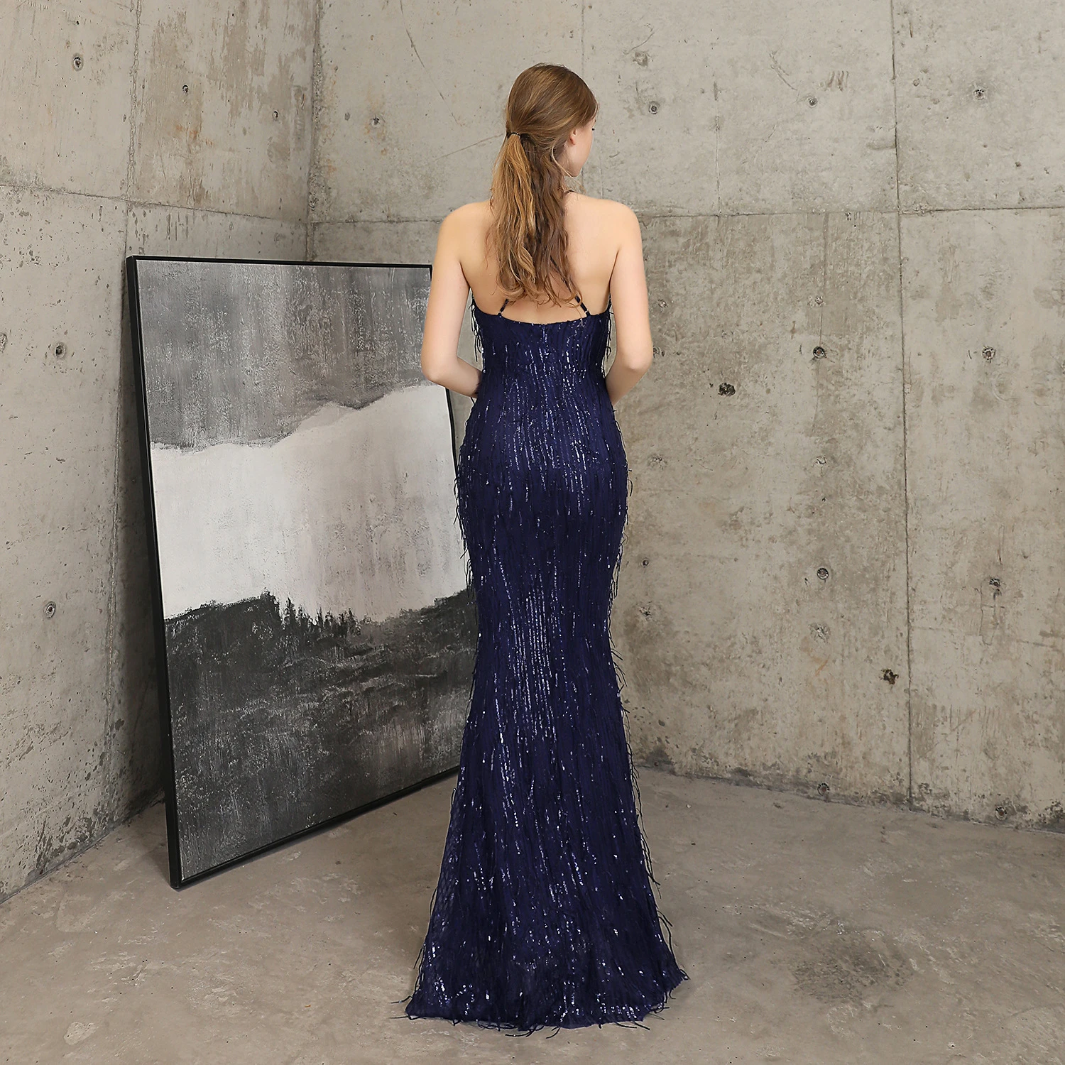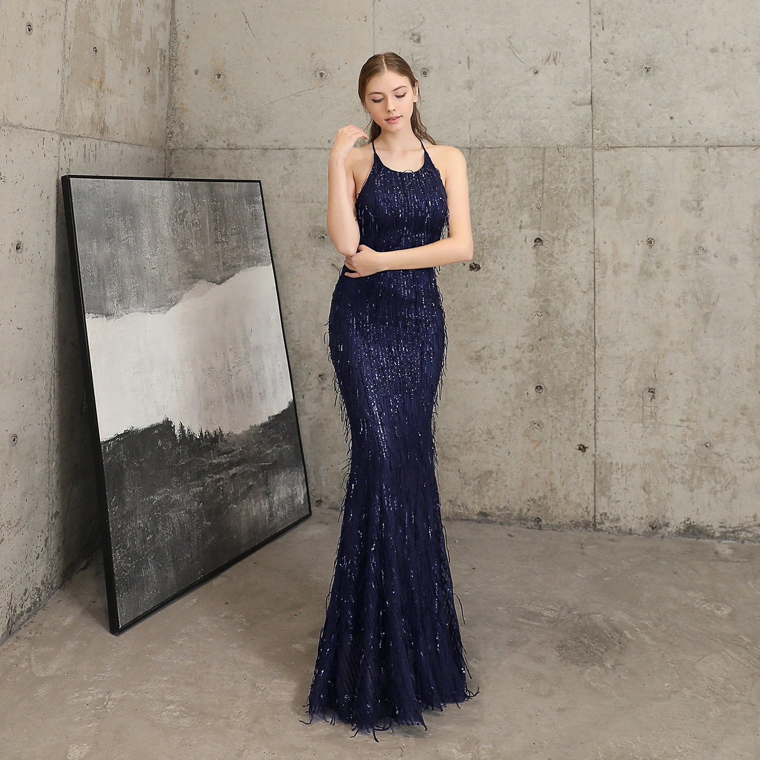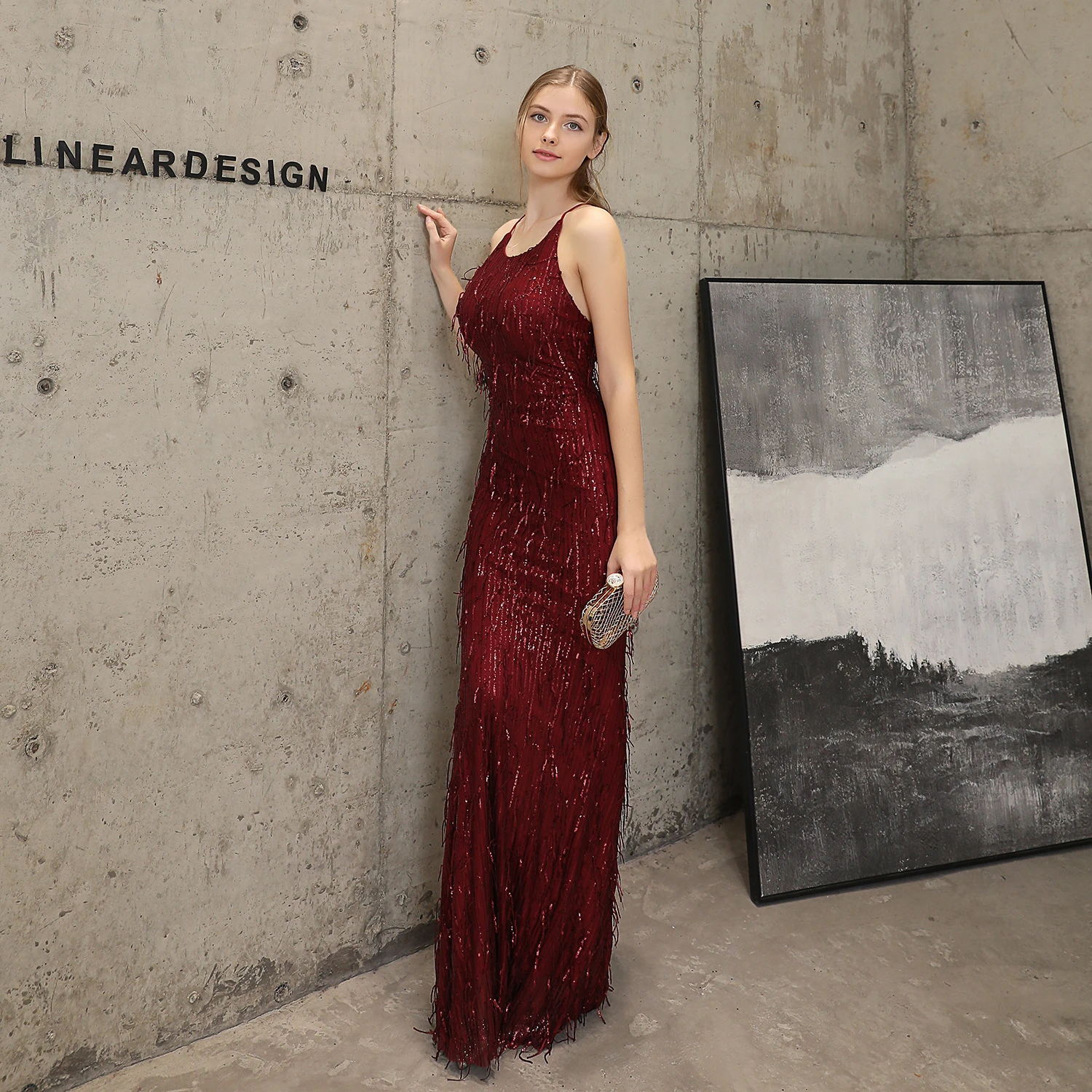 Polyester Silk Thread Tassel Sequins Fishtail Banquet Elegant Temperament Meeting Host Car Model Evening Dress Autumn