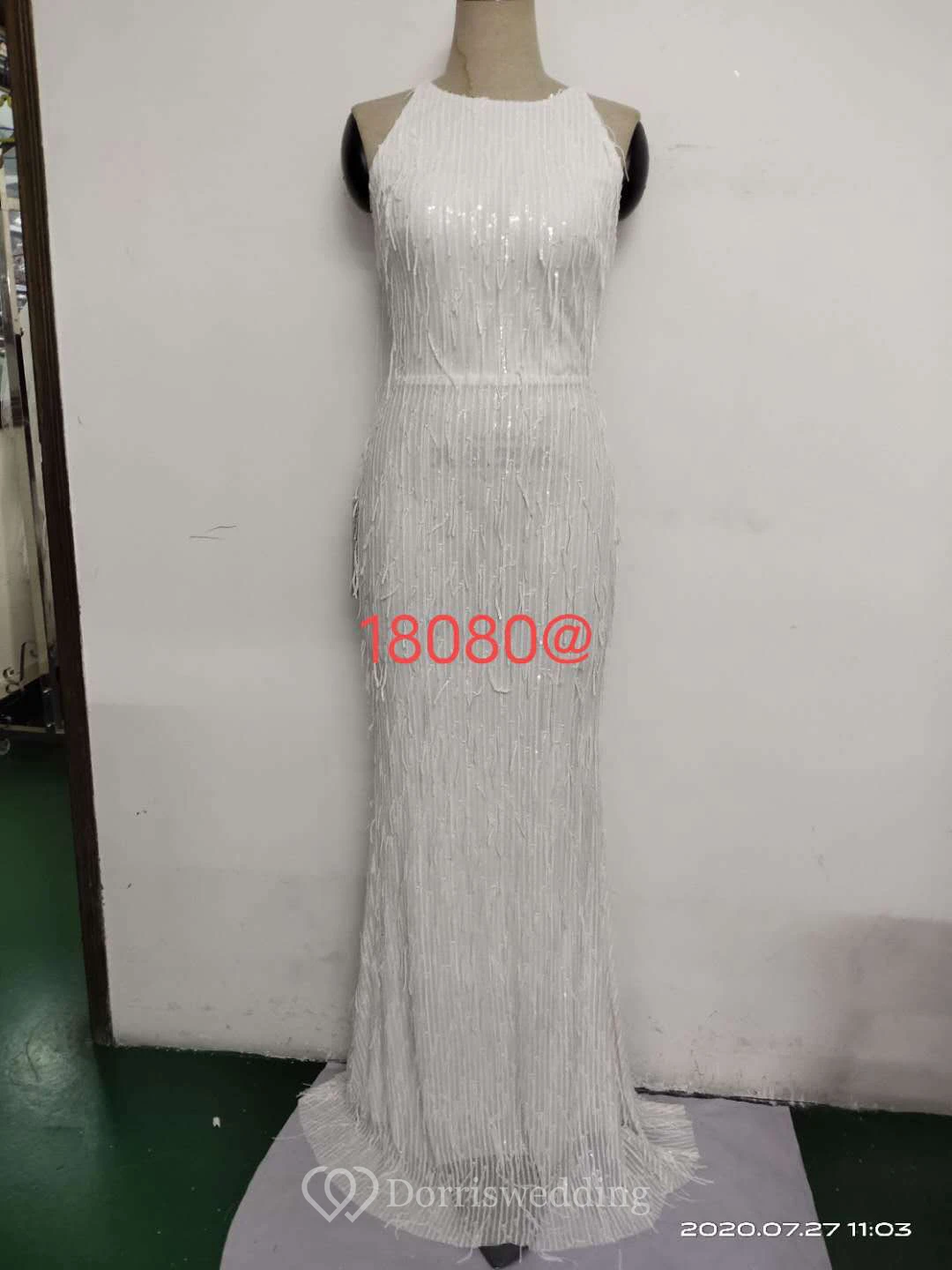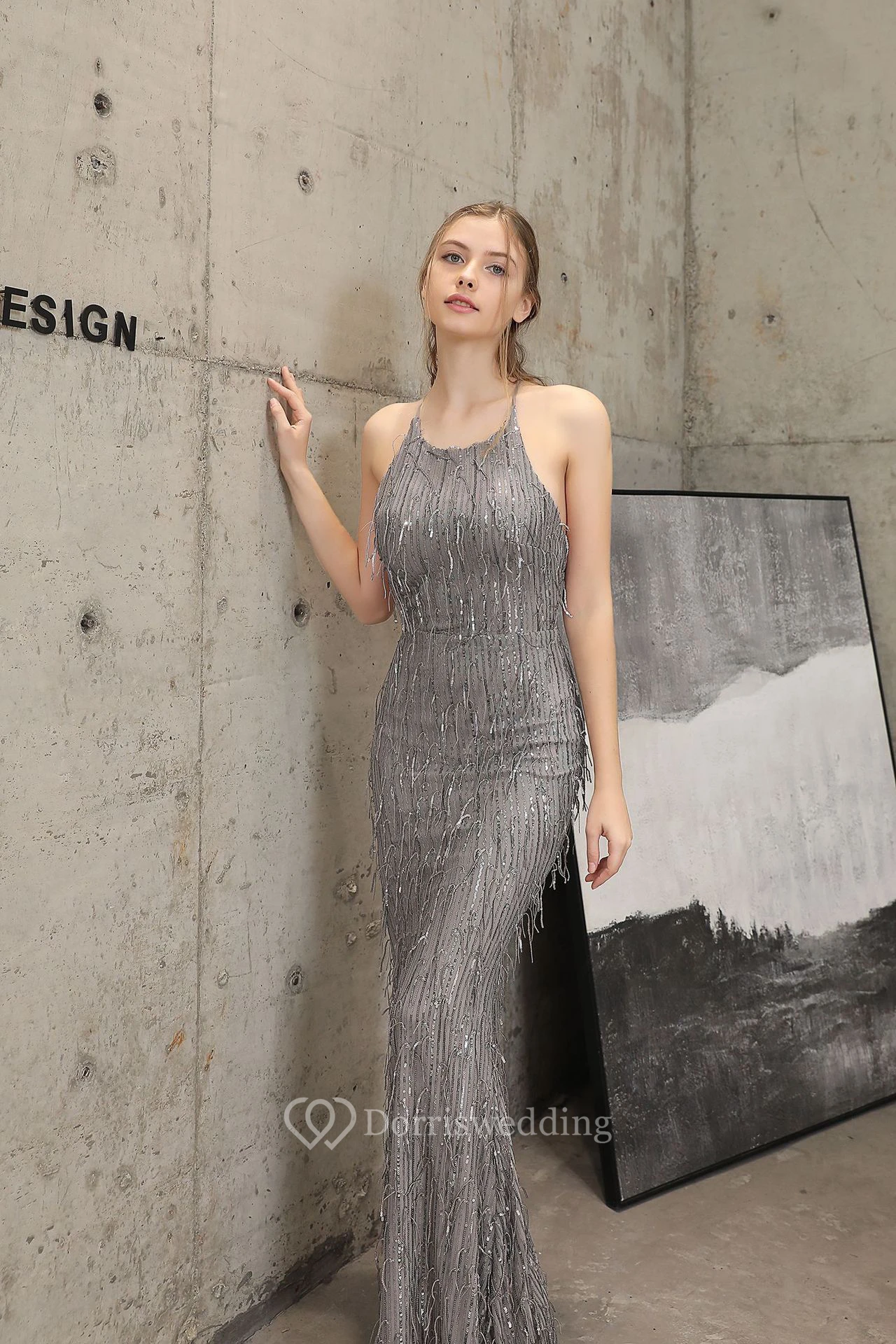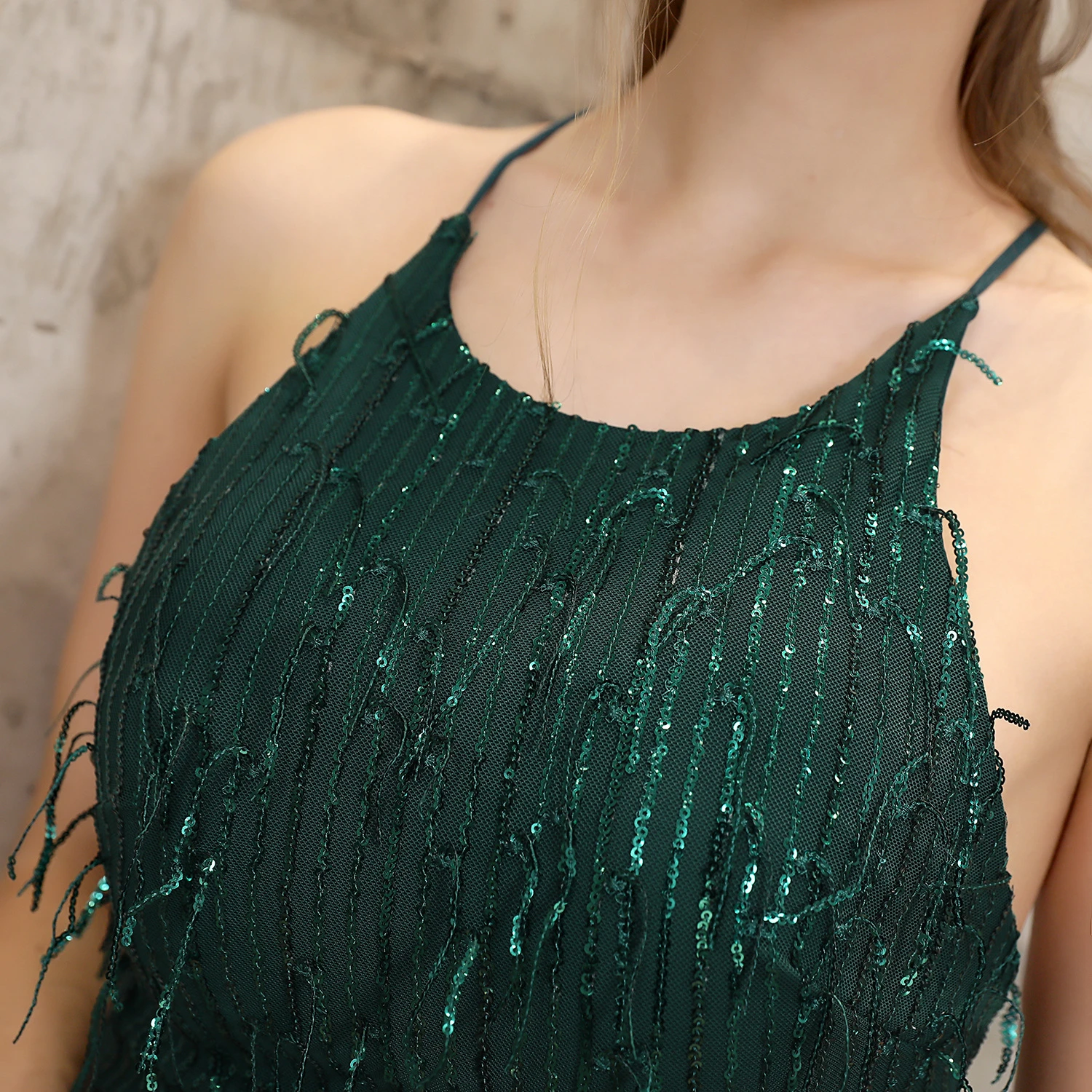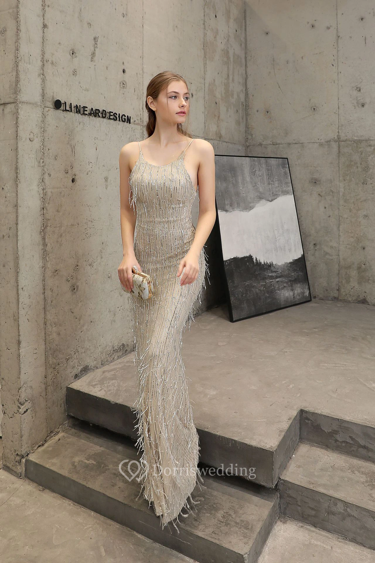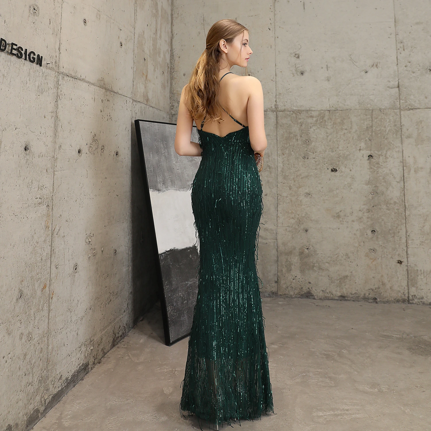Polyester Silk Thread Tassel Sequins Fishtail Banquet Elegant Temperament Meeting Host Car Model Evening Dress Autumn