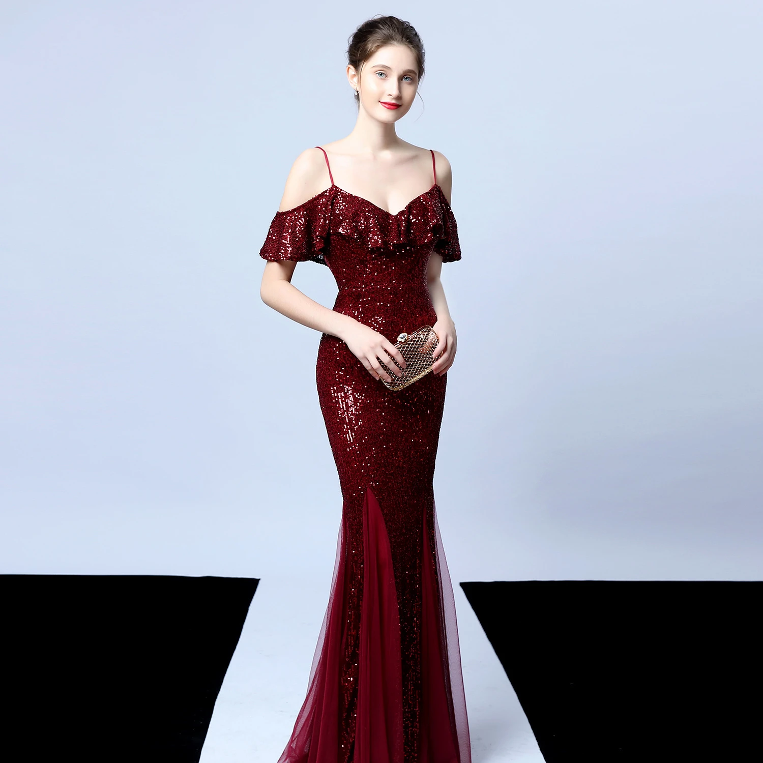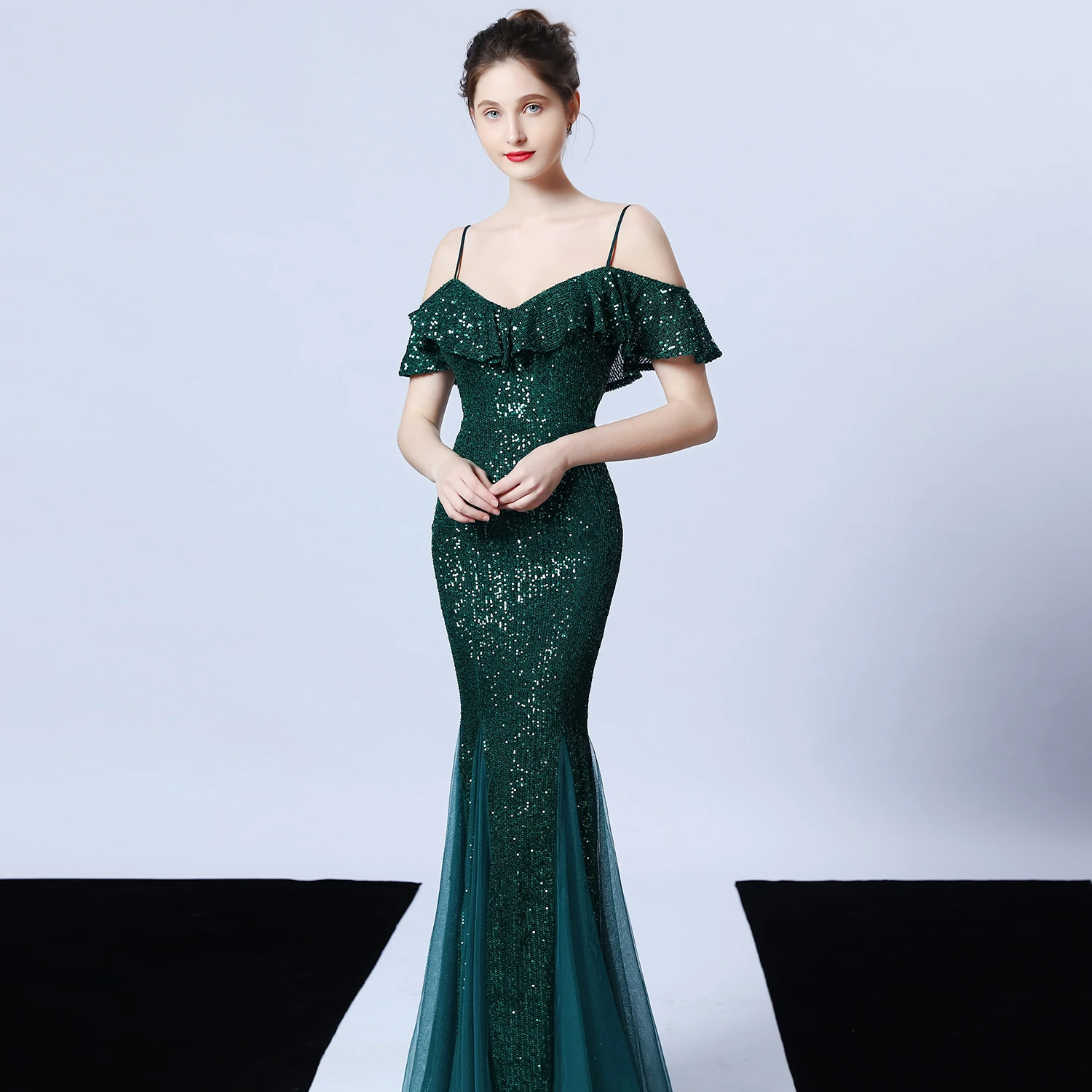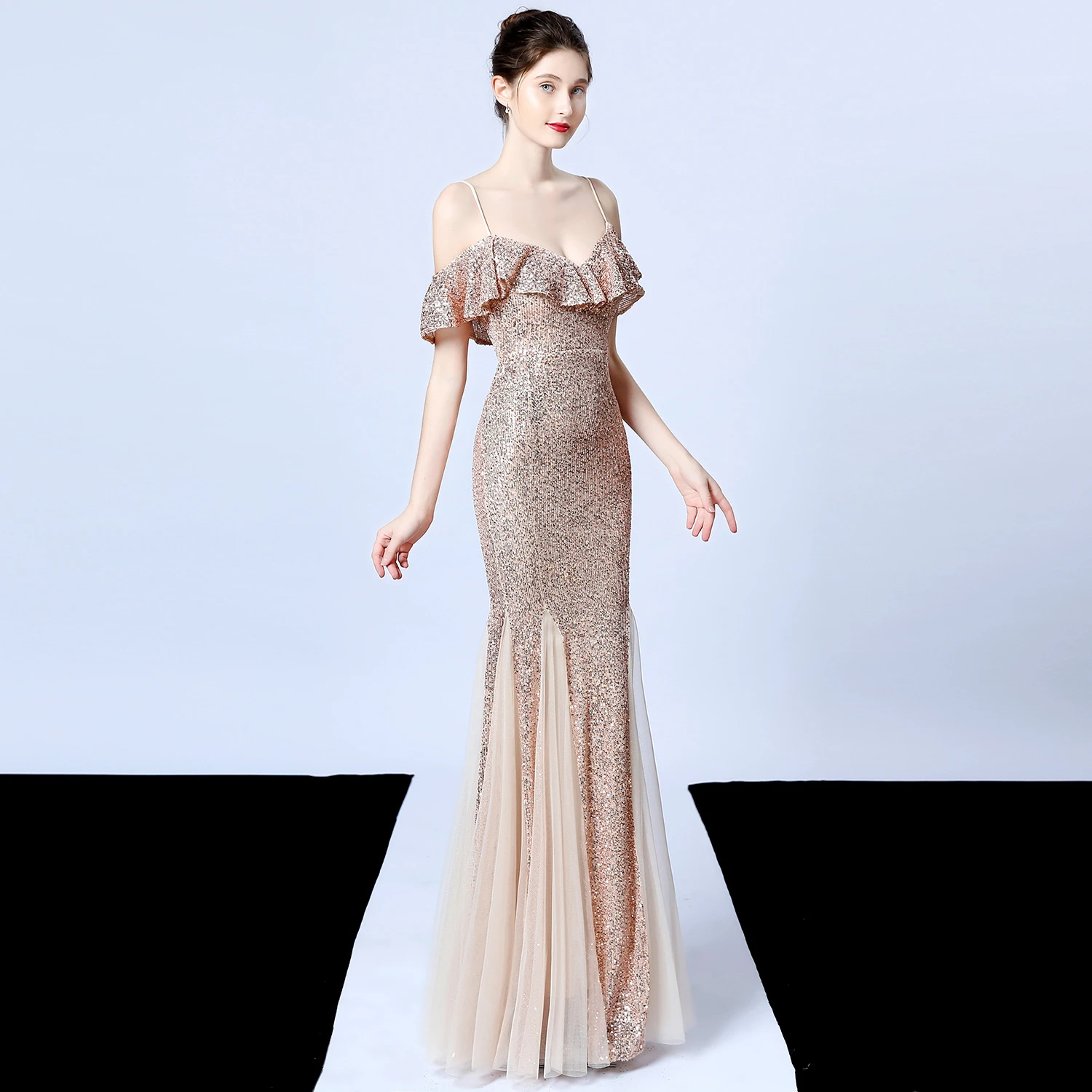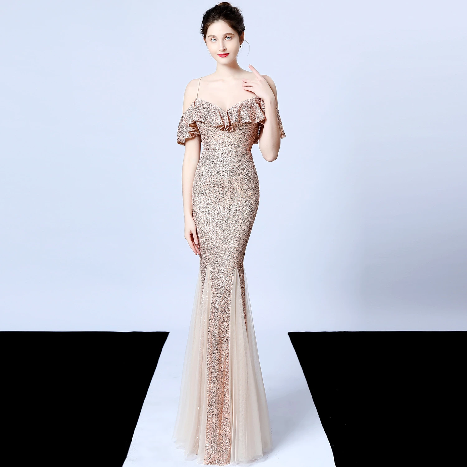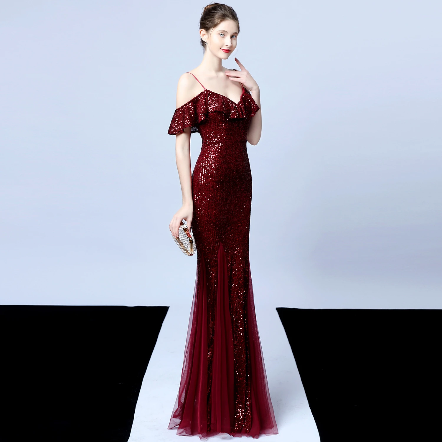 Polyester Thread Tassel Sequin Fishtail Banquet Elegant Temperament Host Car Model Evening Dress Autumn