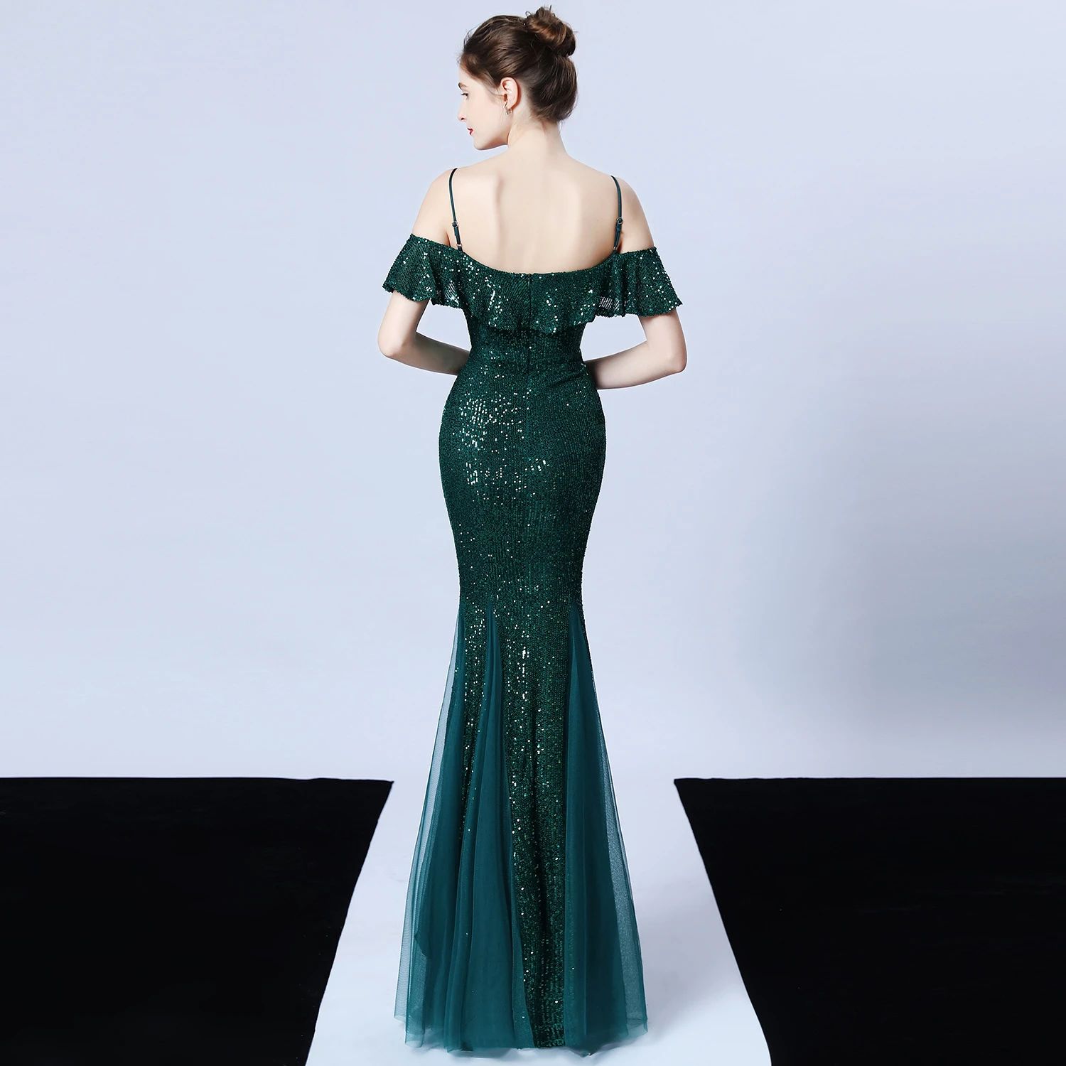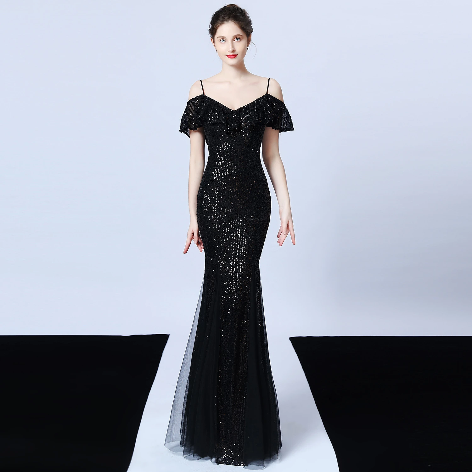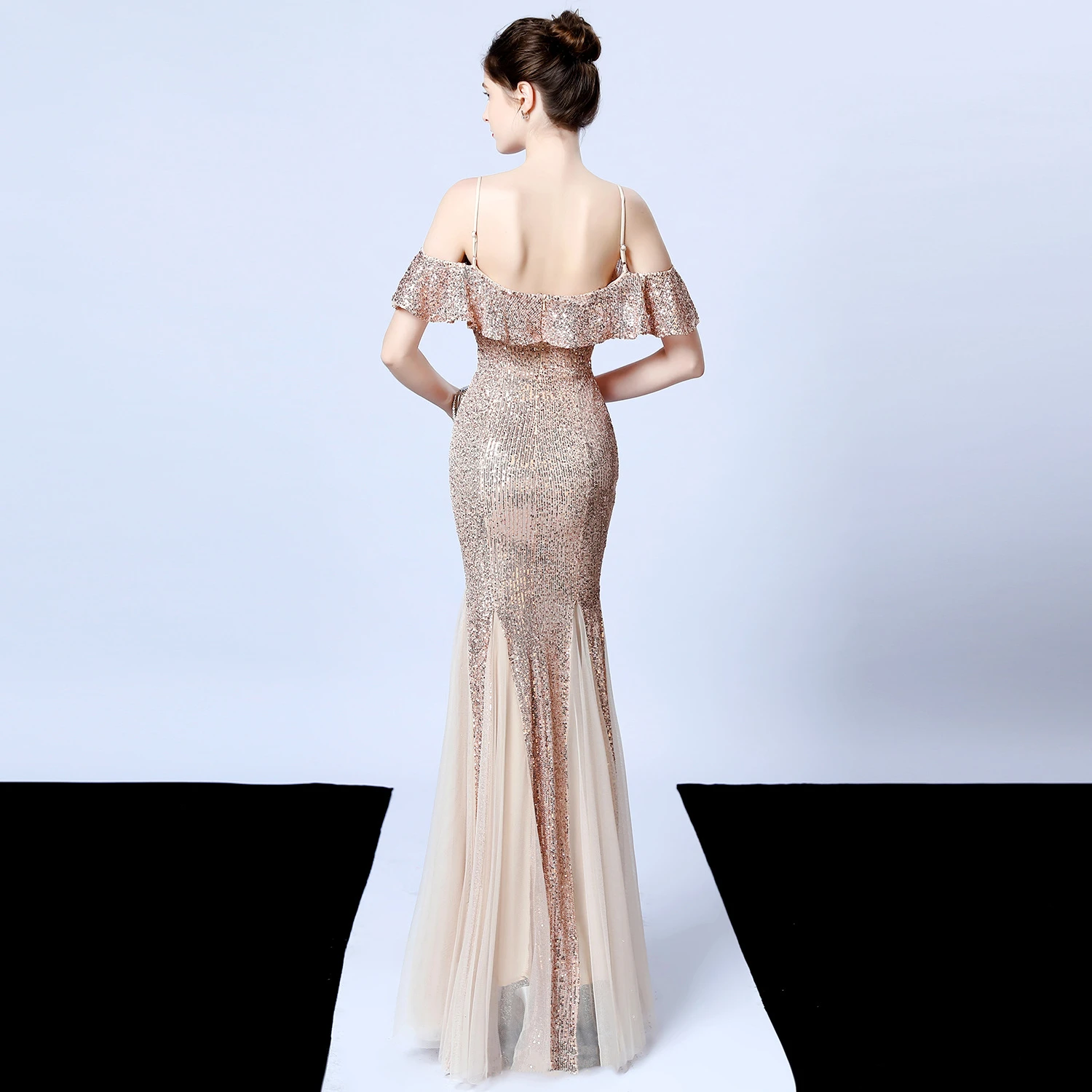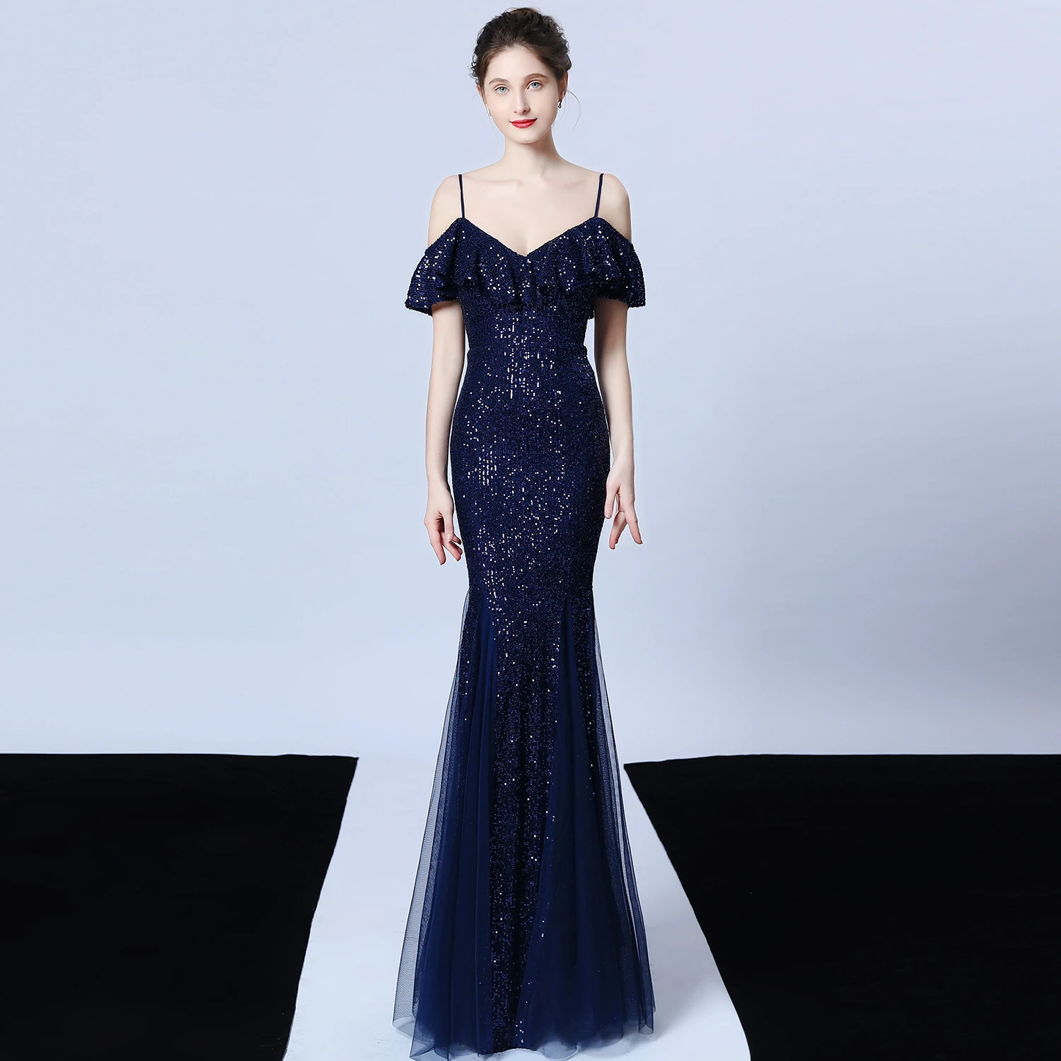 Polyester Thread Tassel Sequin Fishtail Banquet Elegant Temperament Host Car Model Evening Dress Autumn